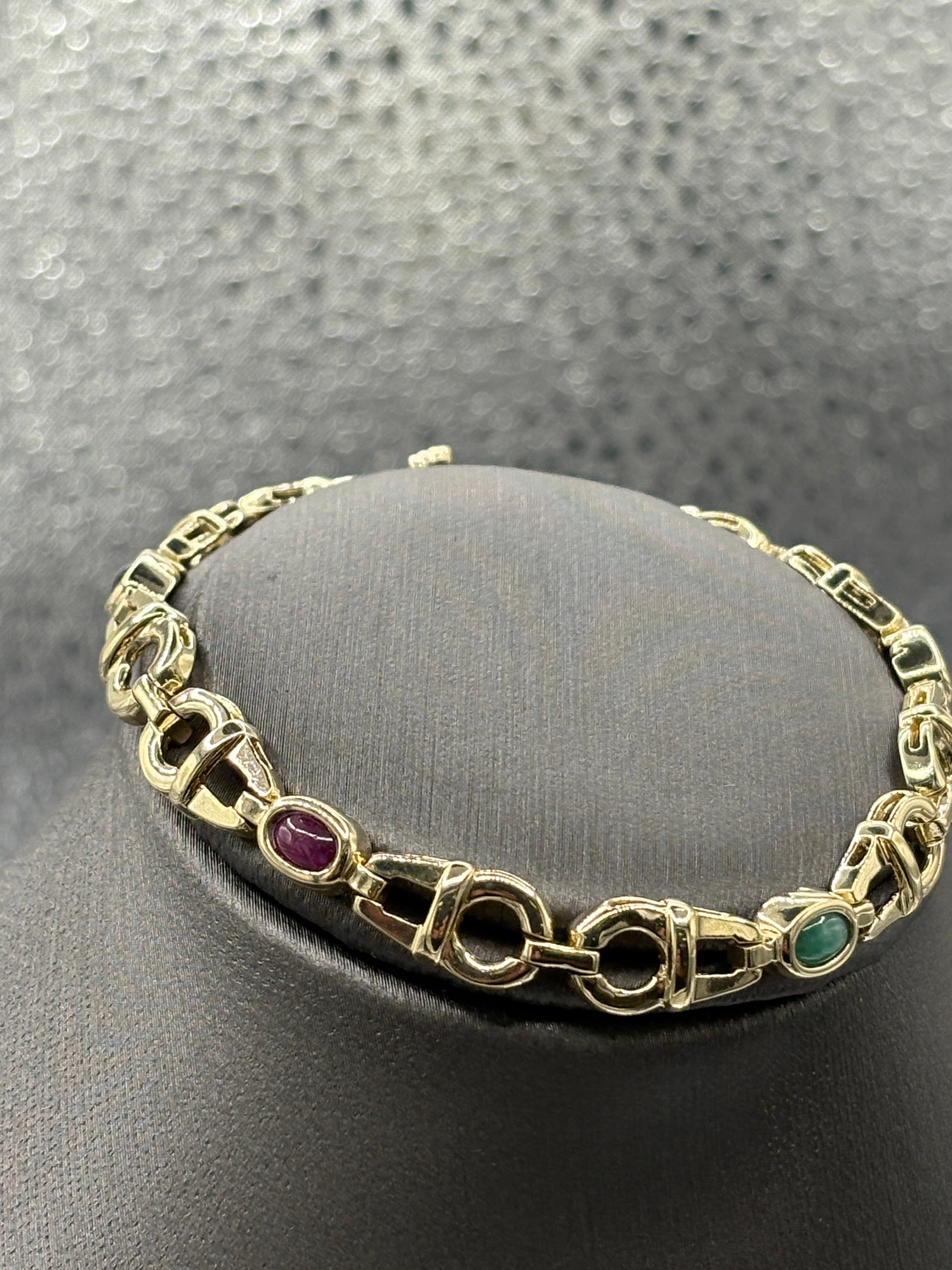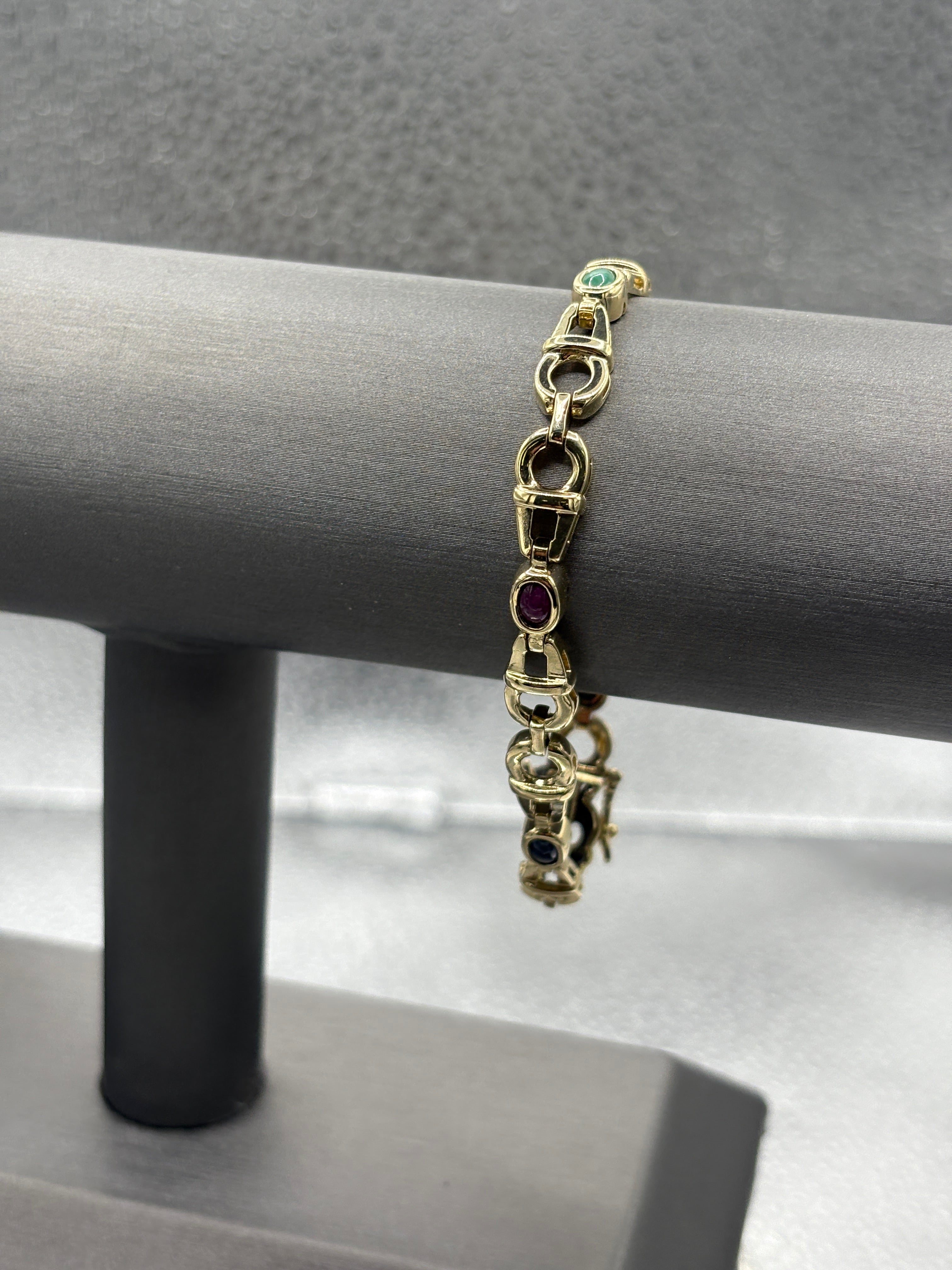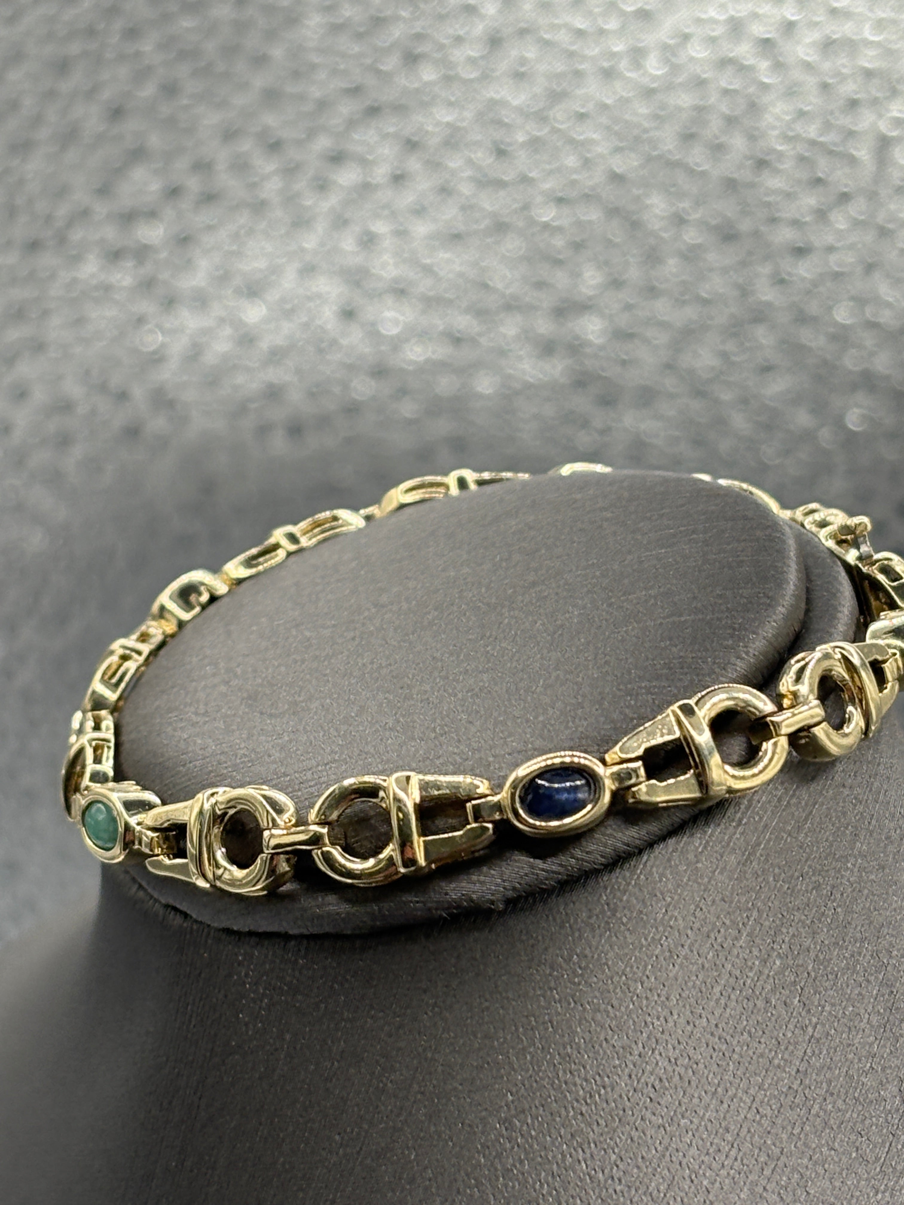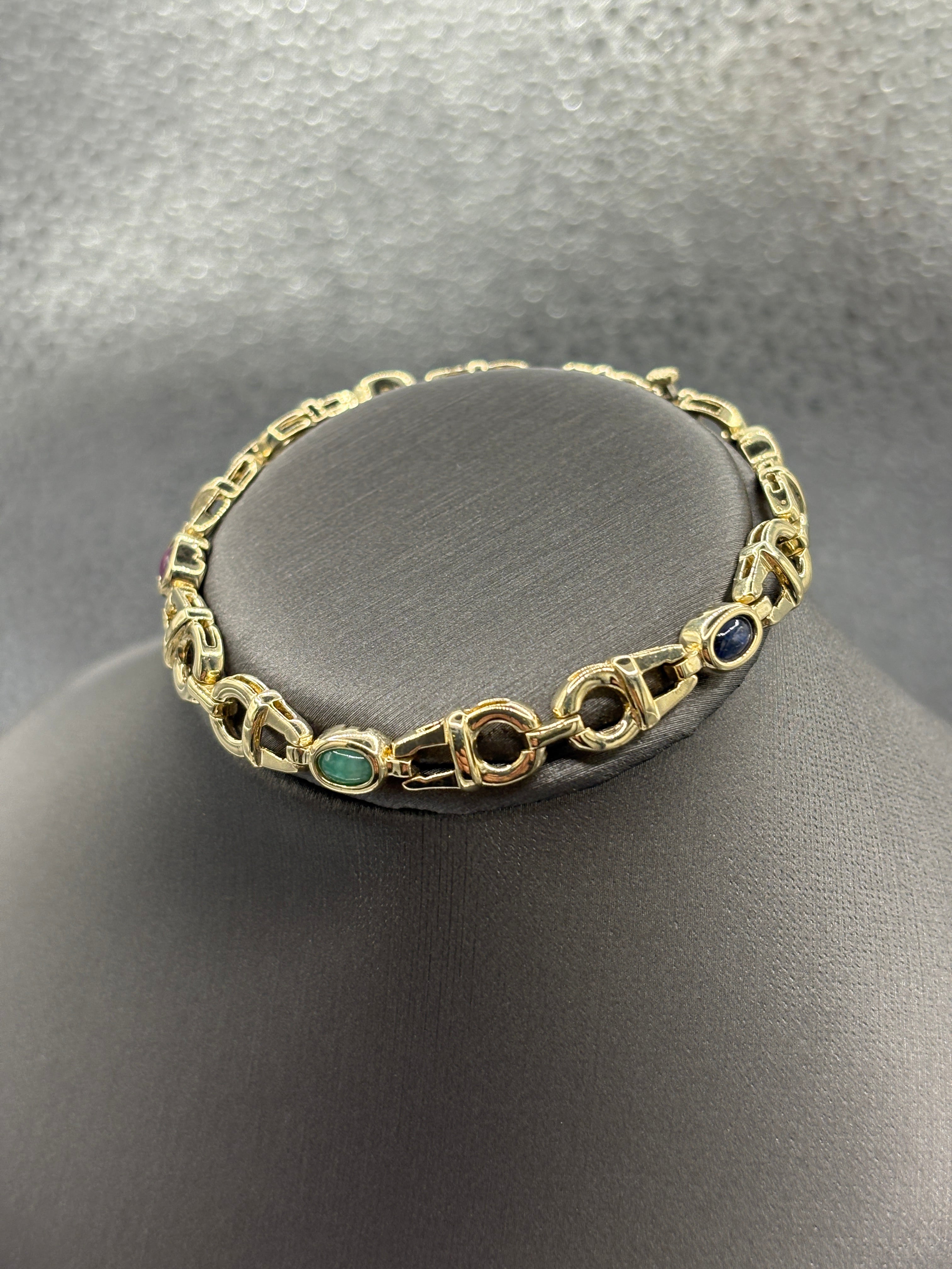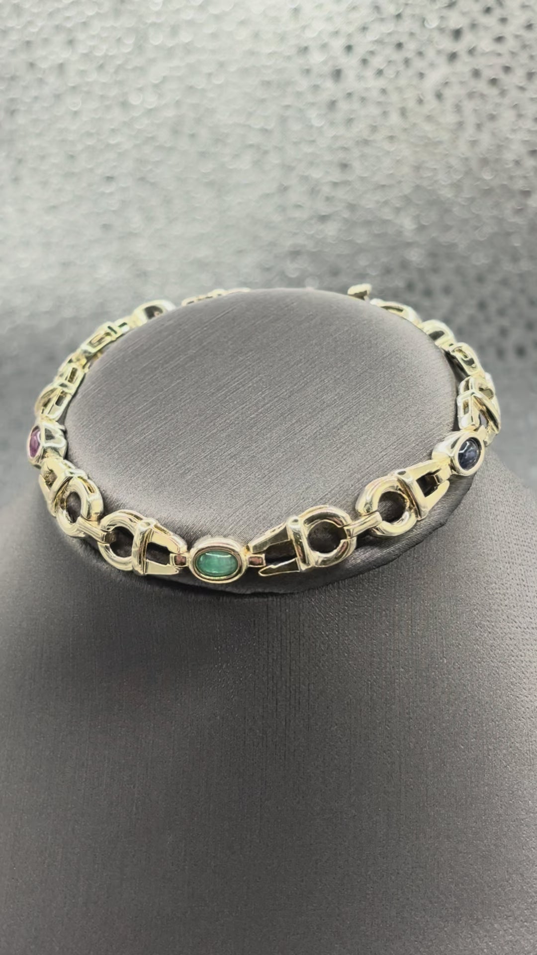 14 Karat Yellow Gold Italian Custom Colored Stone Link Bracelet