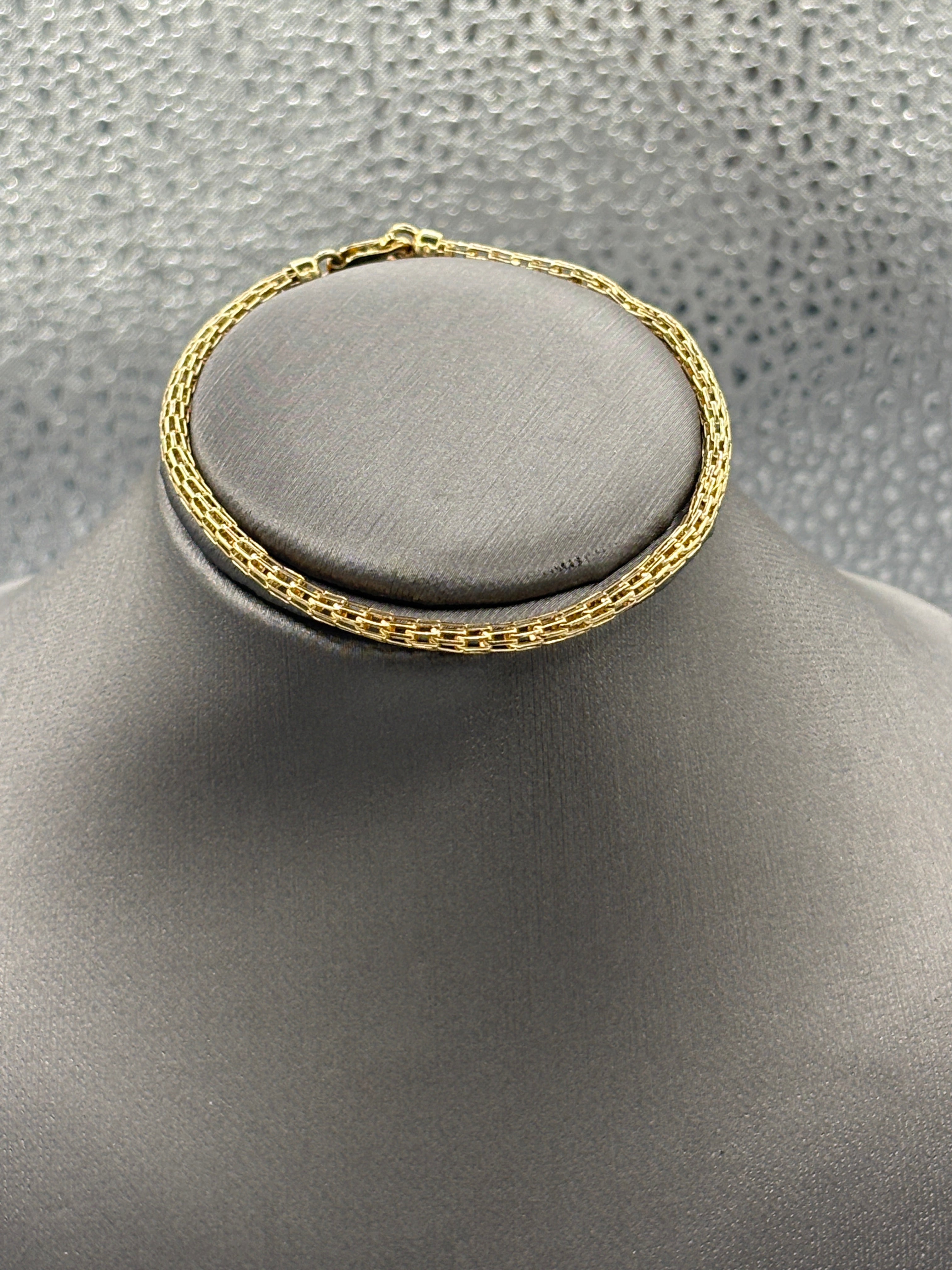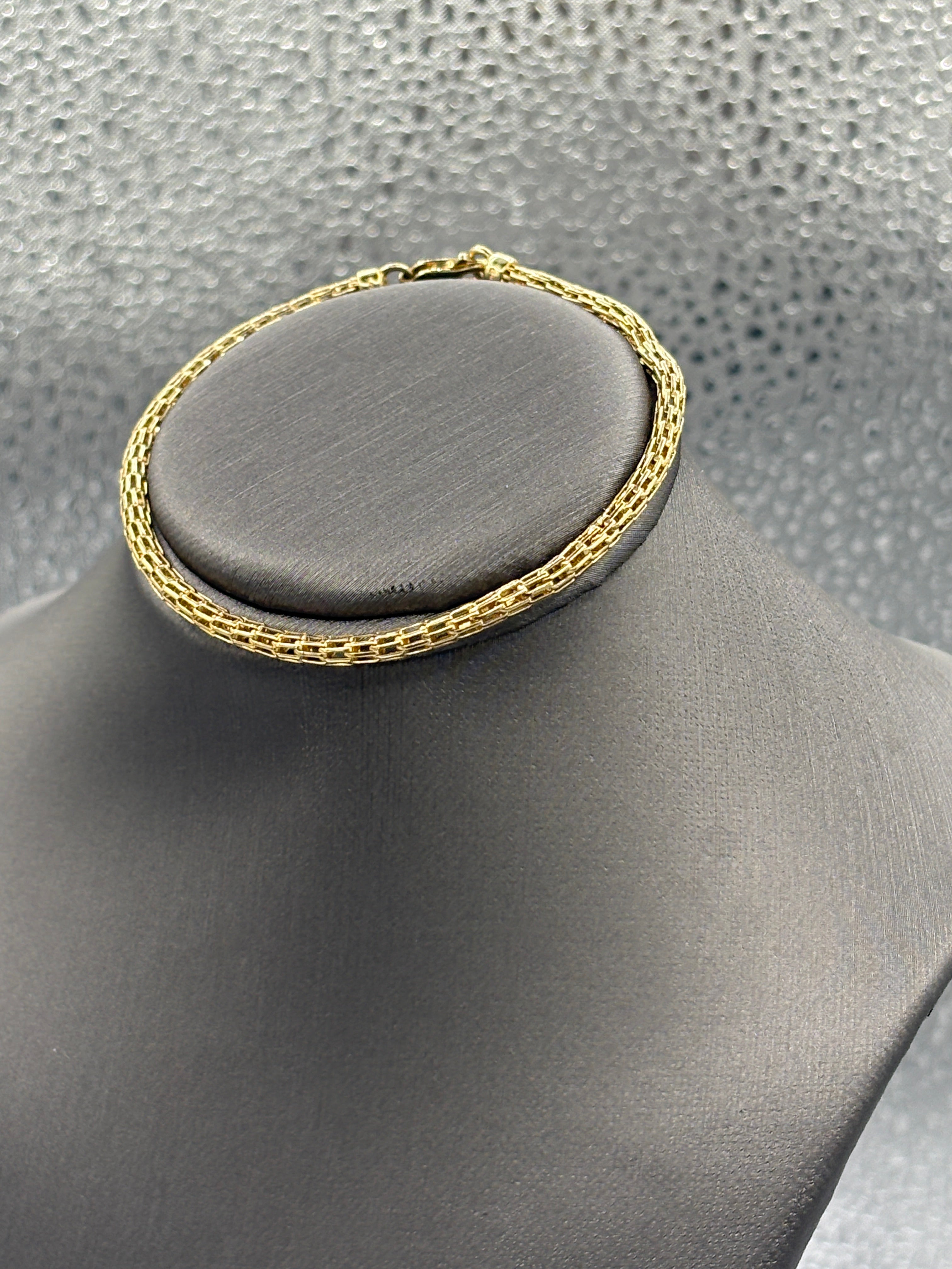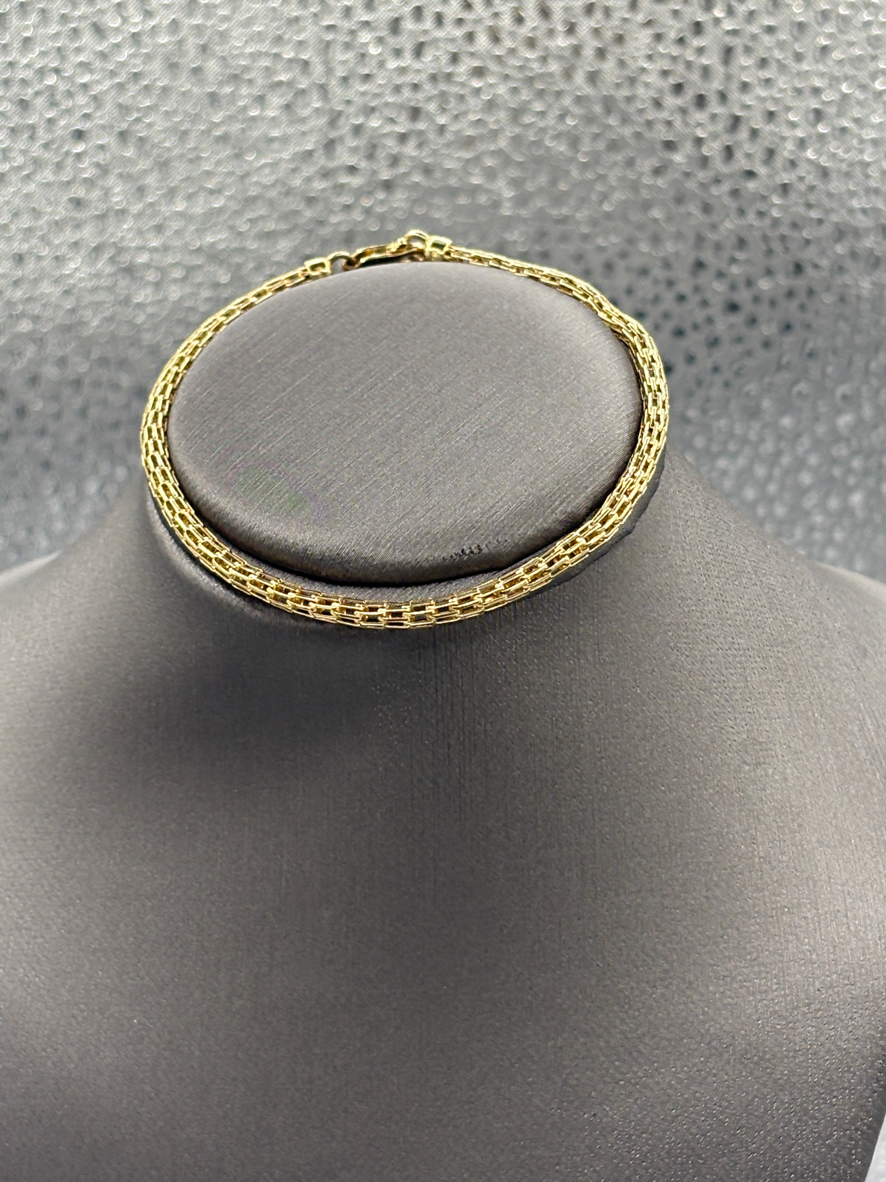 14 Karat Yellow Gold Ladies 2 Row Bismarck Link Bracelet