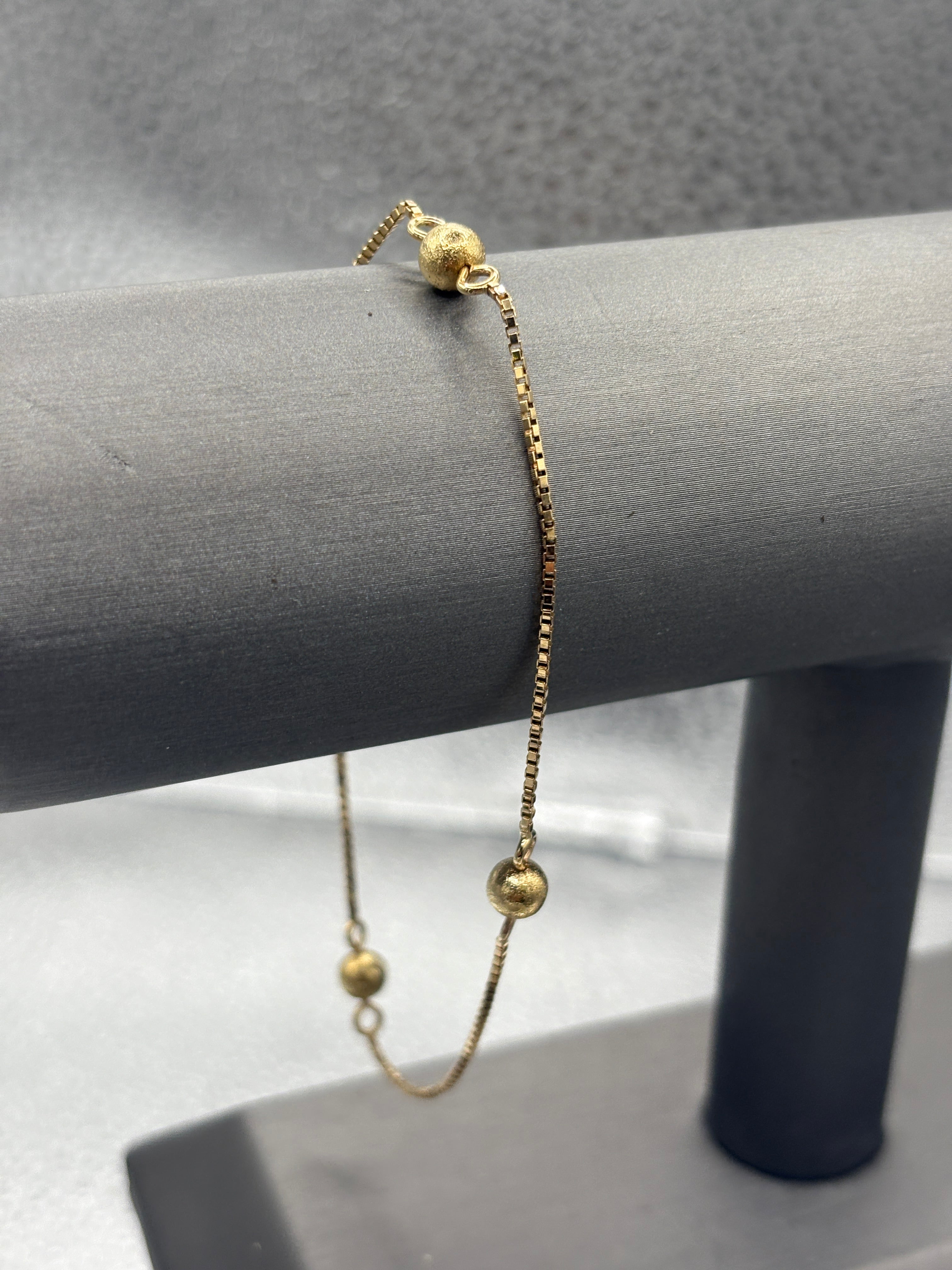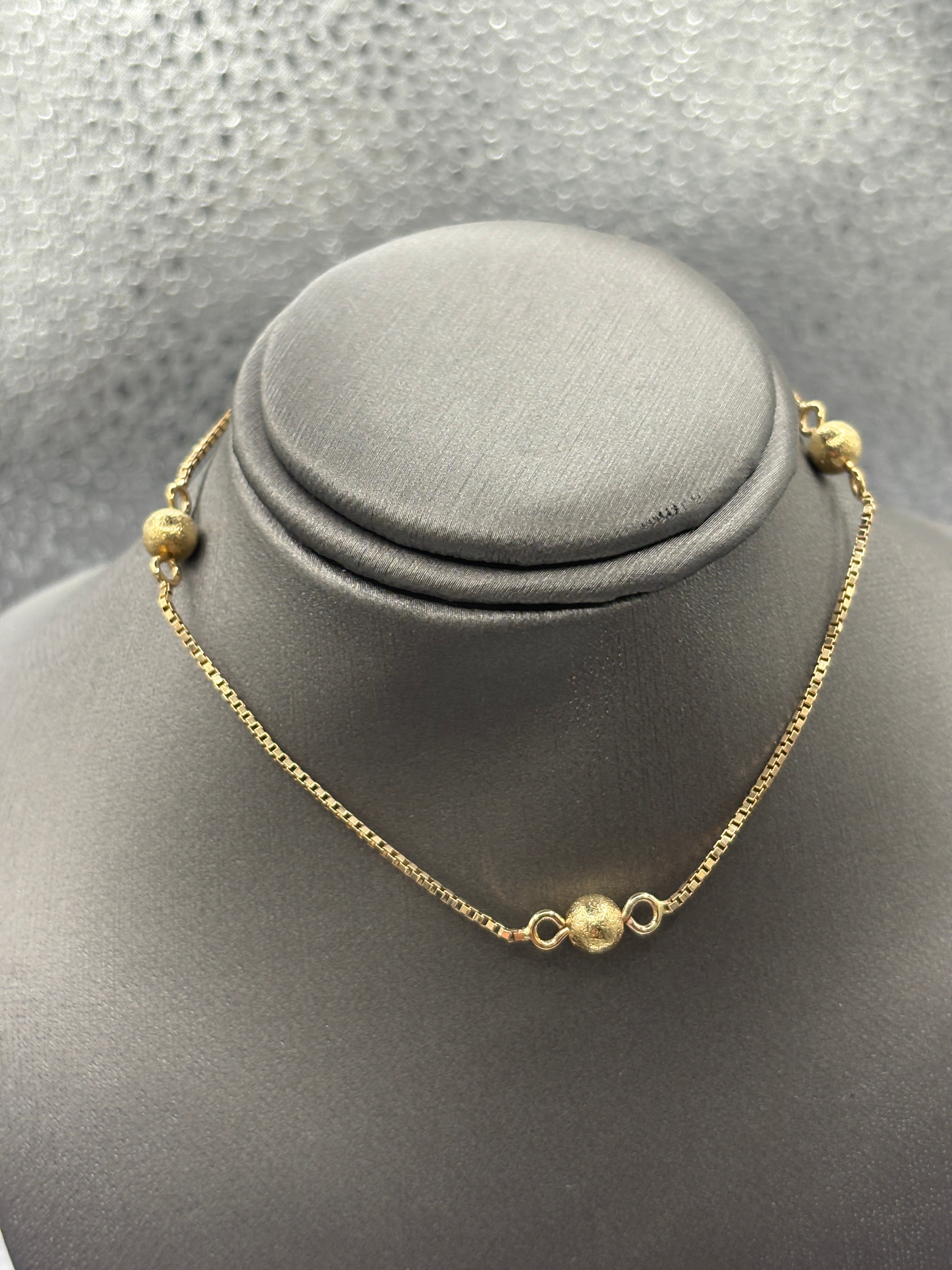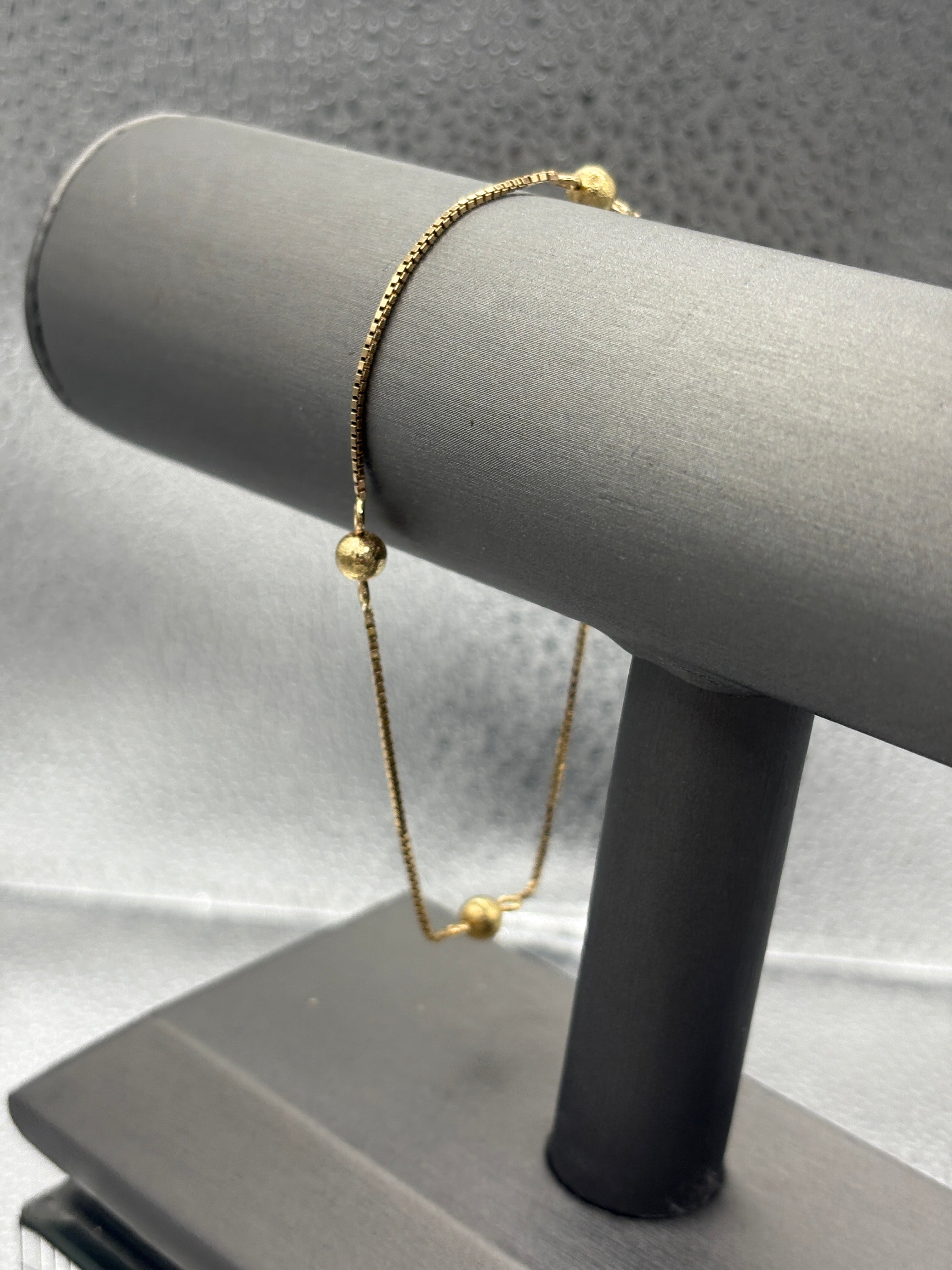 14 Karat Yellow Gold Ladies Box & Ball Link Ankle Bracelet