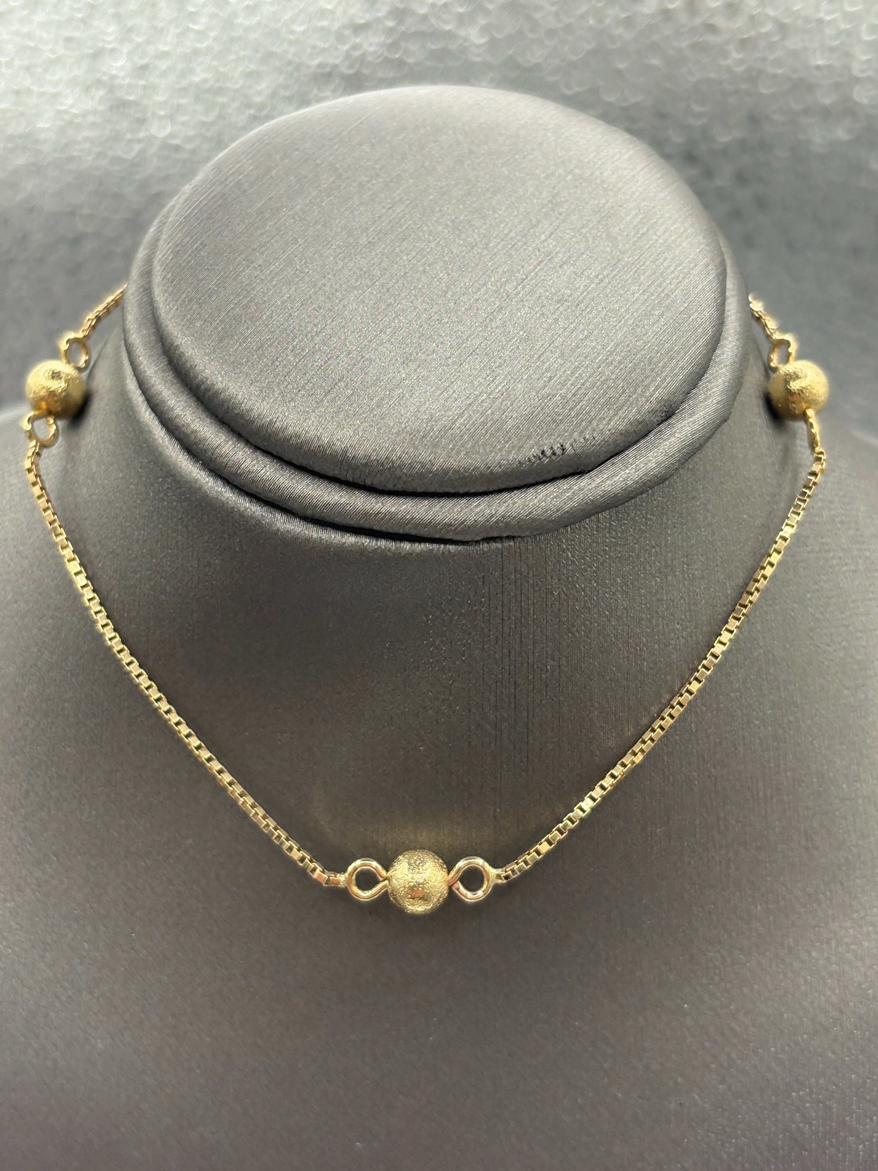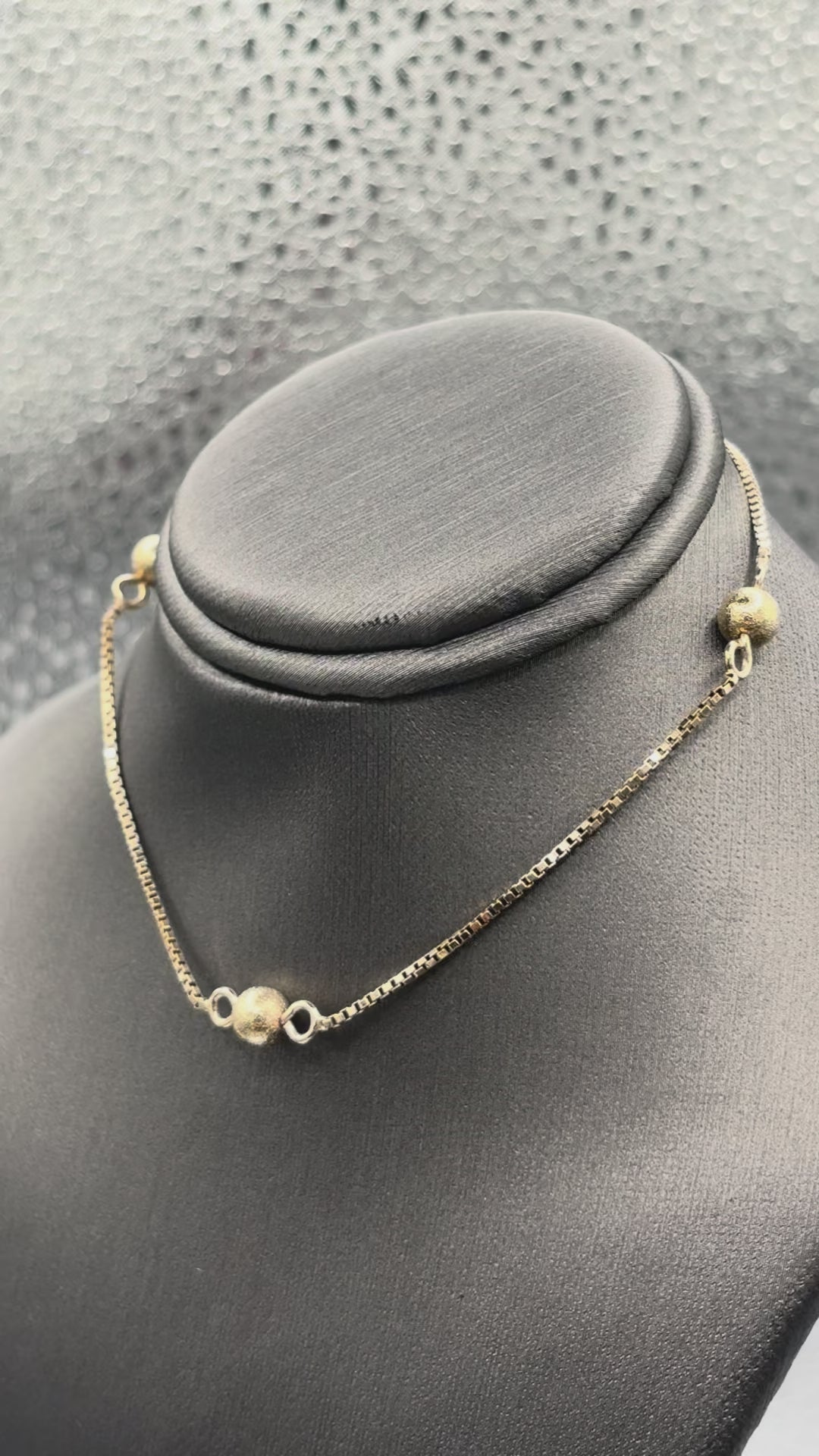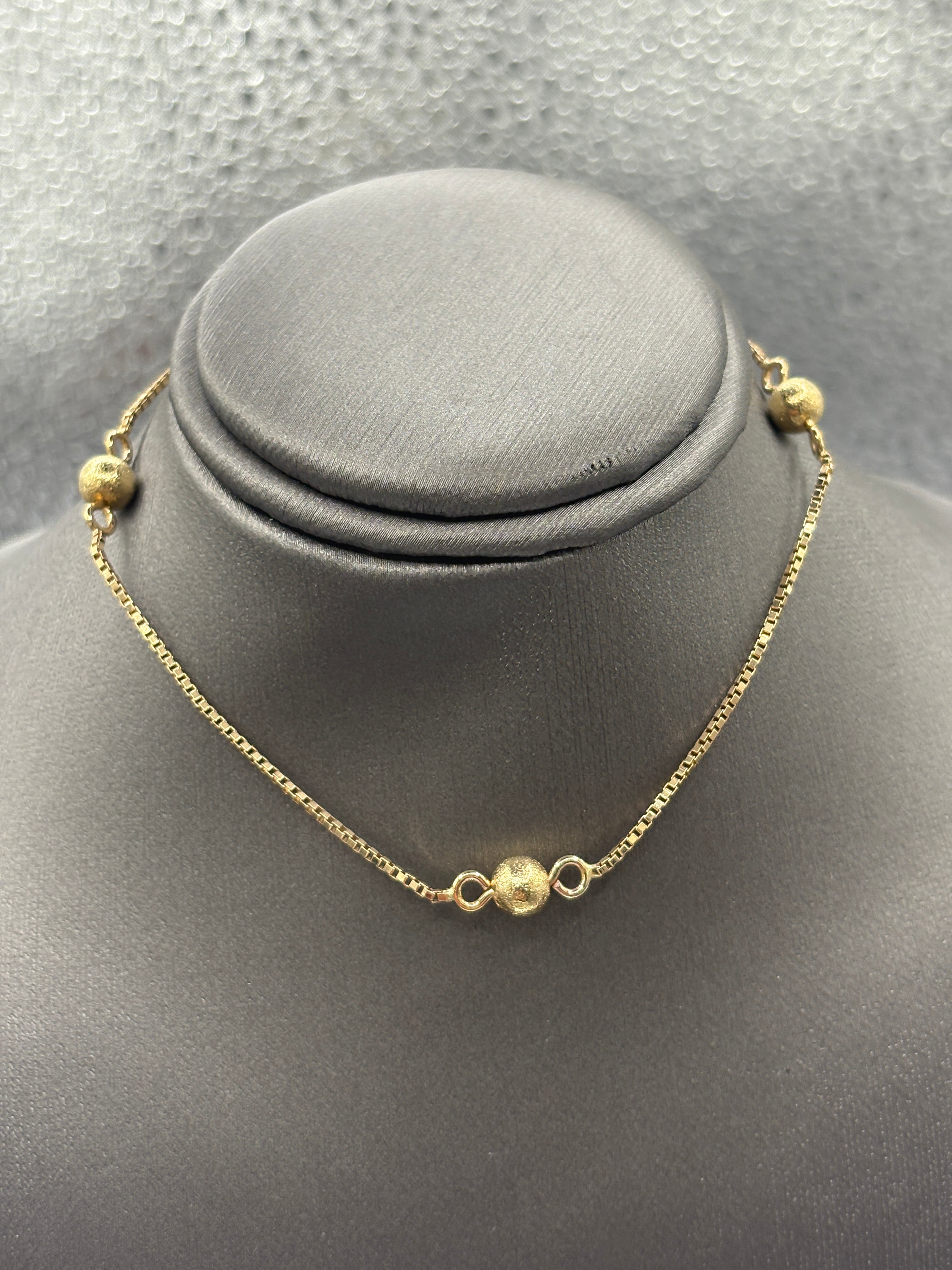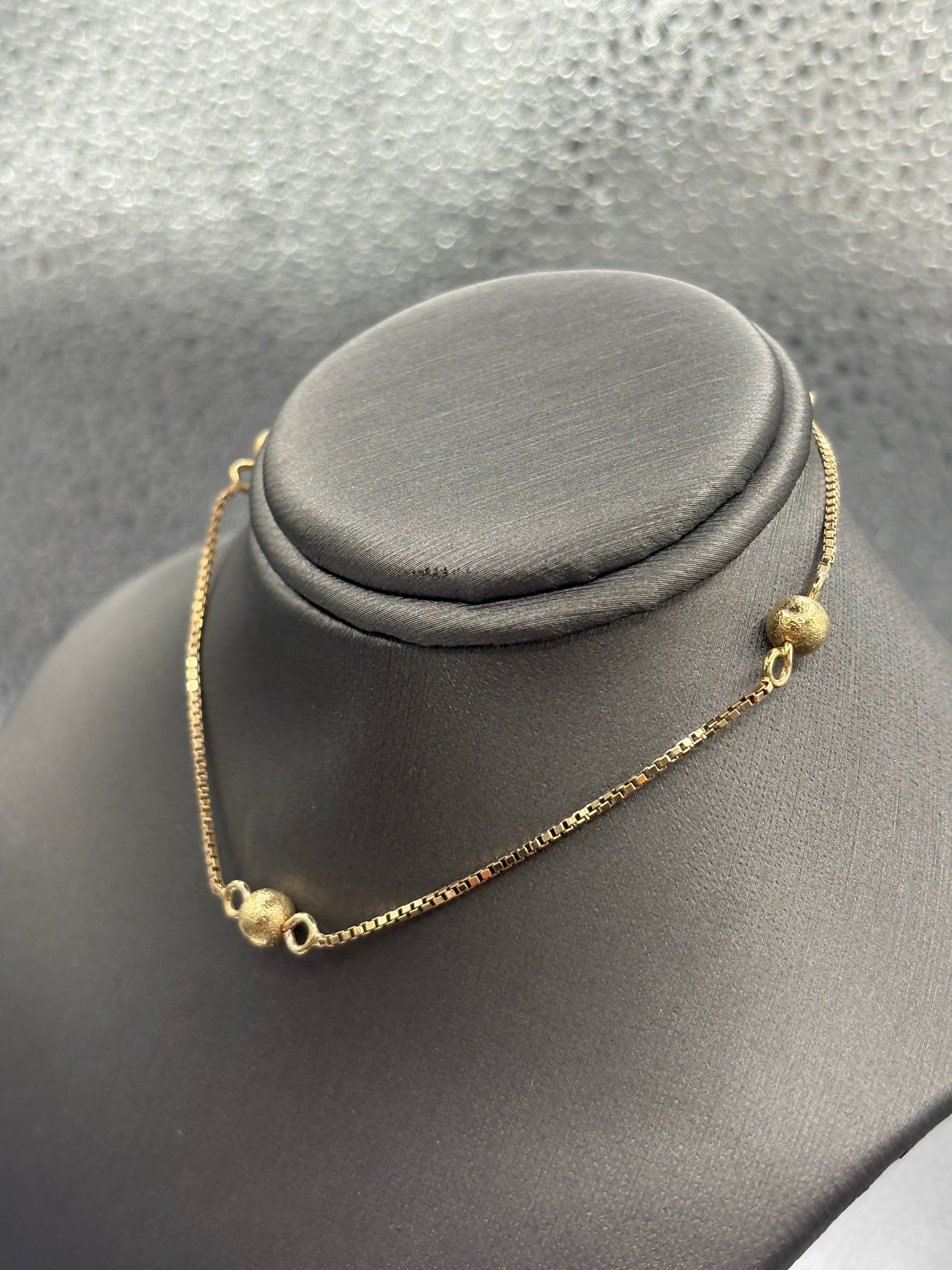 14 Karat Yellow Gold Ladies Box & Ball Link Ankle Bracelet