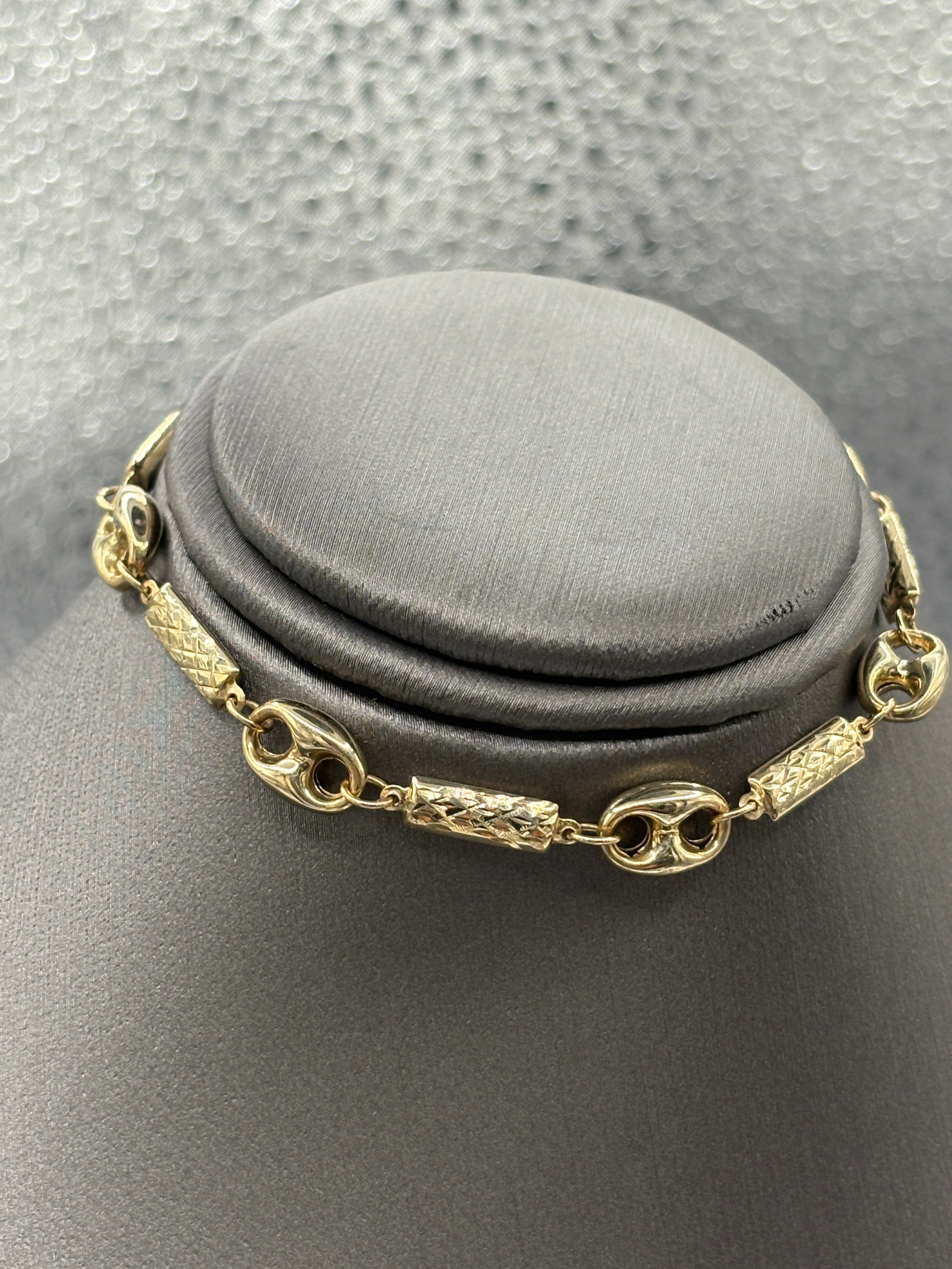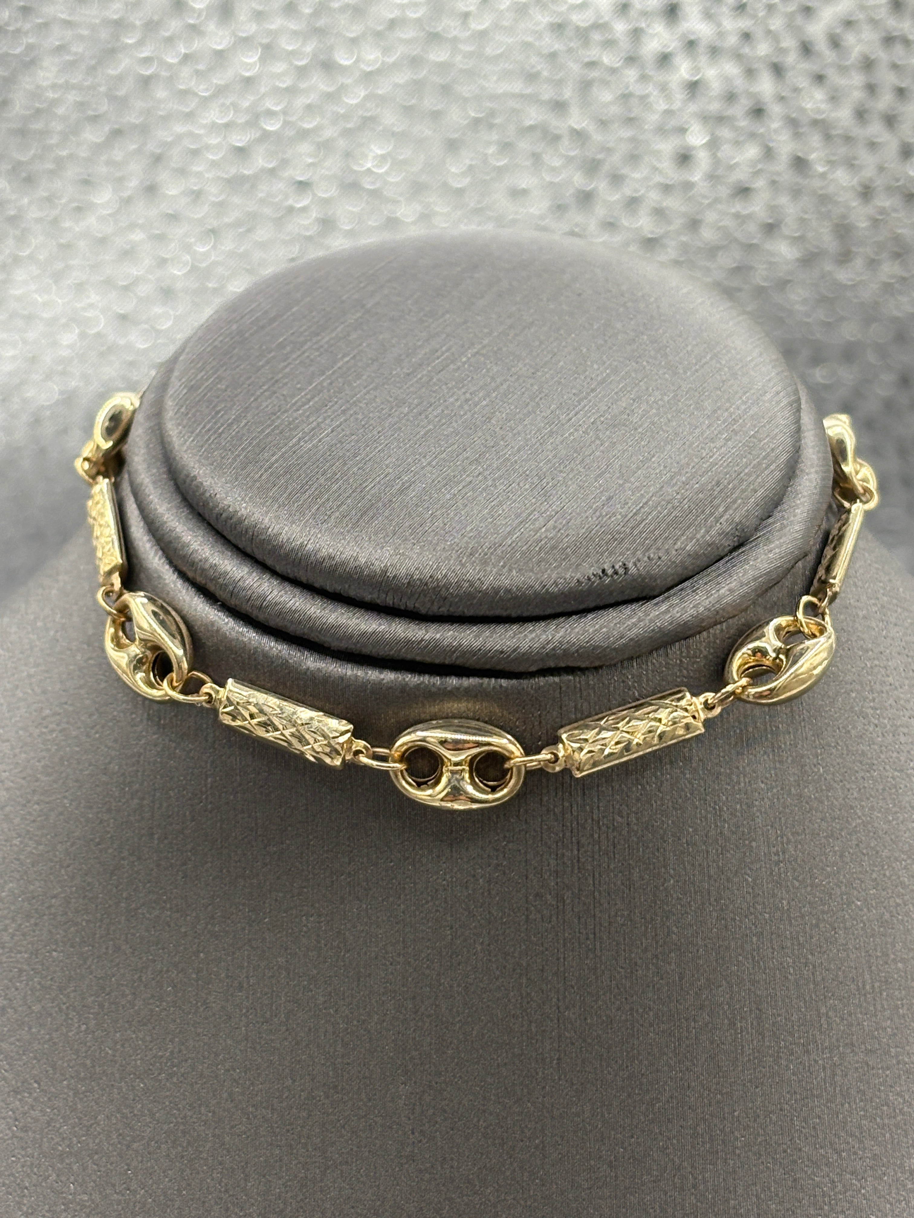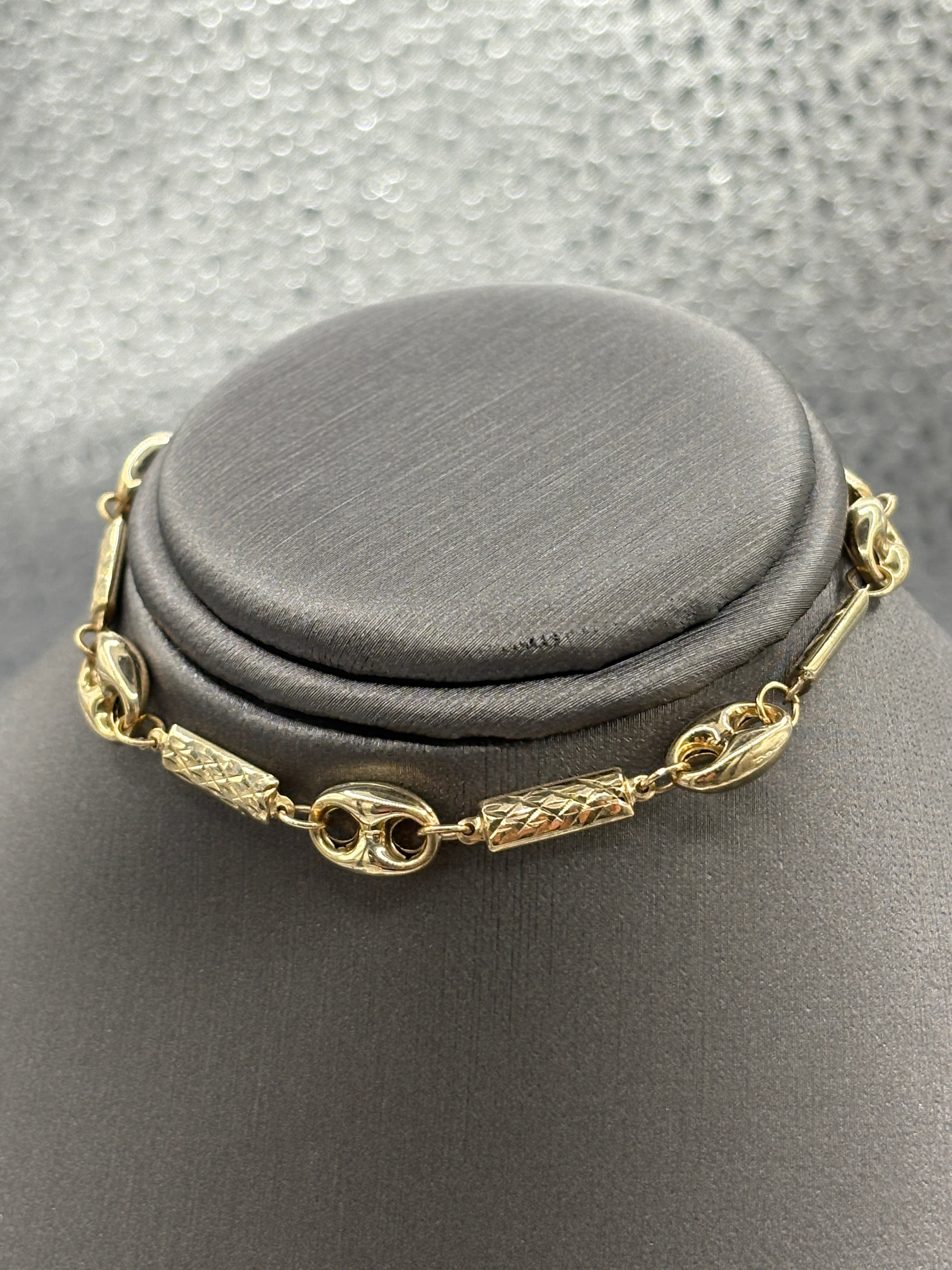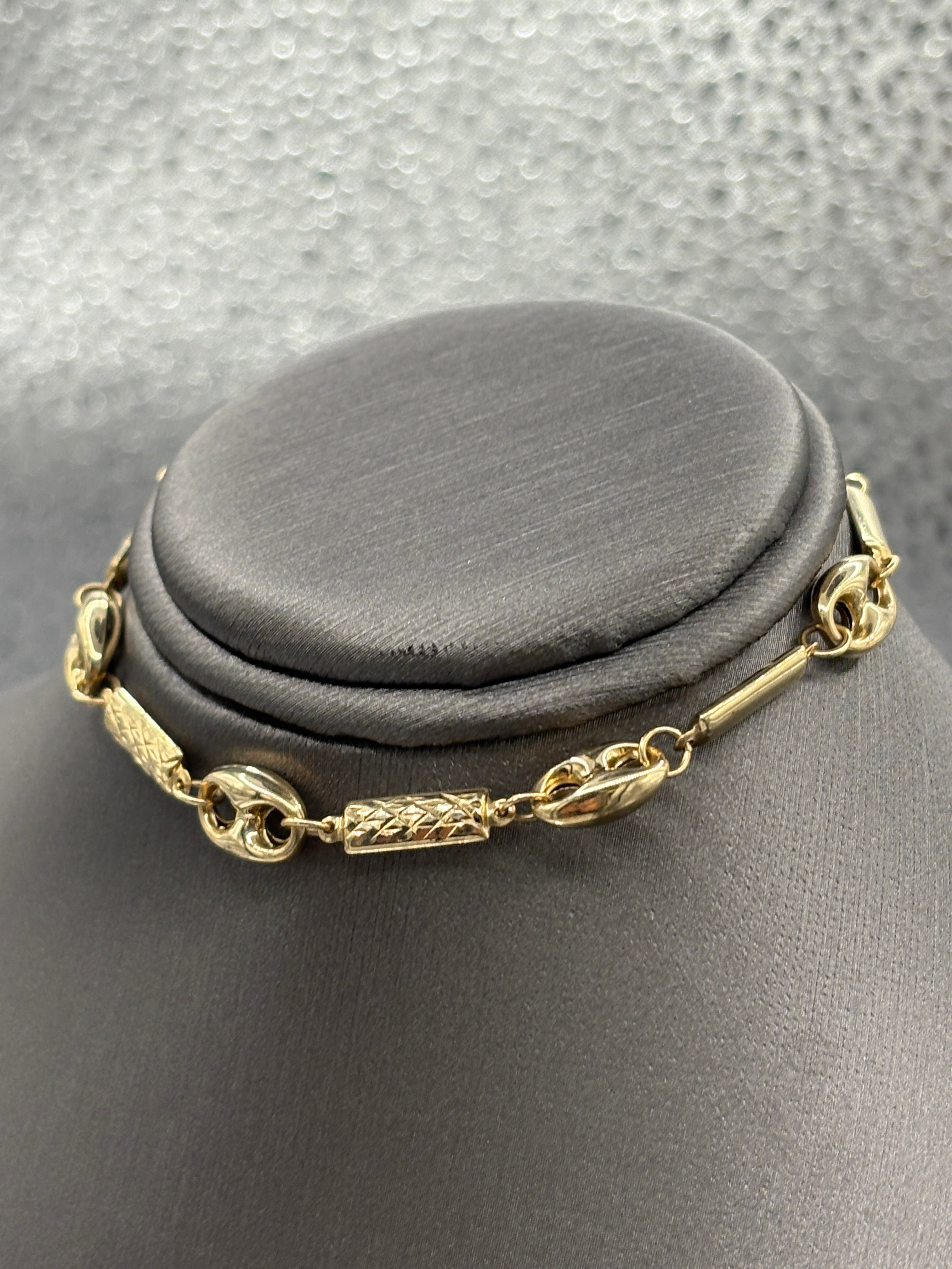 14 Karat Yellow Gold Ladies Di-Cut Multi Style Link Bracelet