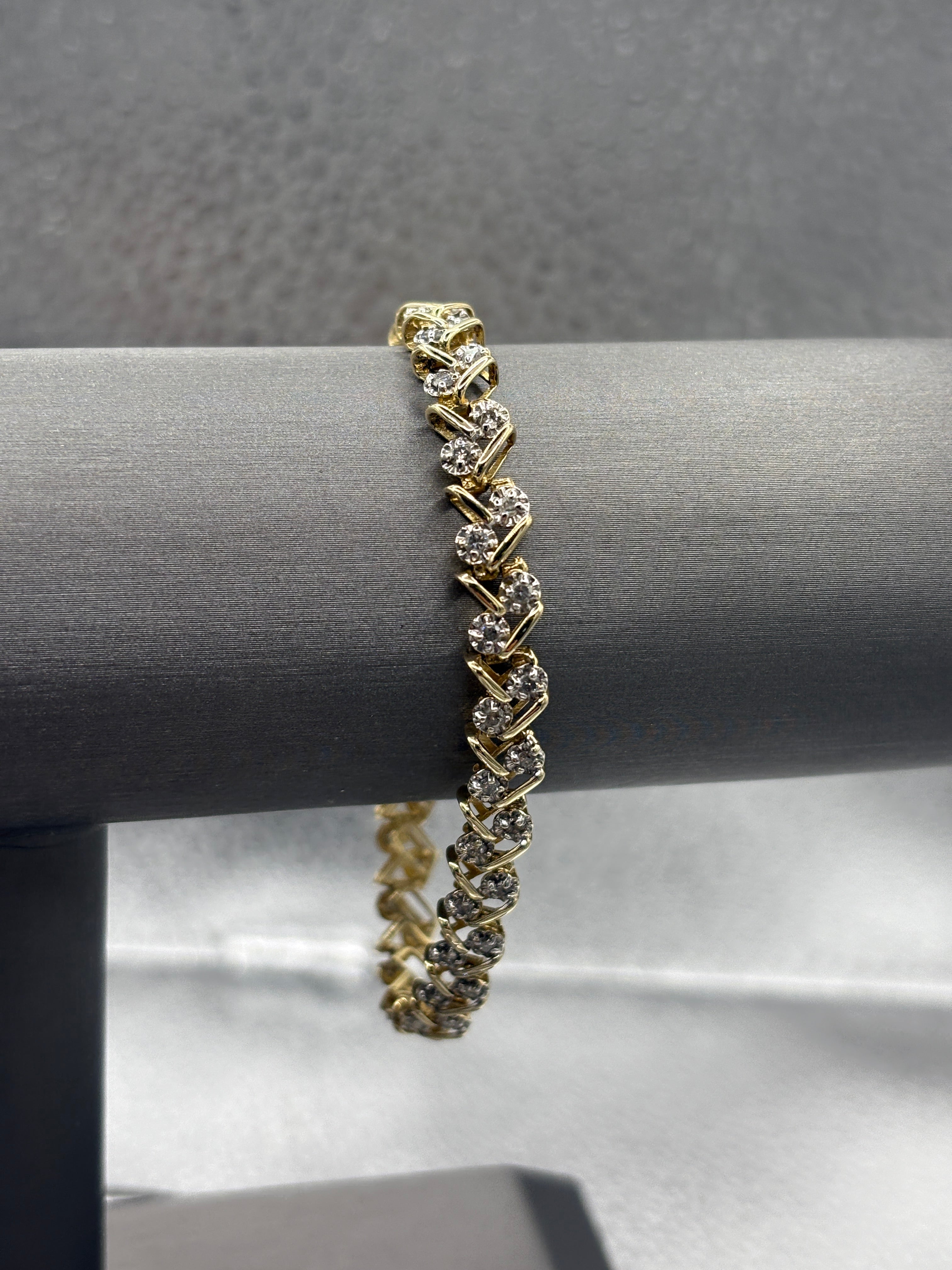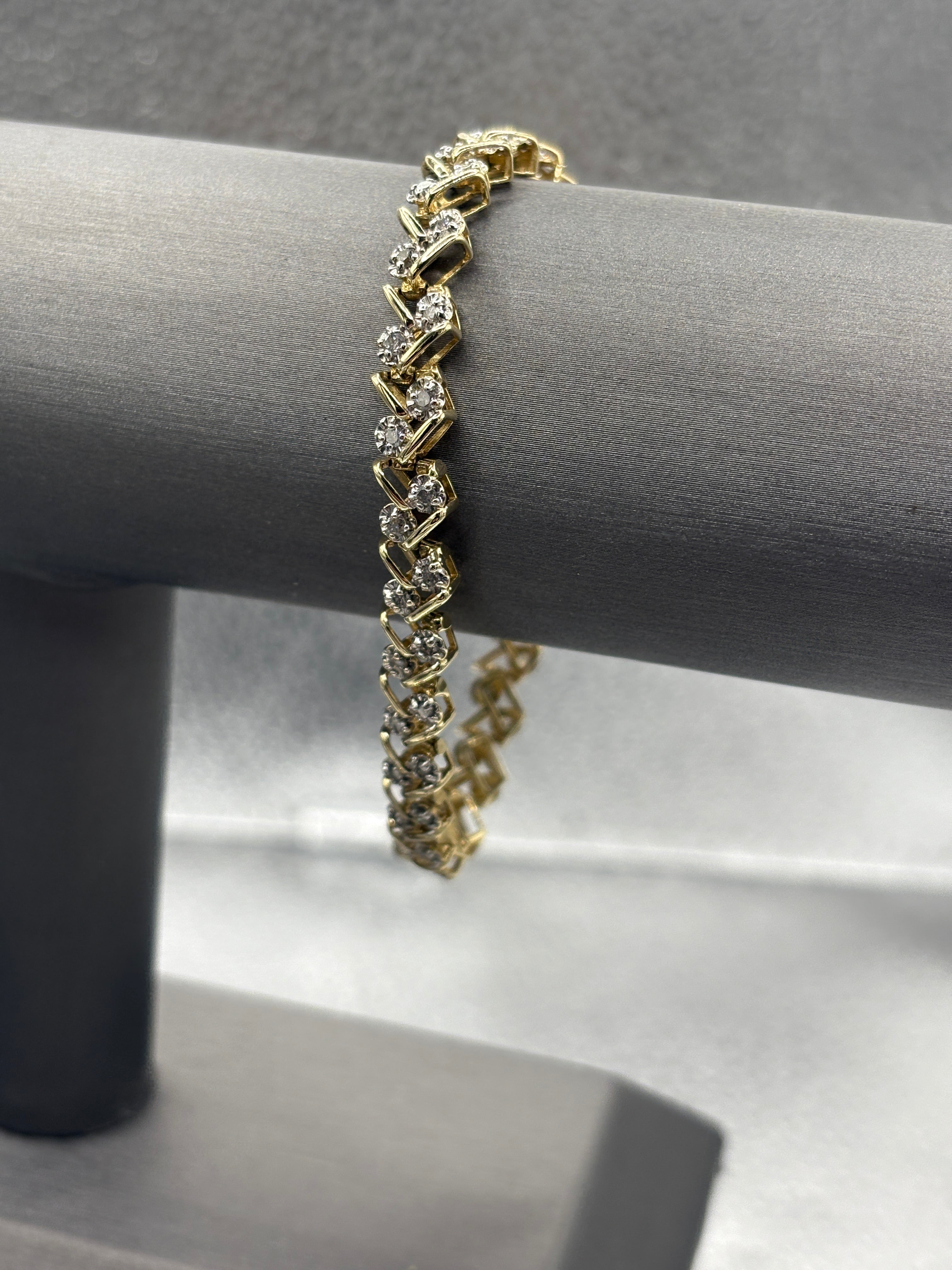 14 Karat Yellow Gold Ladies Diamond Zig Zag Bracelet