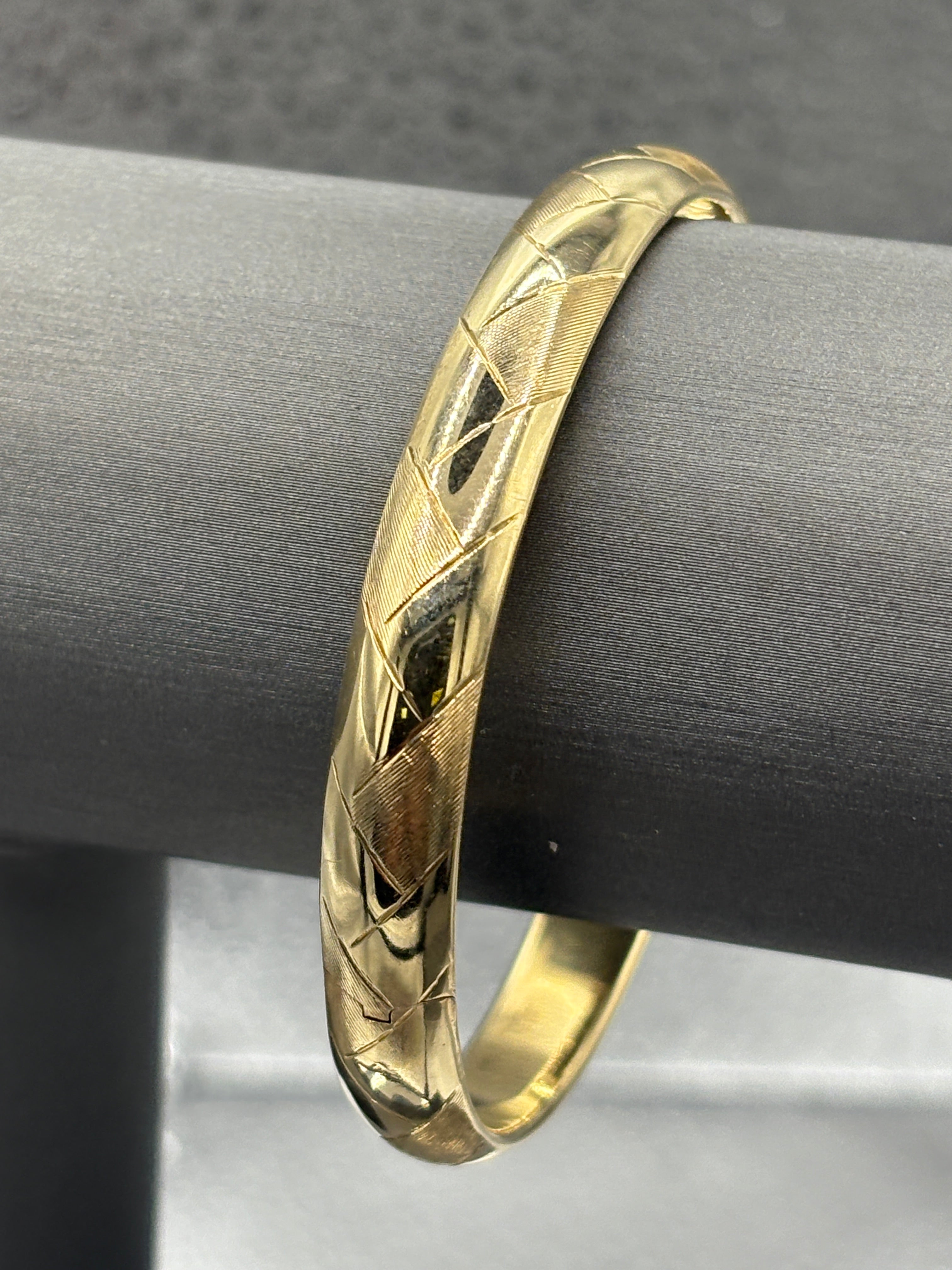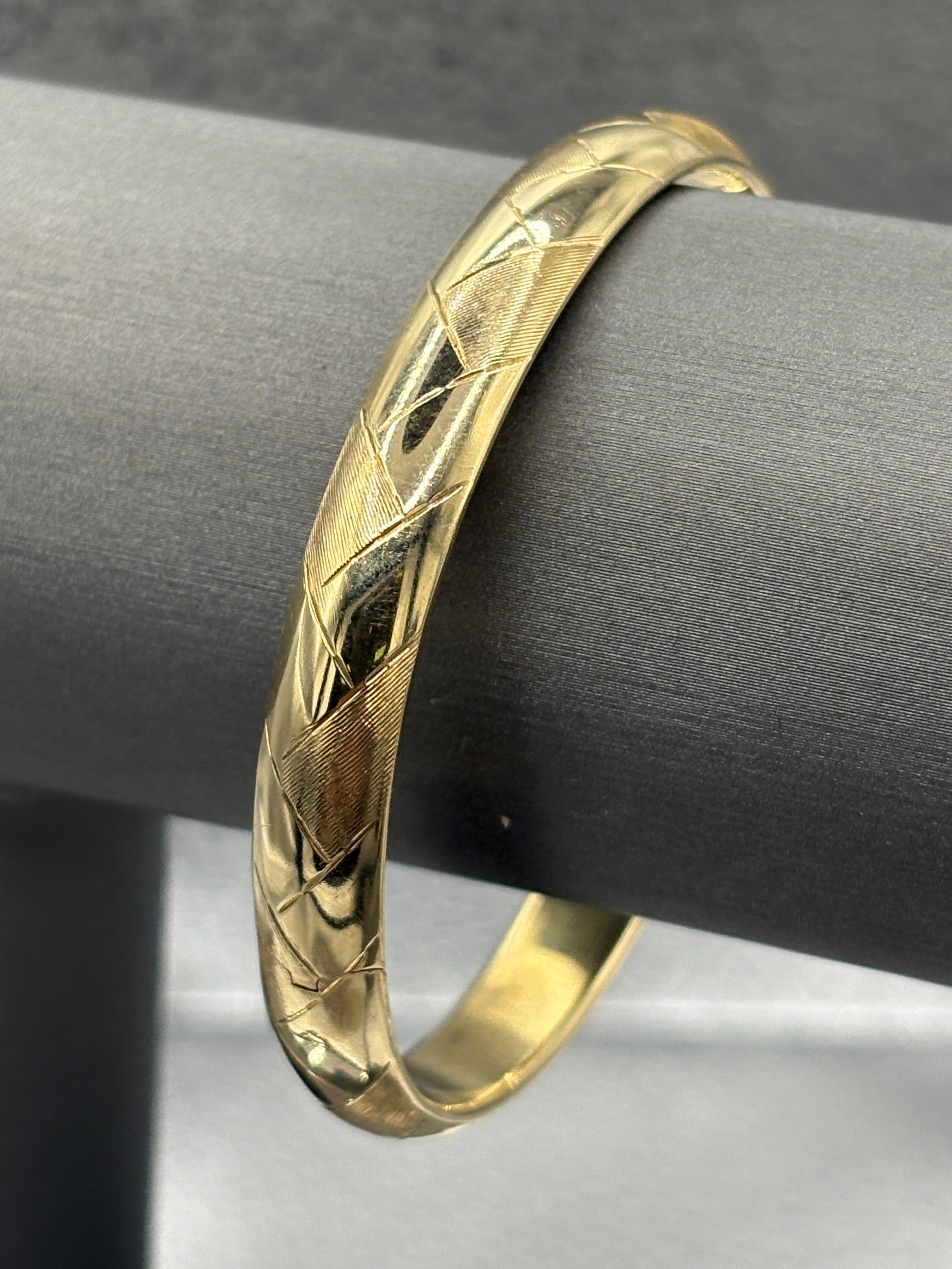14 Karat Yellow Gold Ladies Engraved Bangle Bracelet