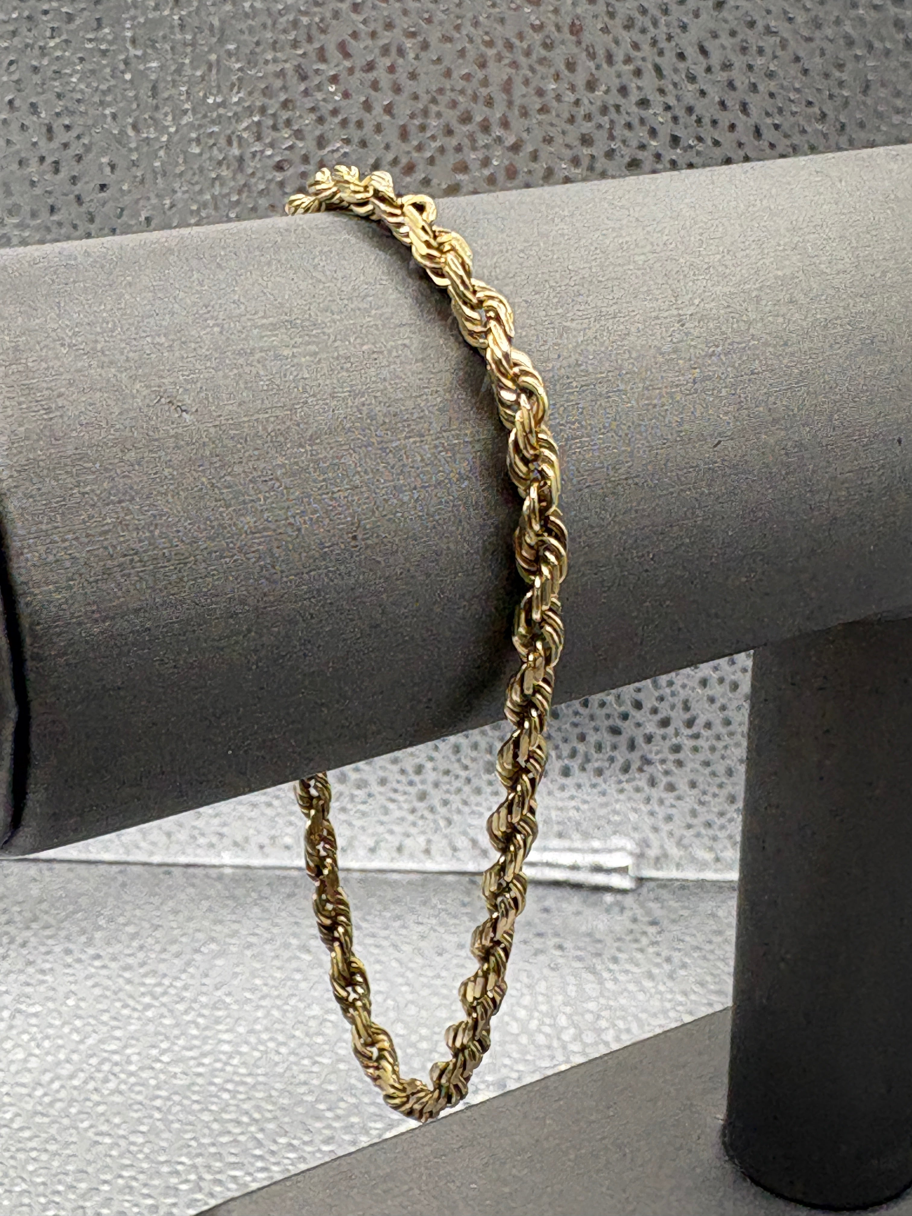 The Classic rope chain bracelet was designed, manufactured and imported from Italy. Made in 14 karat solid yellow gold. The diamond-cut rope is one of the most popular chains ever made and has been a favorite for over 100 years. Strong and durable, the rope bracelet makes it prefect to wear everyday. A must have bracelet!