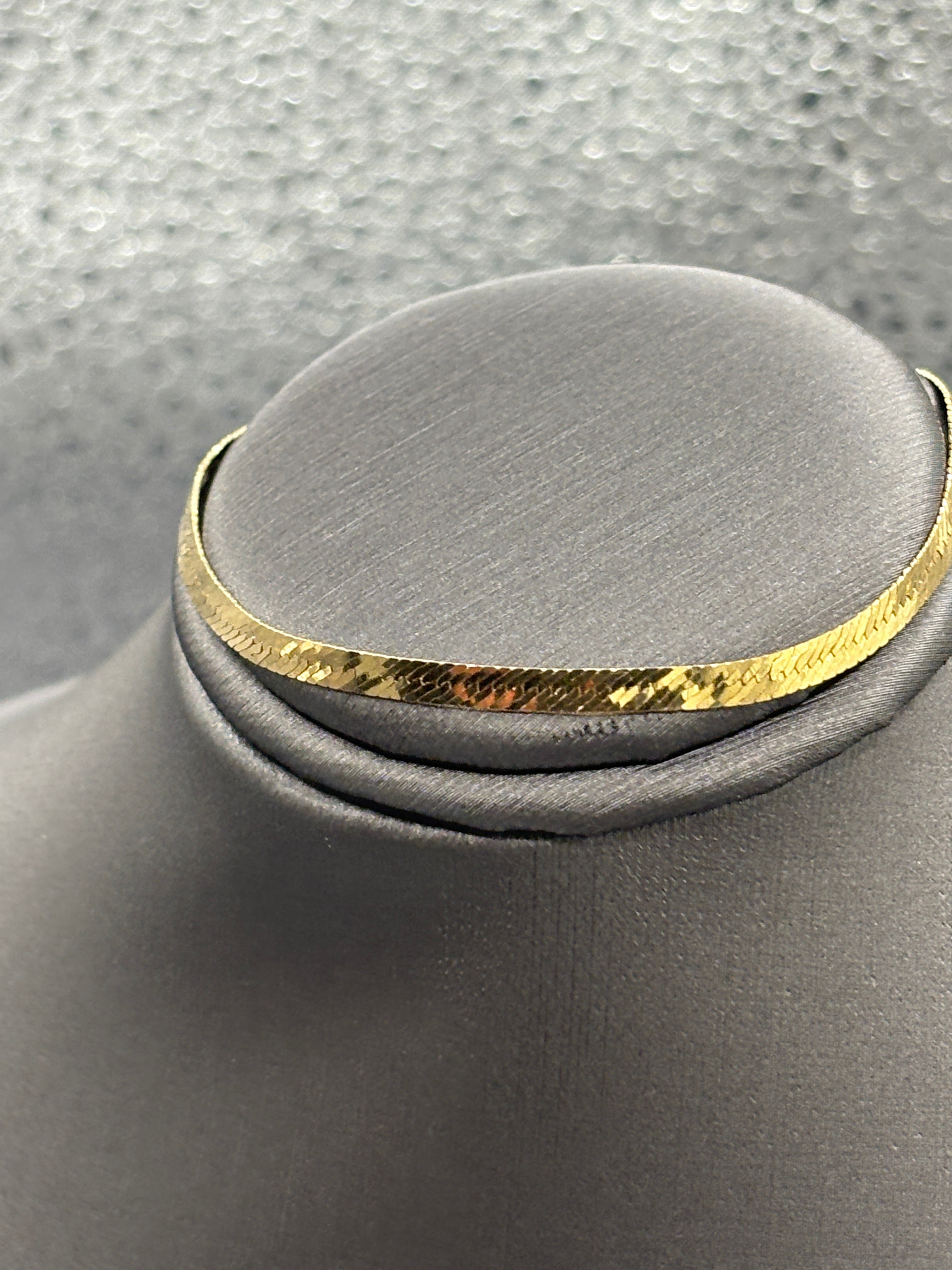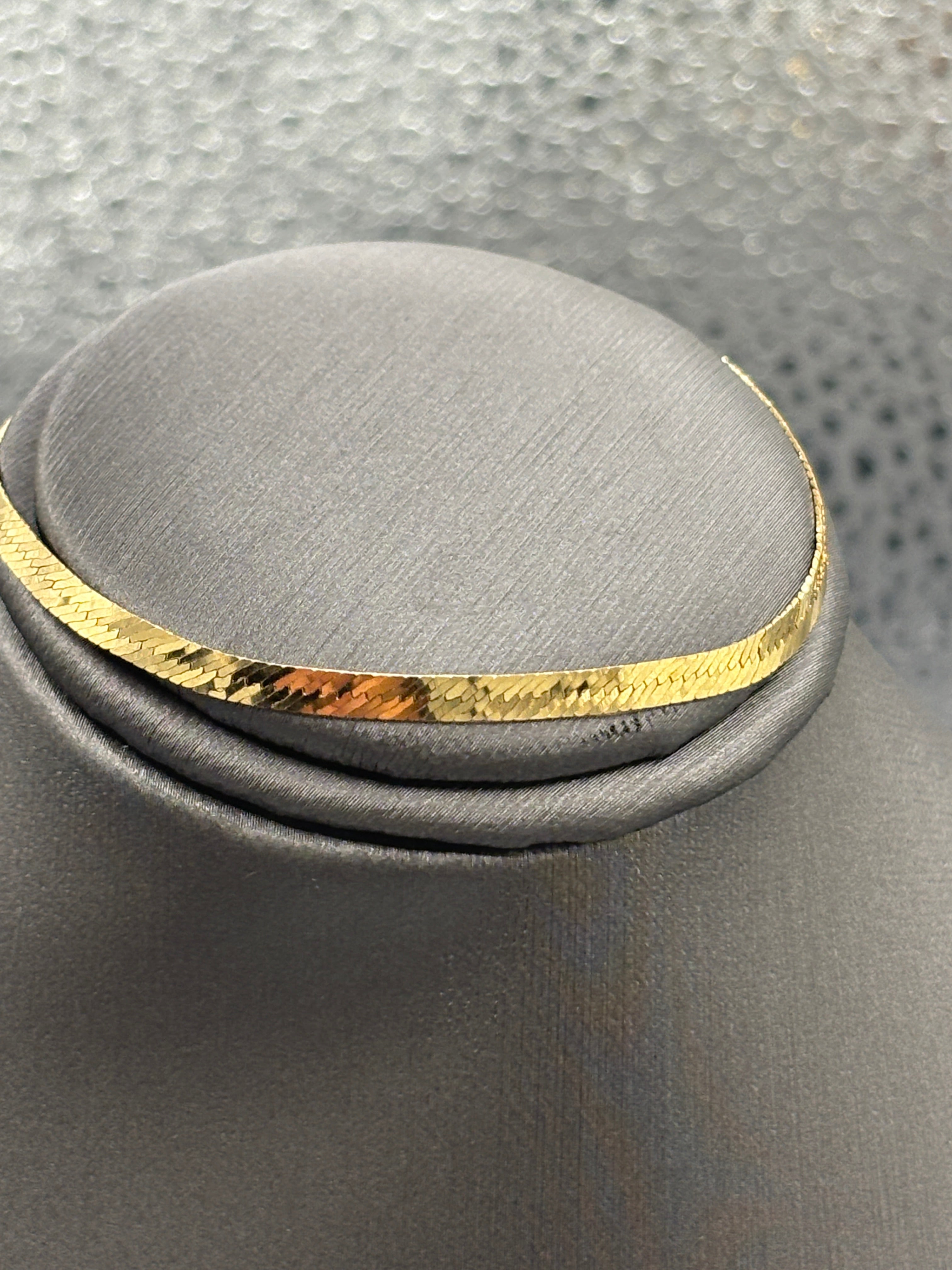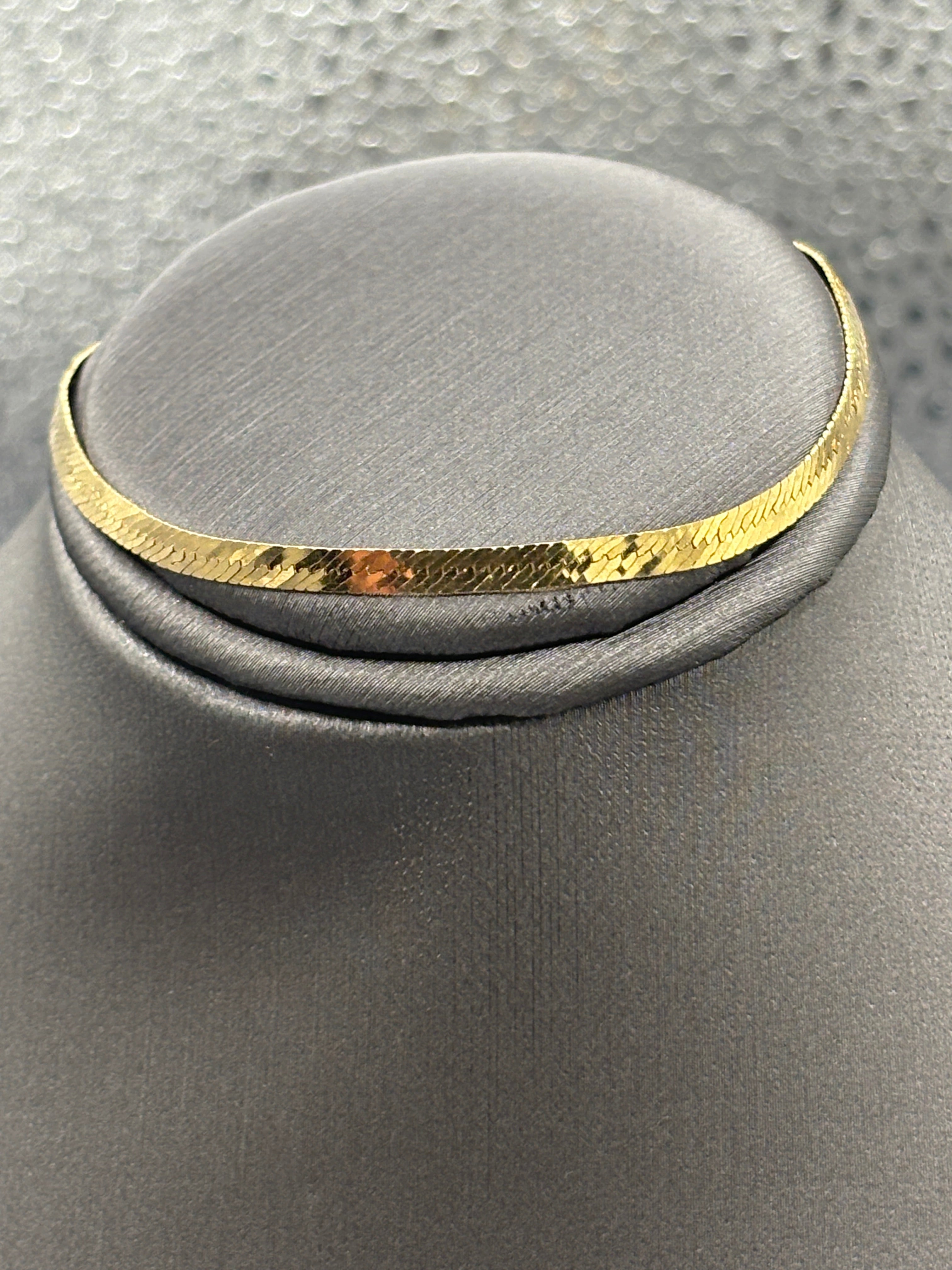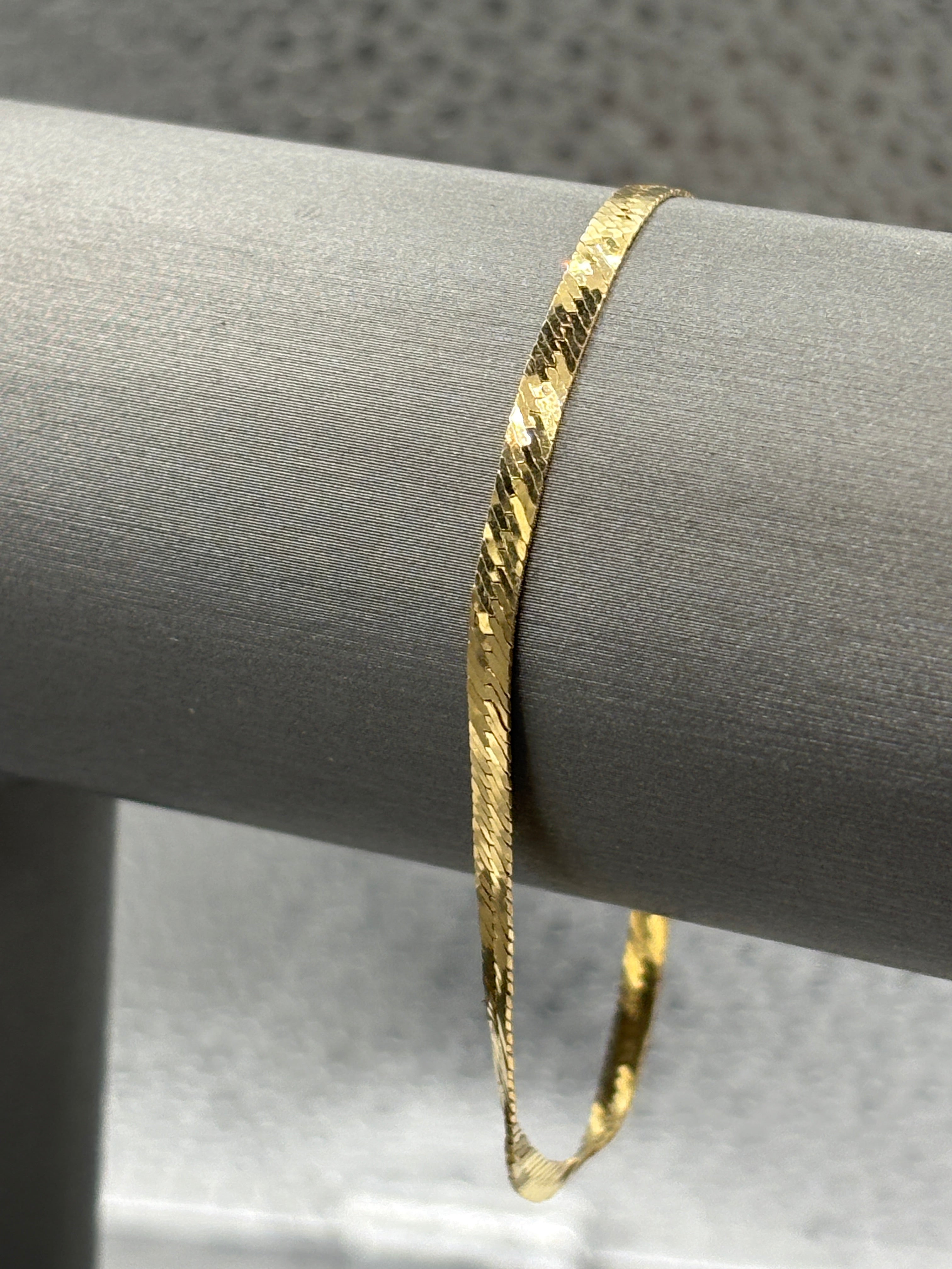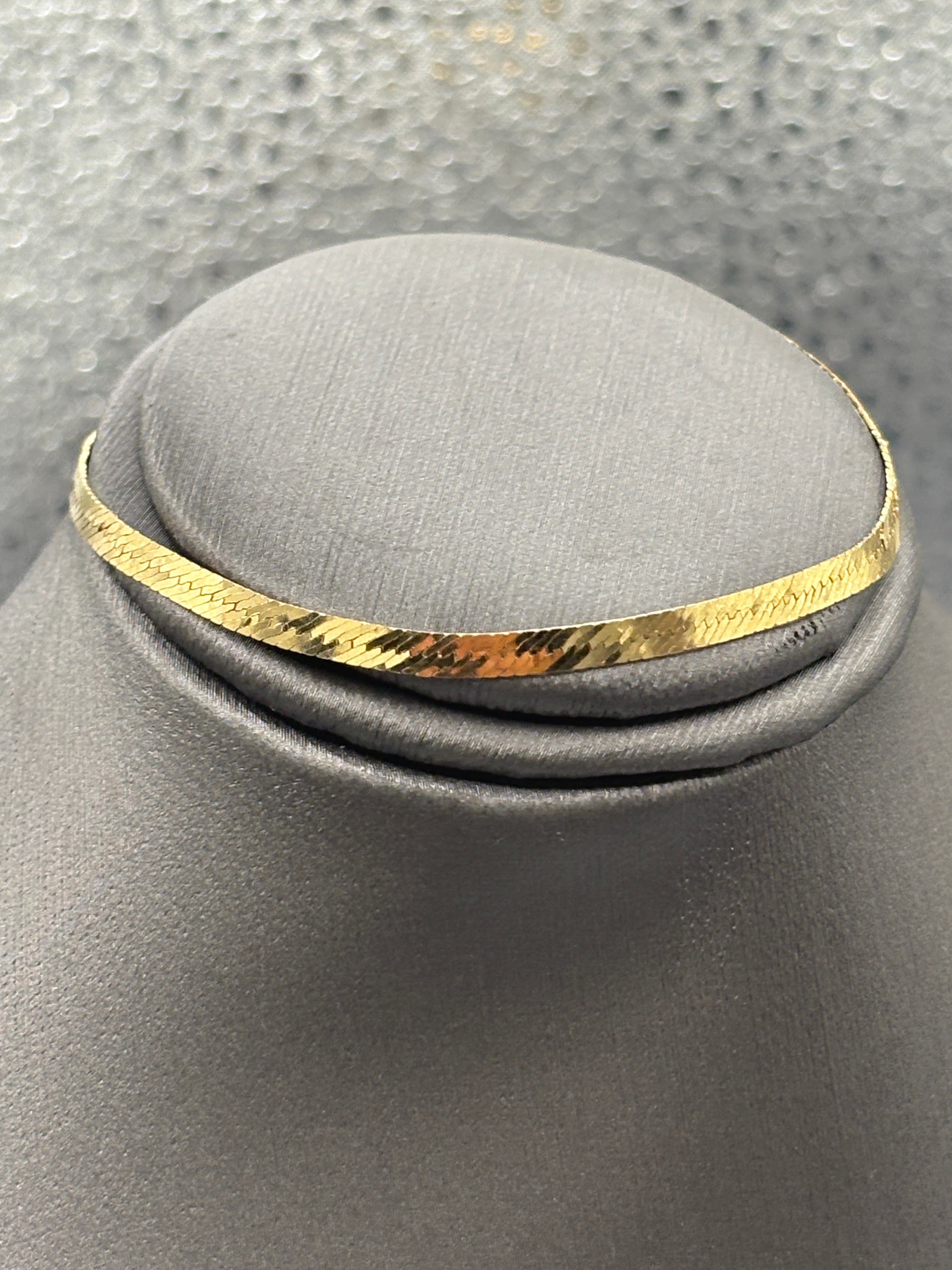 A classic herringbone bracelet, designed, made and imported from Italy. Manufactured in 14 karat solid yellow gold this bracelet is perfect to wear everyday. This bracelet fits a petite woman or teen!