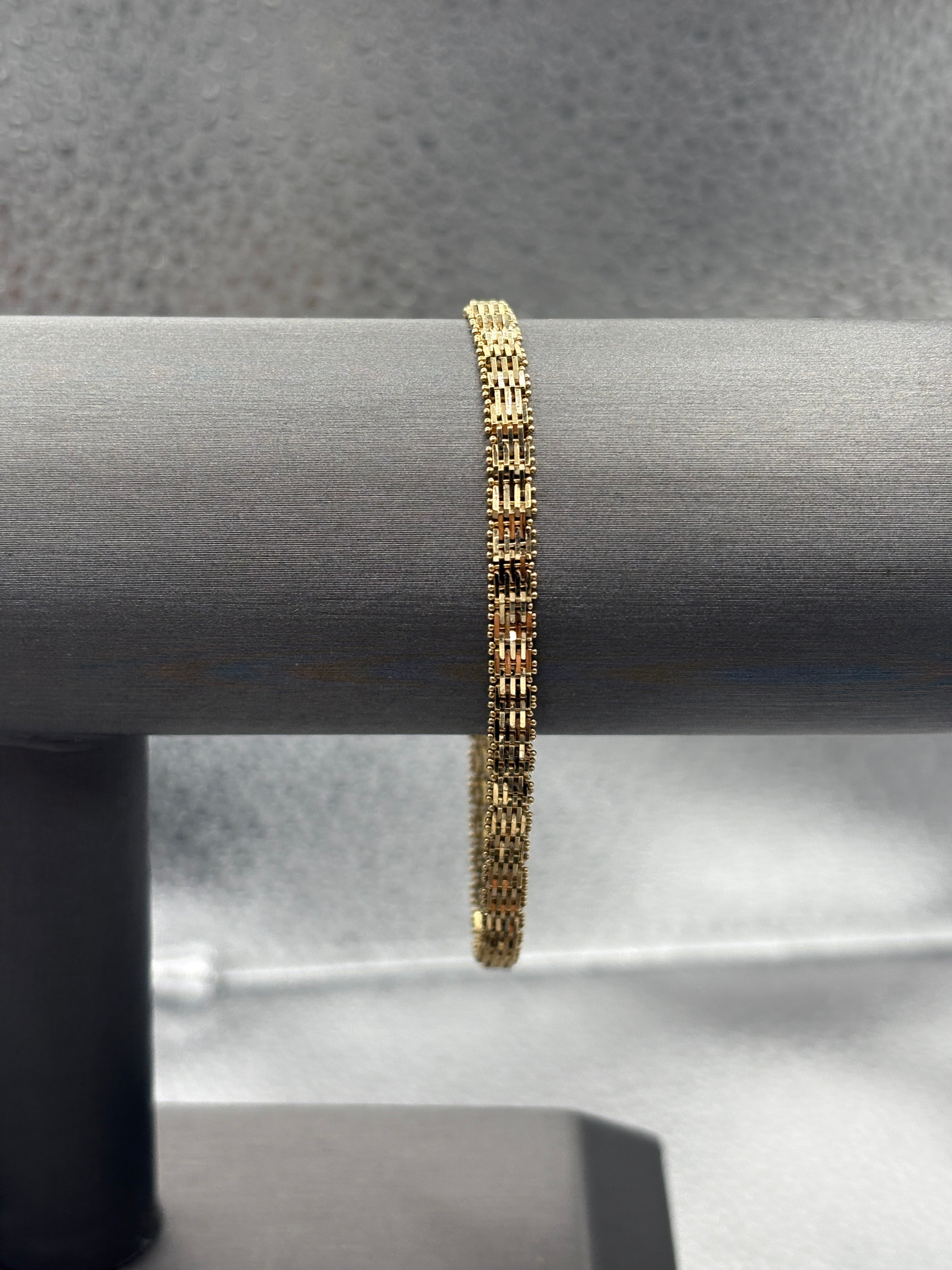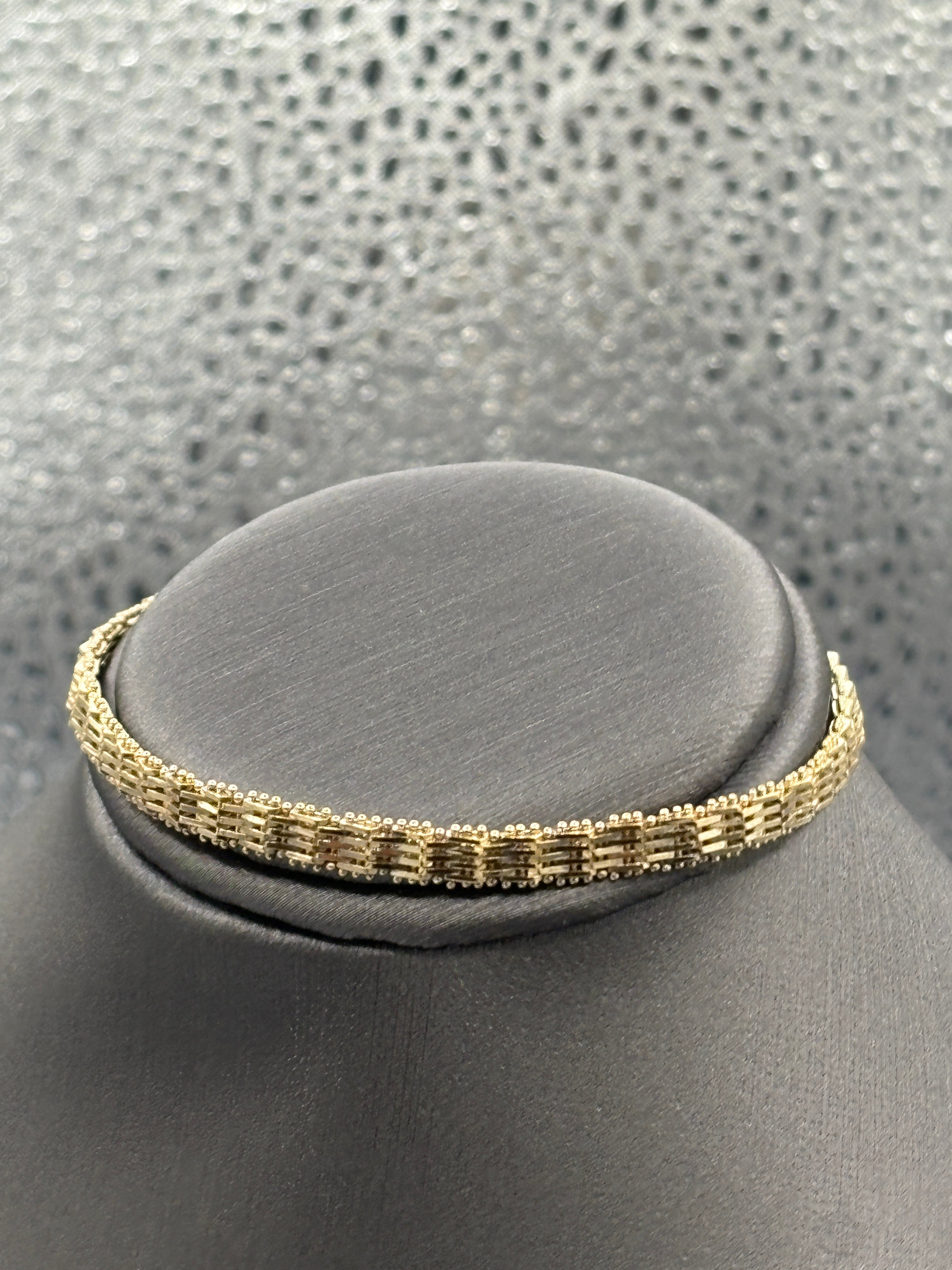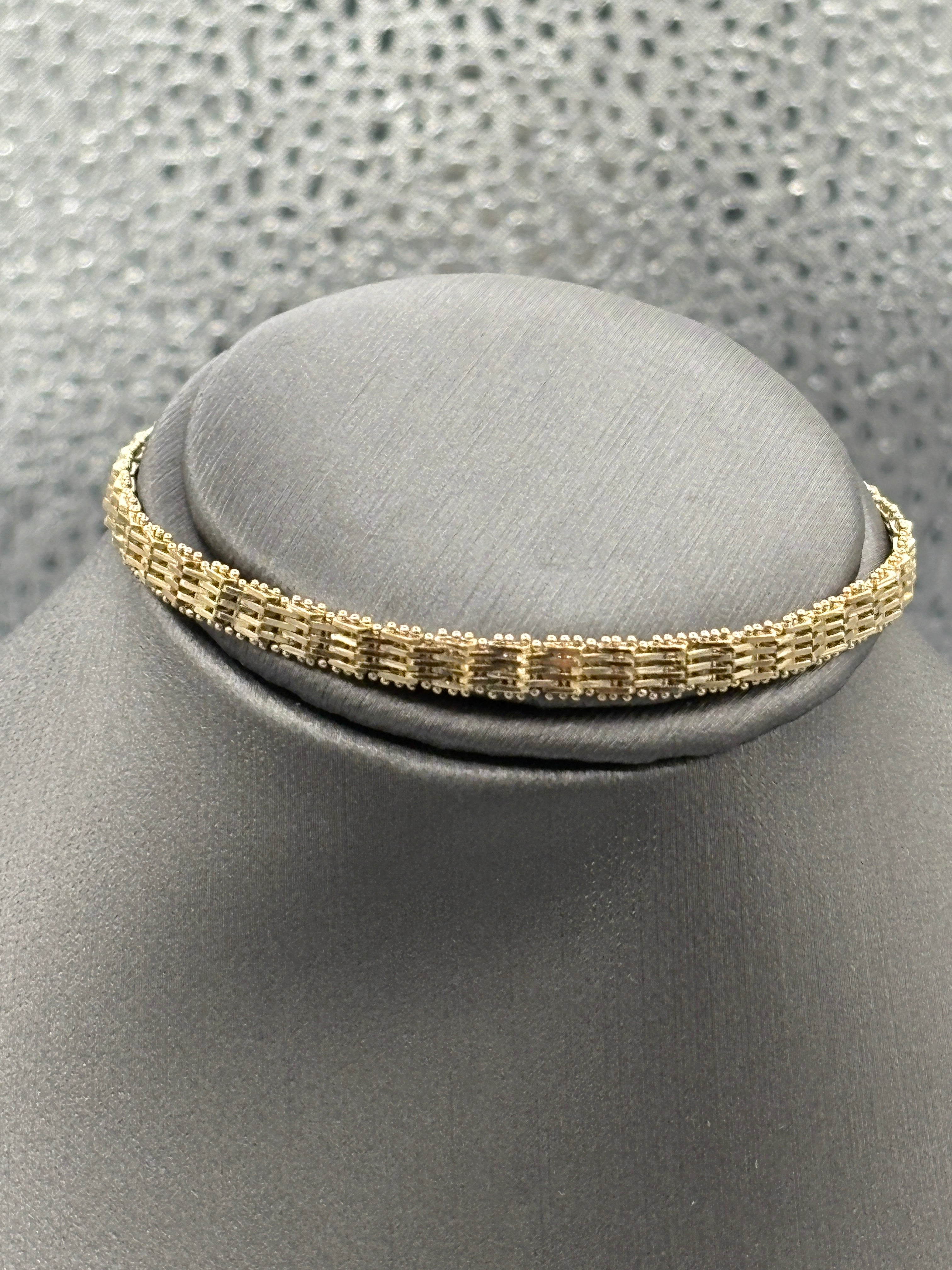This beautiful vintage bracelet was designed, made and imported from Italy. Heavy in weight and made in 14 karat solid yellow gold. The perfect bracelet to wear everyday! Gorgeous on a woman’s wrist.