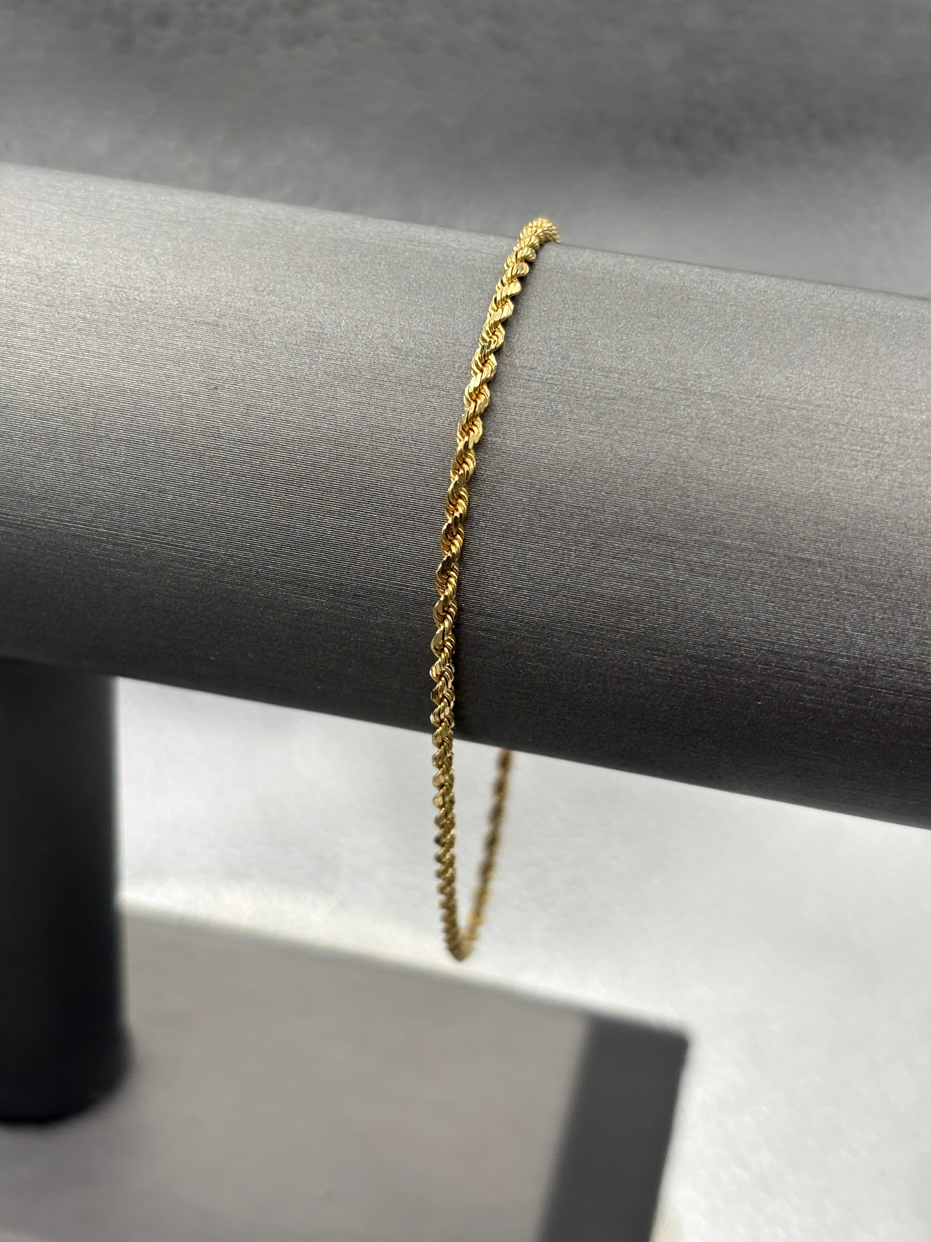 This is a classic solid diamond cut rope chain. Designed, made and imported from Italy. Simple, but still elegant, the di-cut rope bracelet is always in style and looks great on the woman wearing it. Secured with a box lock for safety!