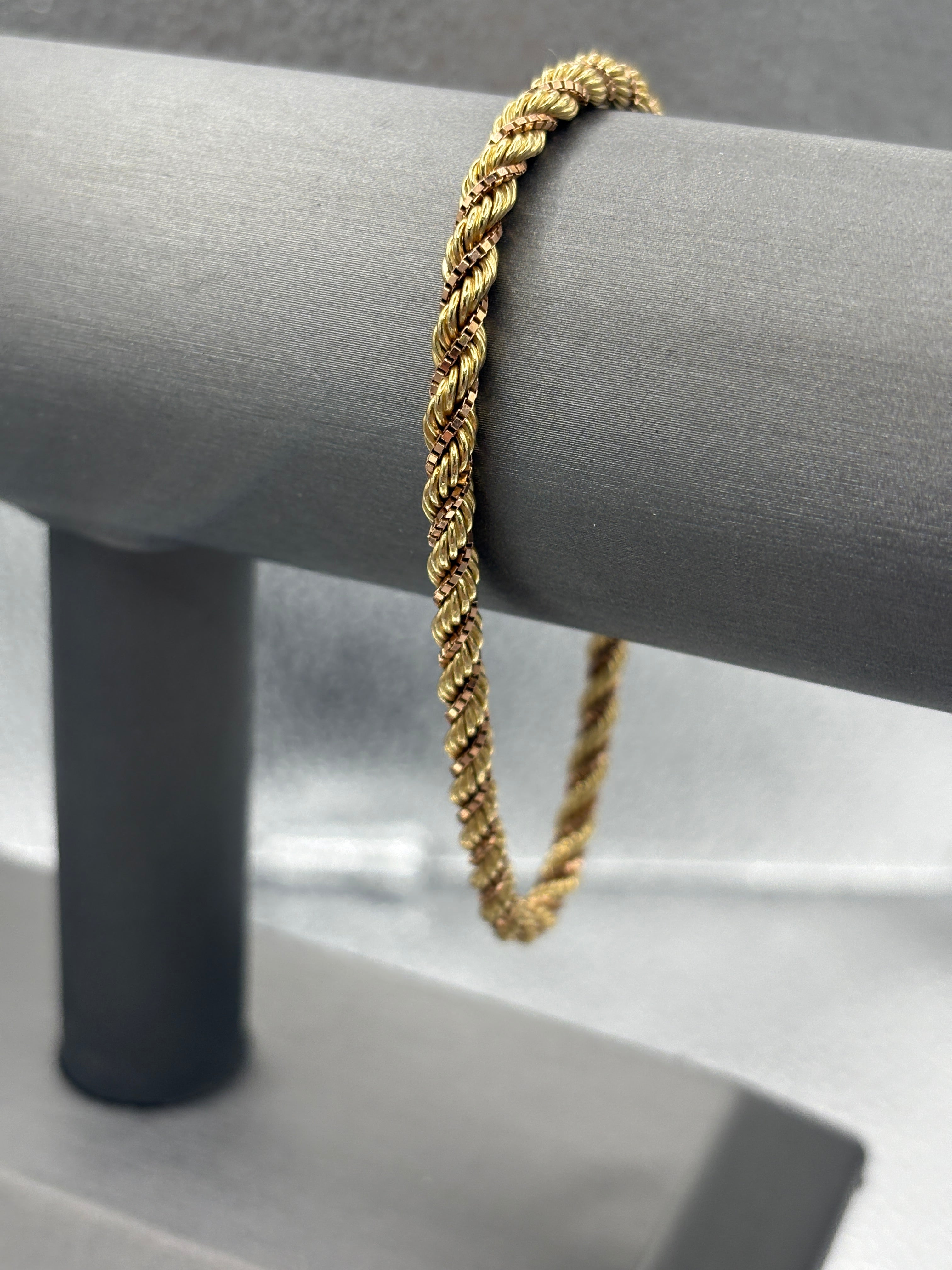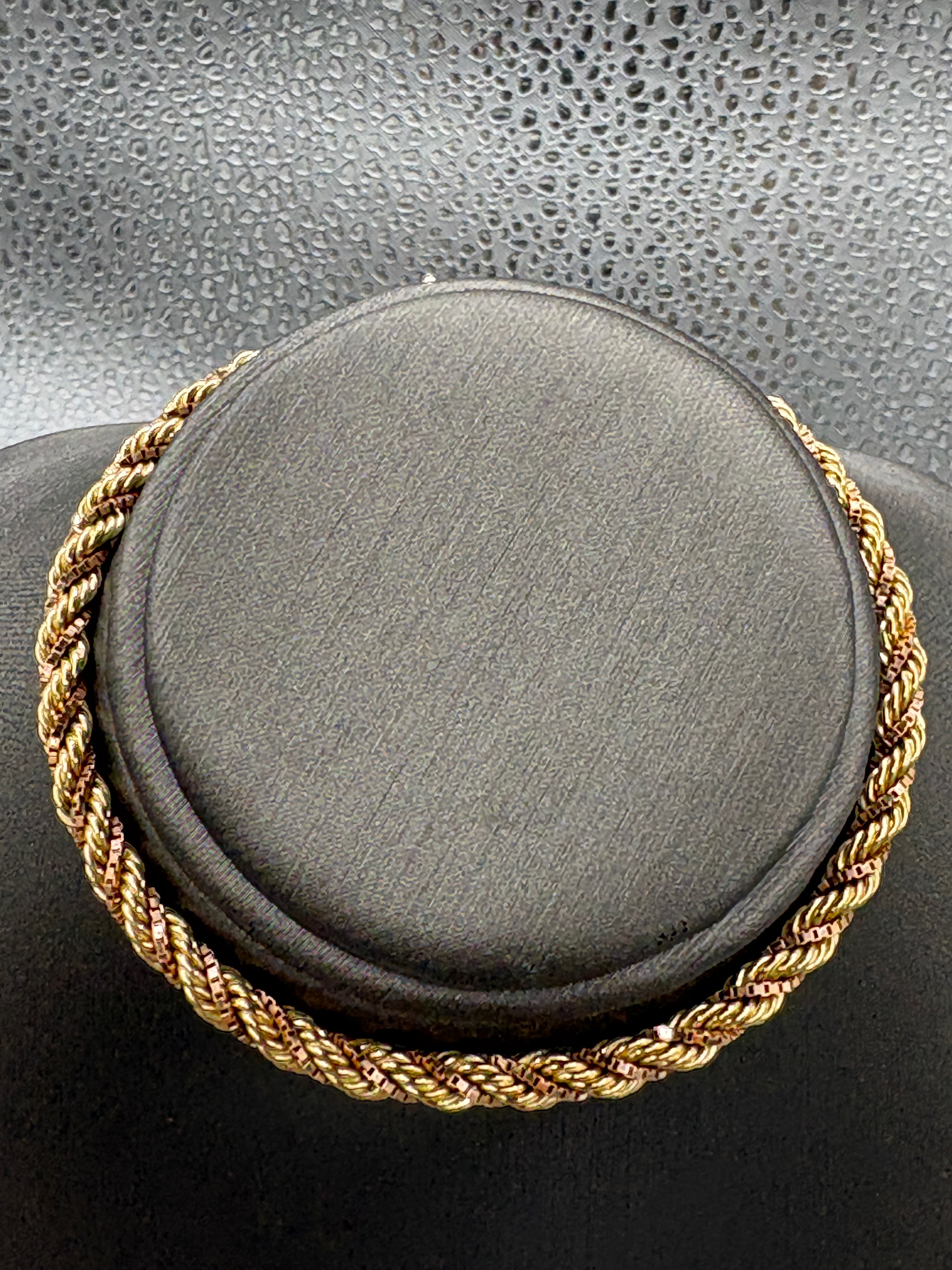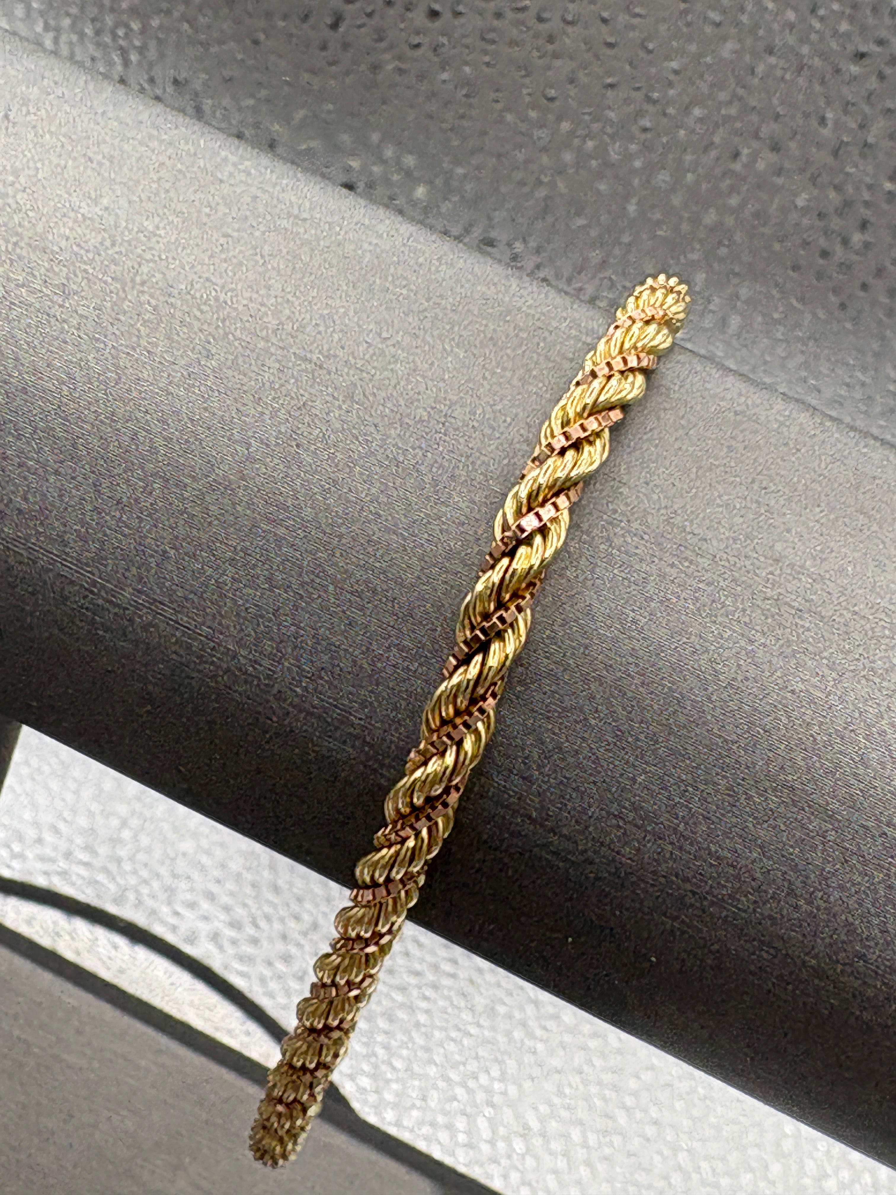 14 Karat Yellow Gold Ladies Vintage Rope & Box Link Bracelet
