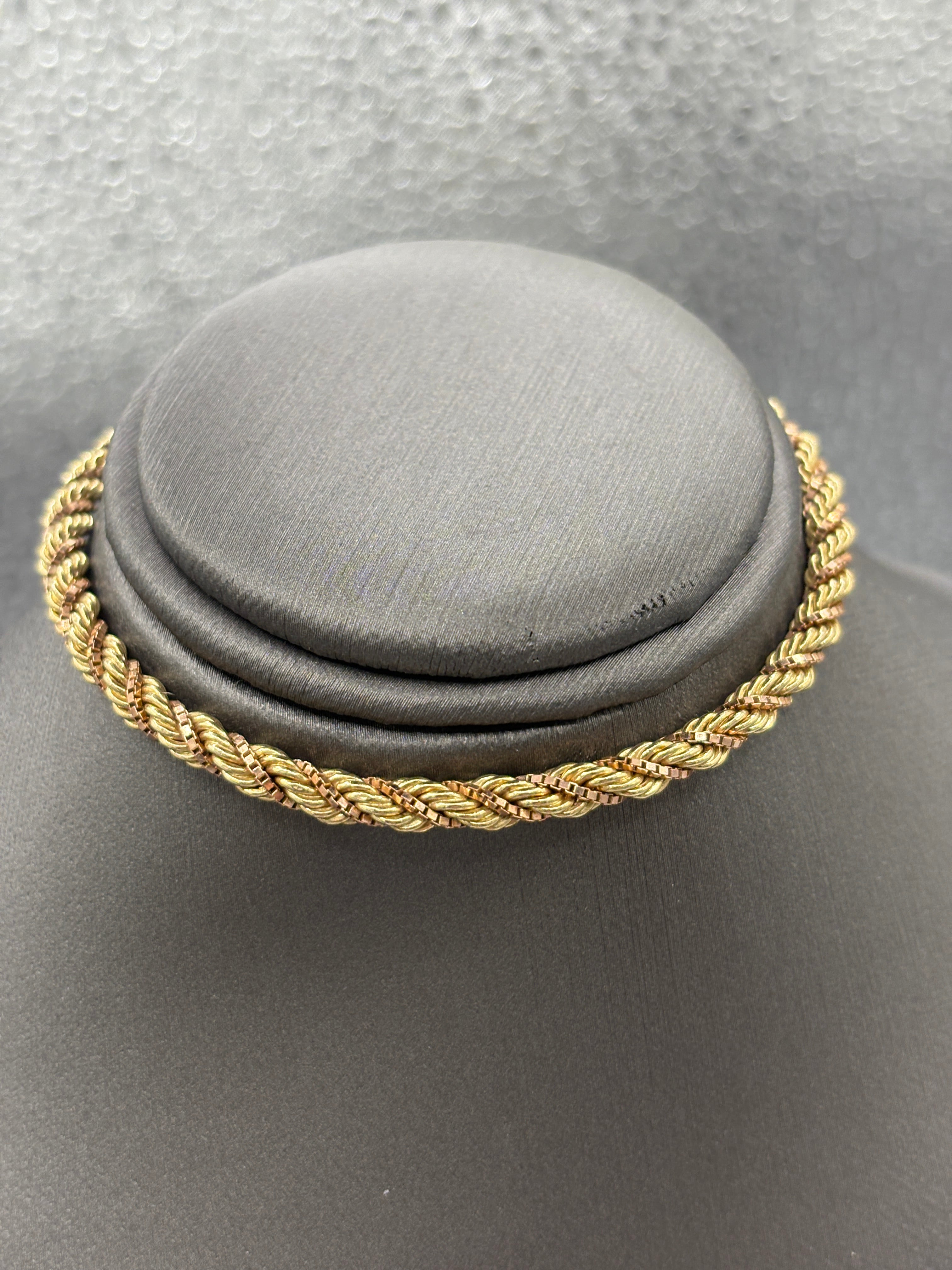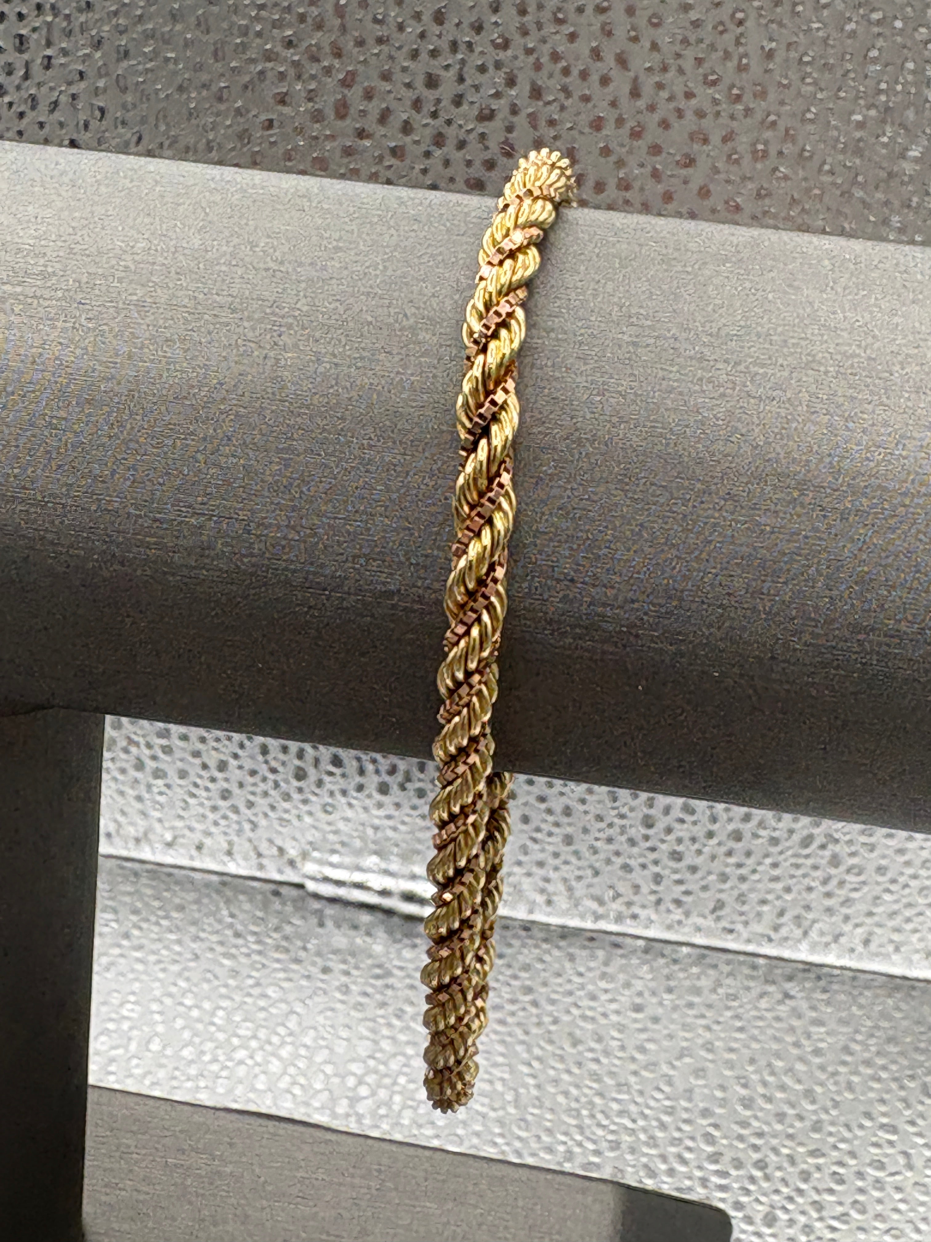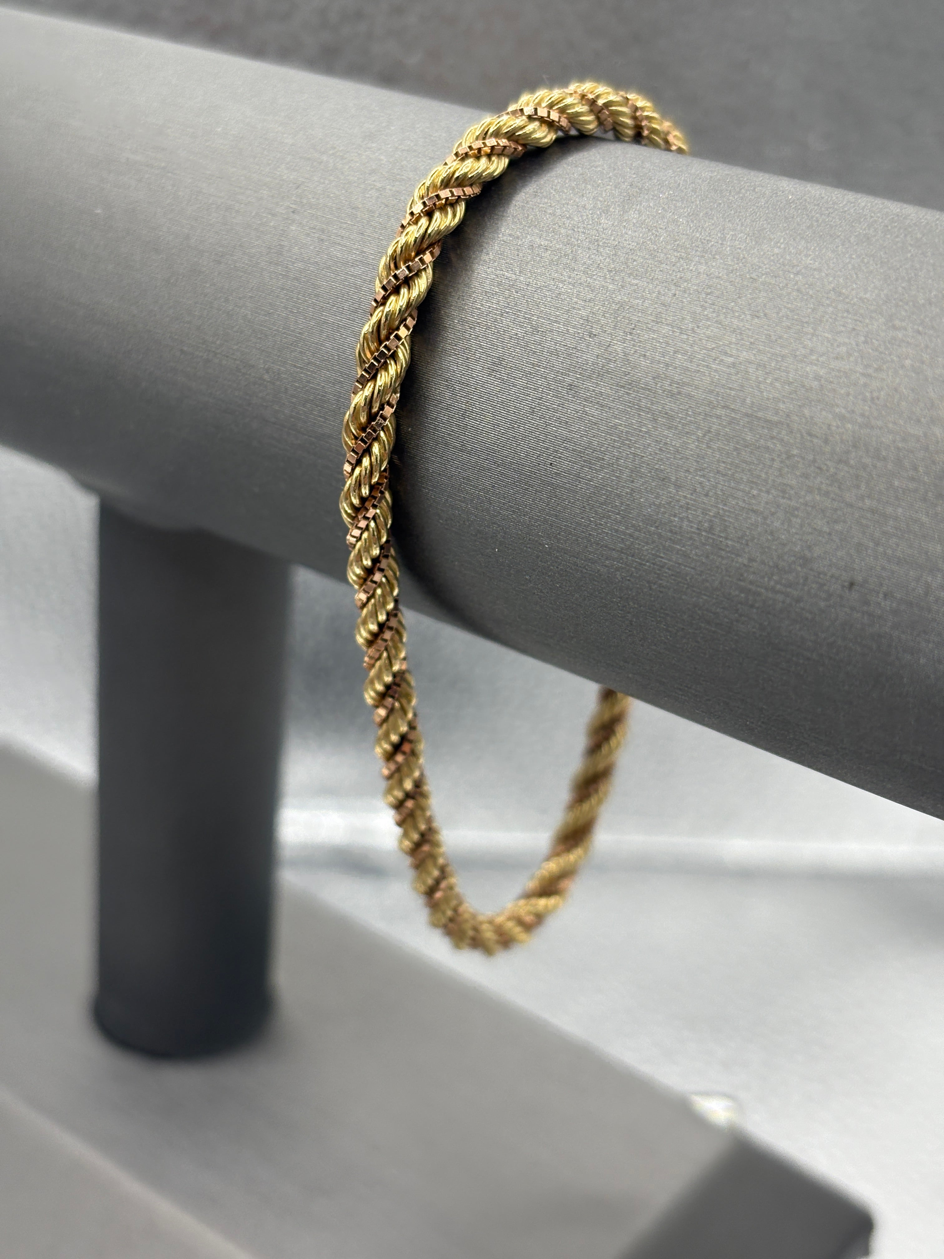 14 Karat Yellow Gold Ladies Vintage Rope & Box Link Bracelet