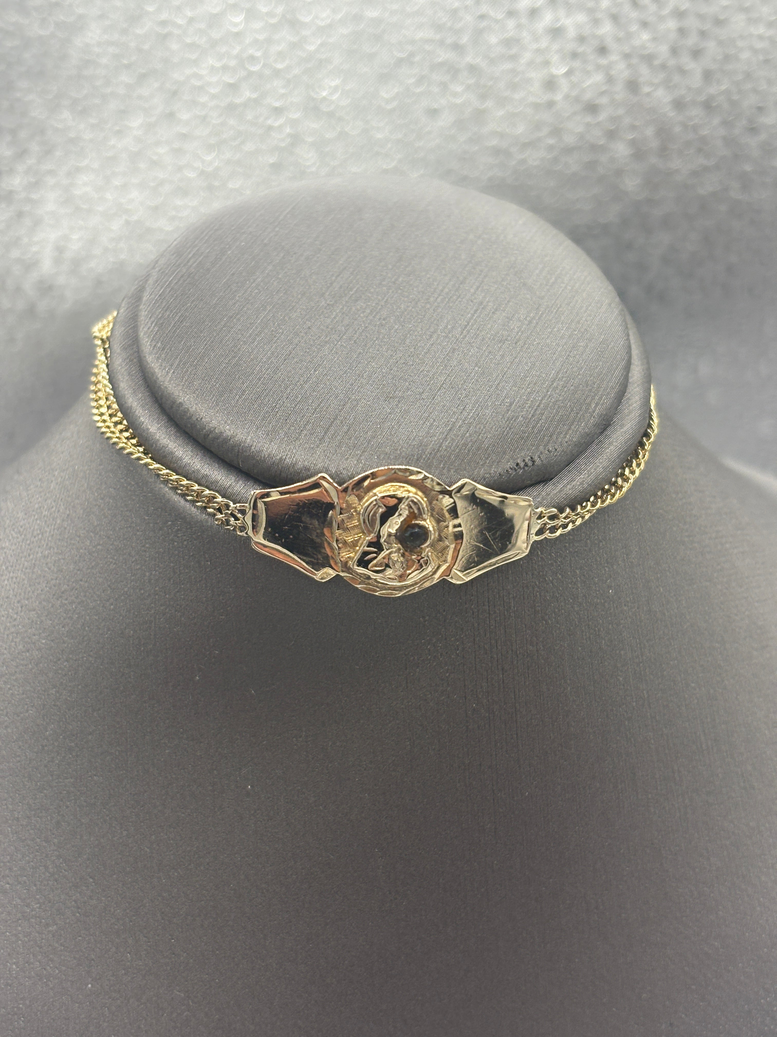 14 Karat Yellow Gold Ladies Virgin Mary Religious Bracelet