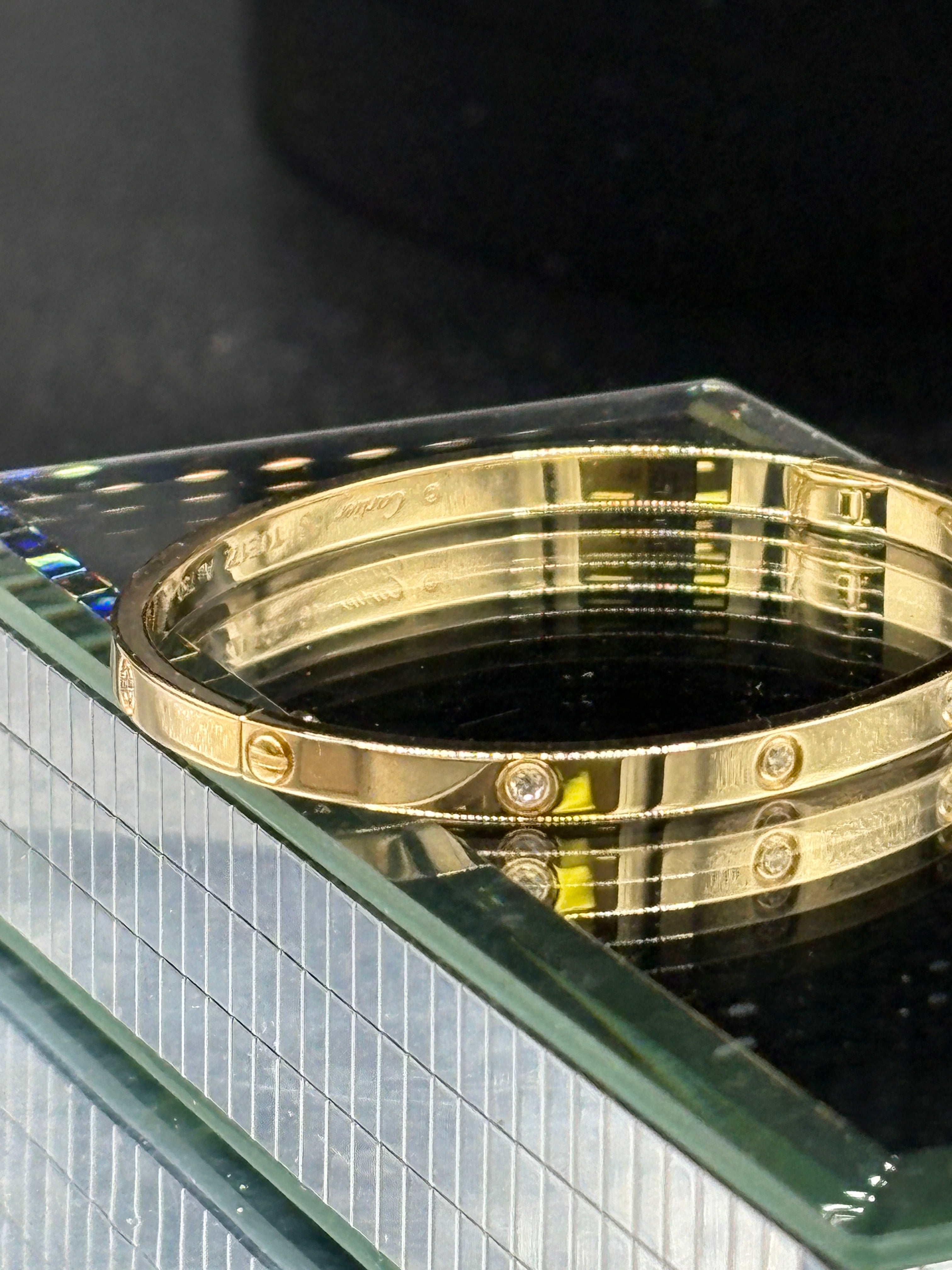Cartier Vintage Love Bracelet 18 Karat Y/G Full Diamond Bracelet 16