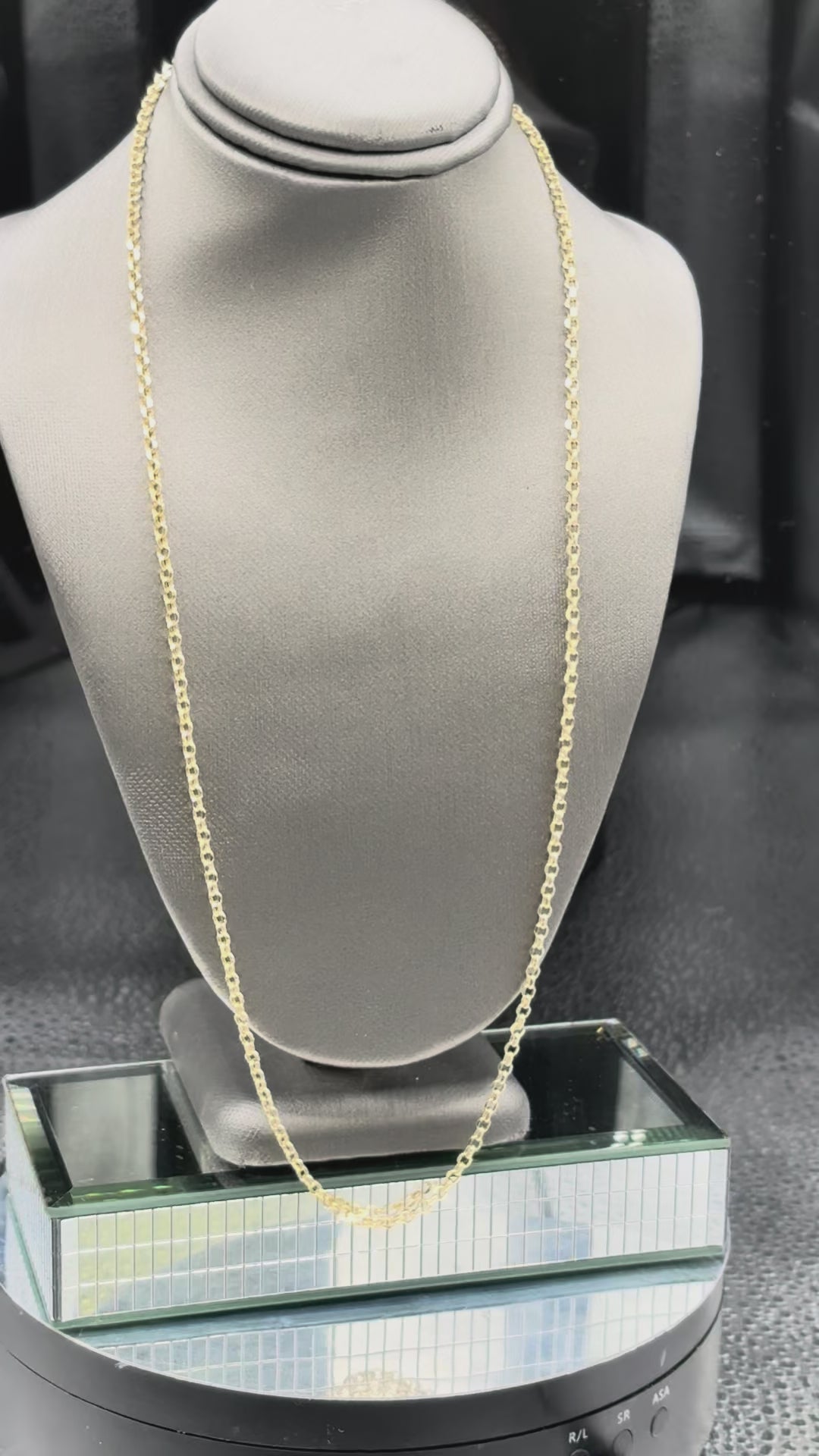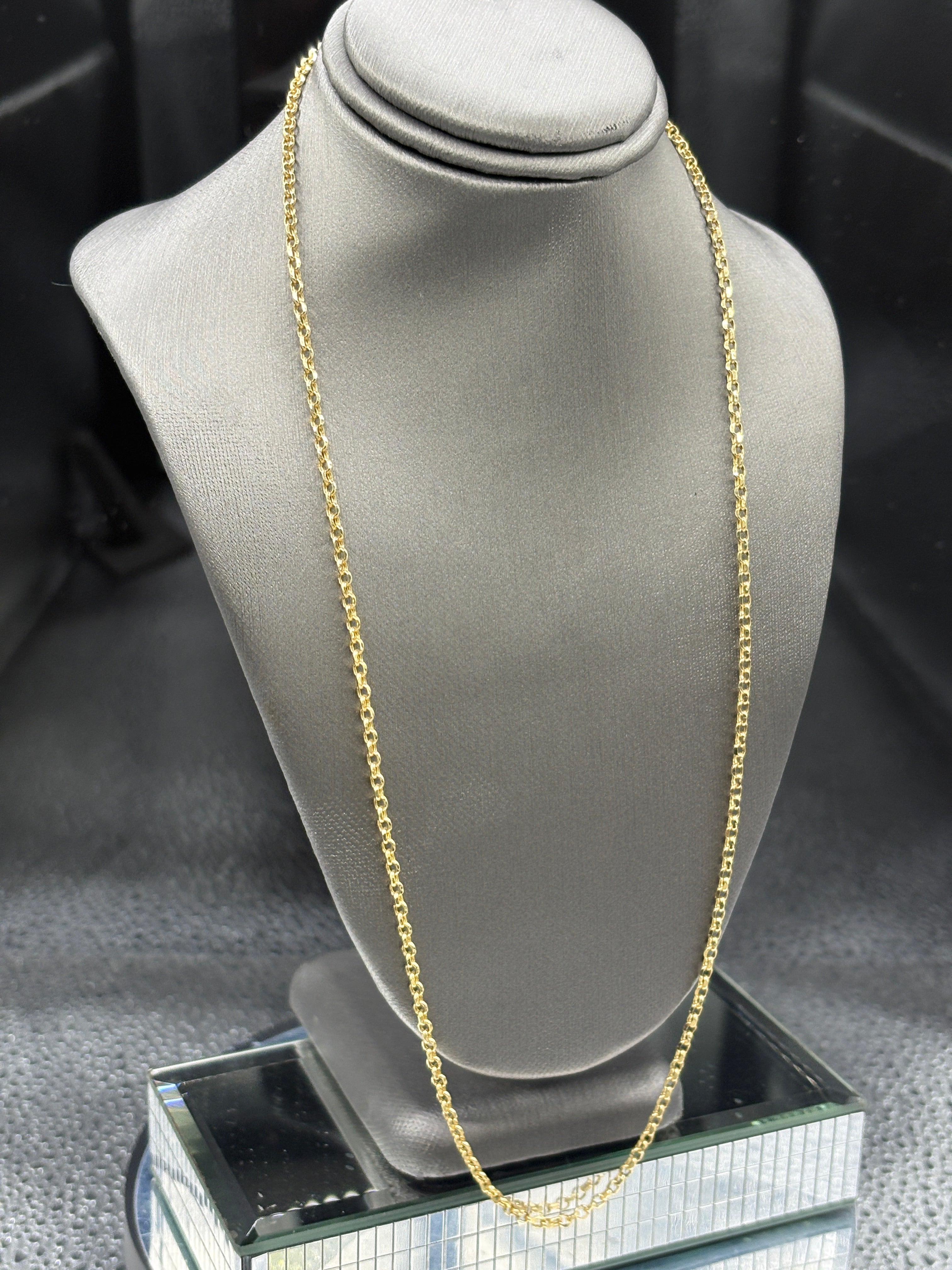 A classic round link chain designed and made in 14 karat solid yellow gold.  A beautiful chain for a man or woman!  Perfect to wear everyday.  Looks great on!