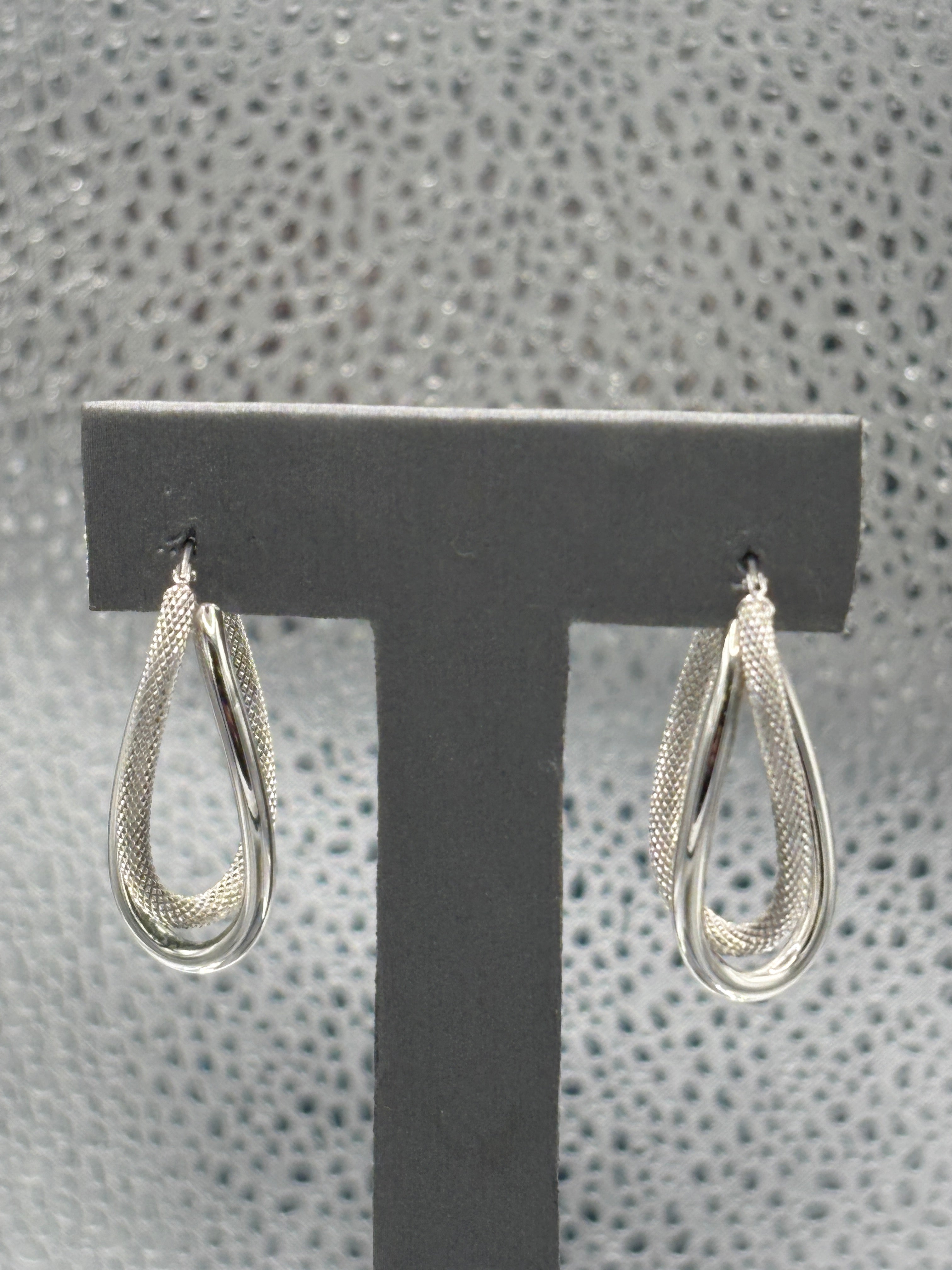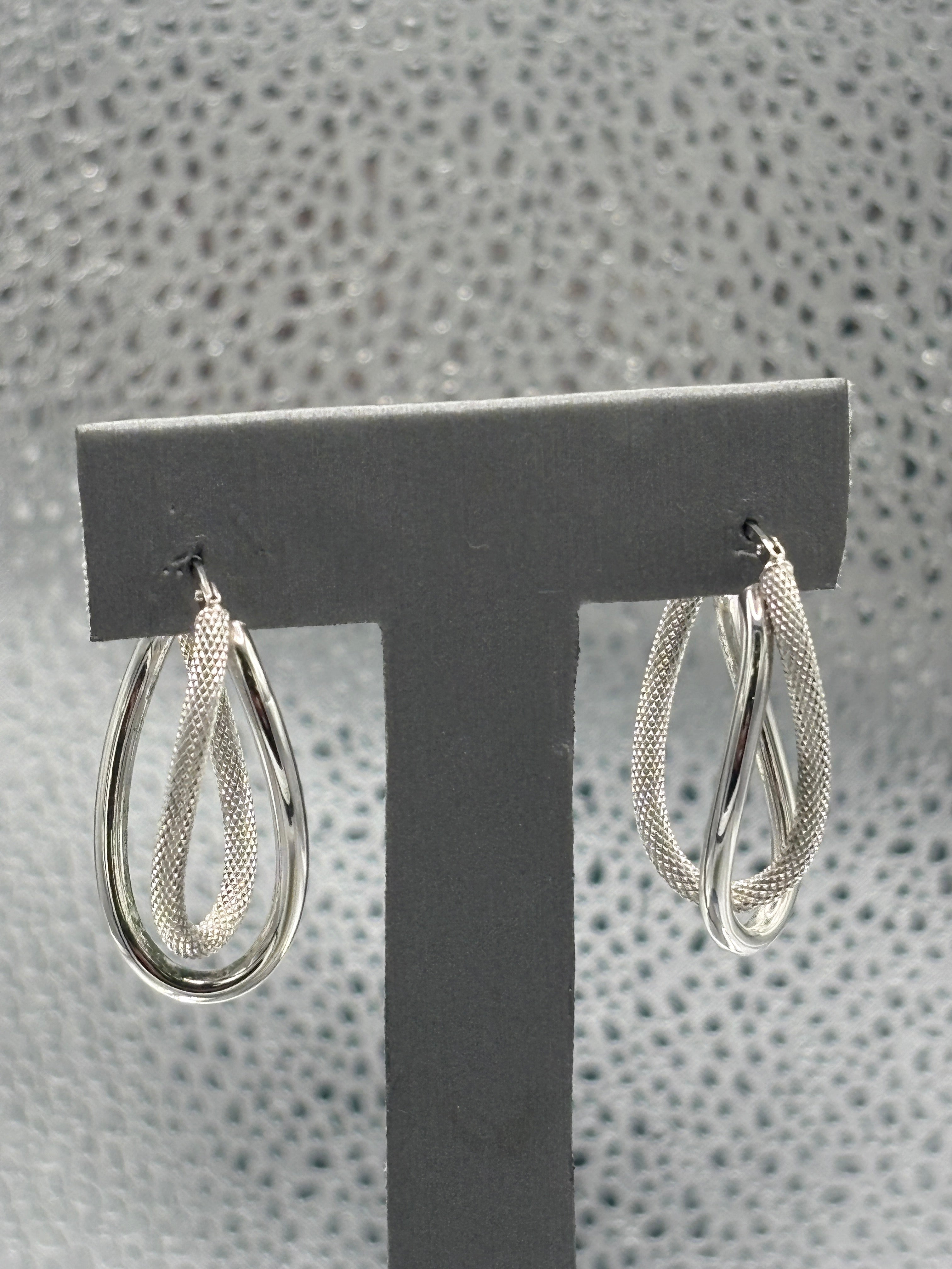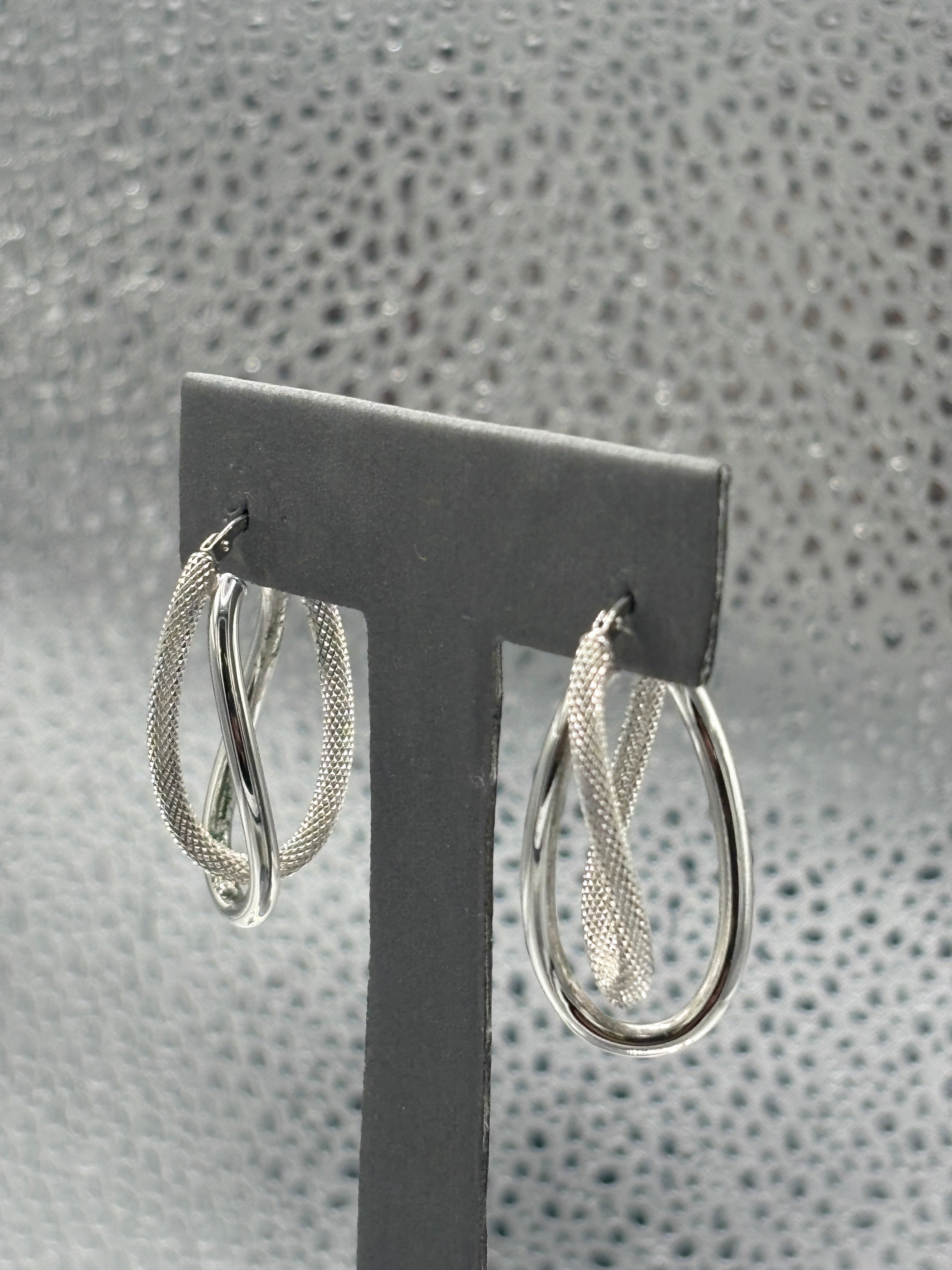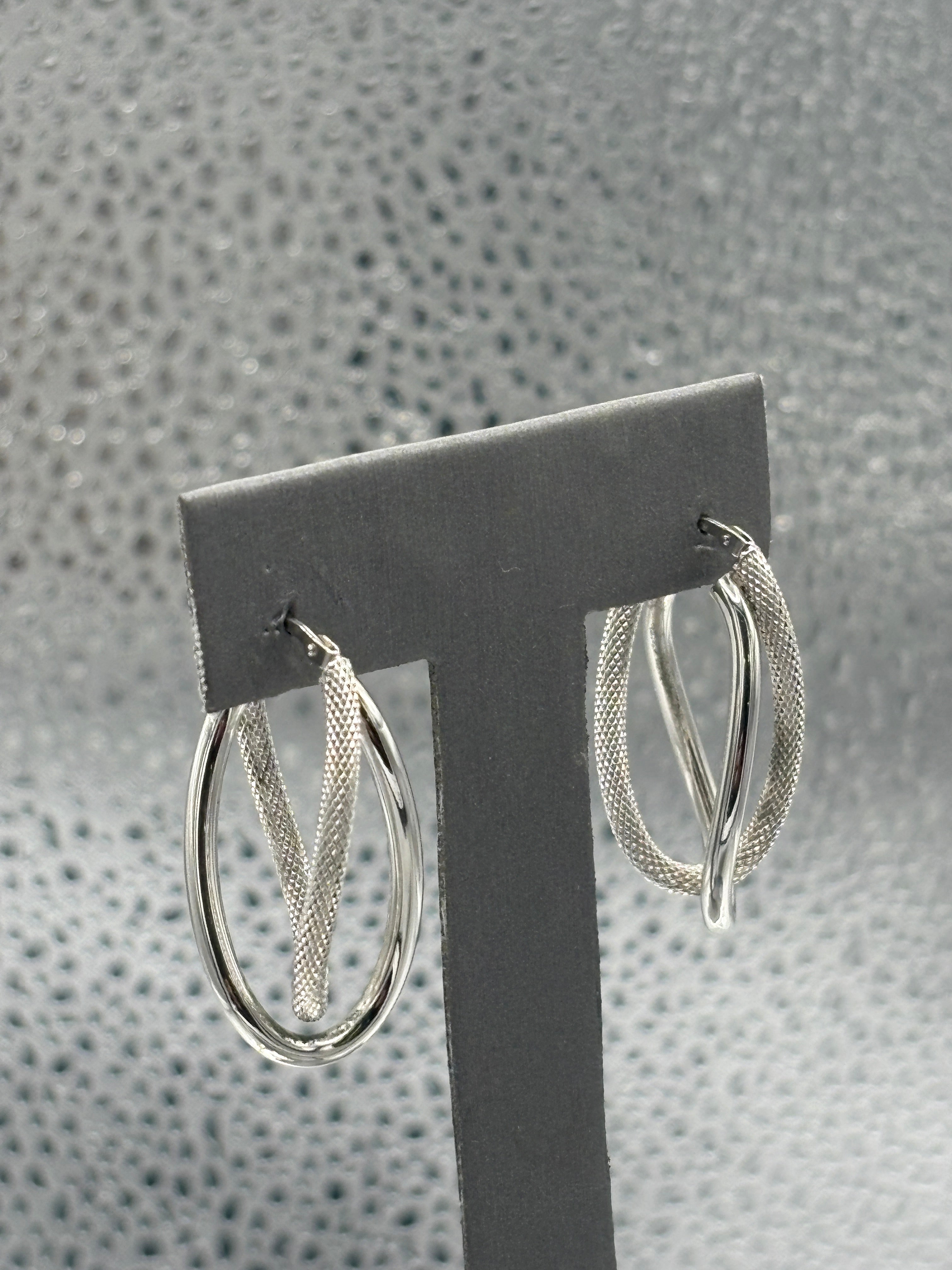 14 Karat White Gold Ladies Italian Interloop textured Hoop Earrings