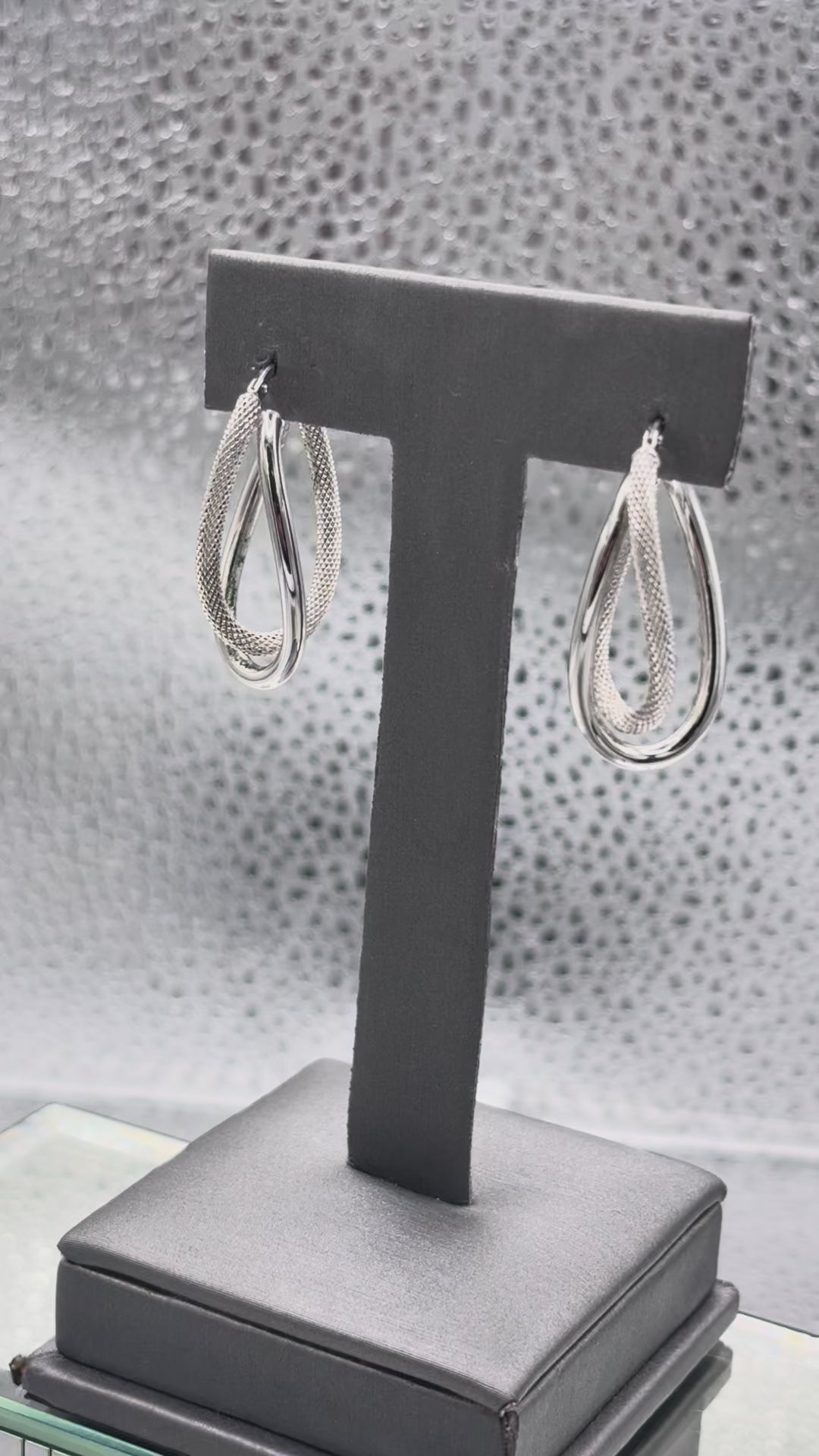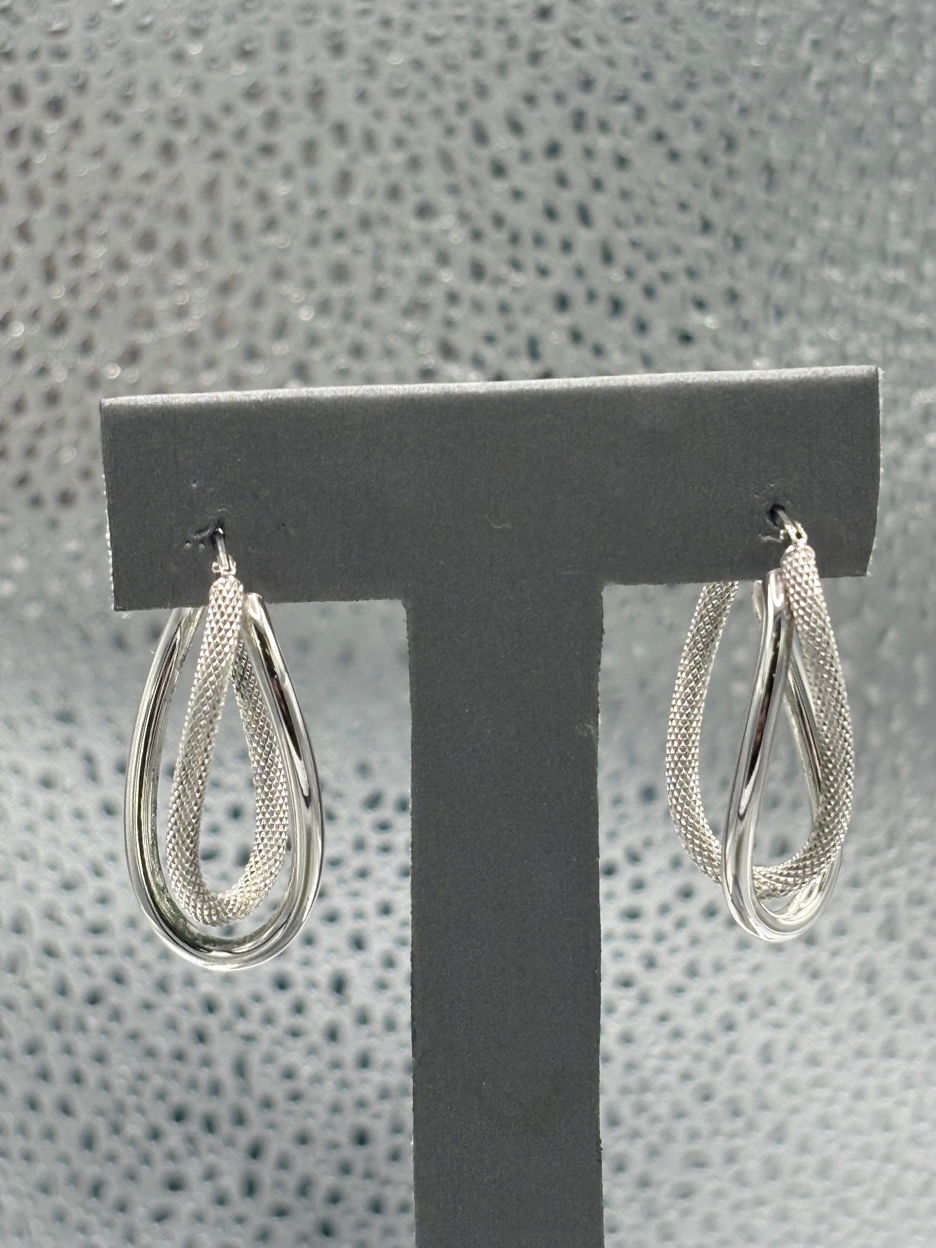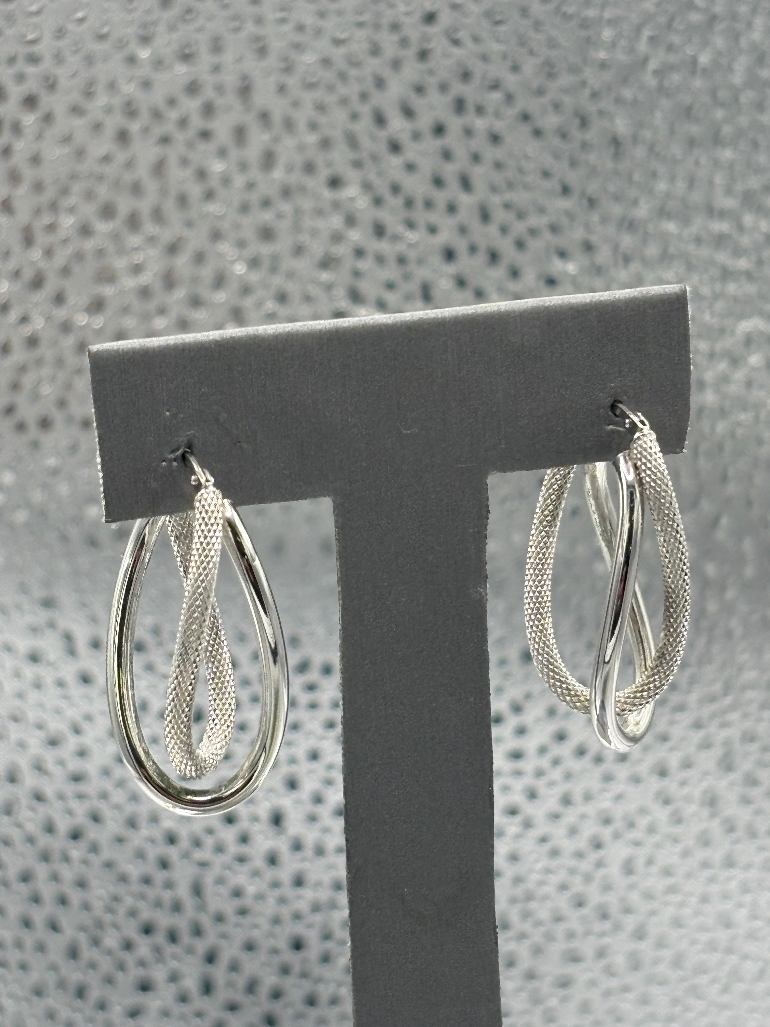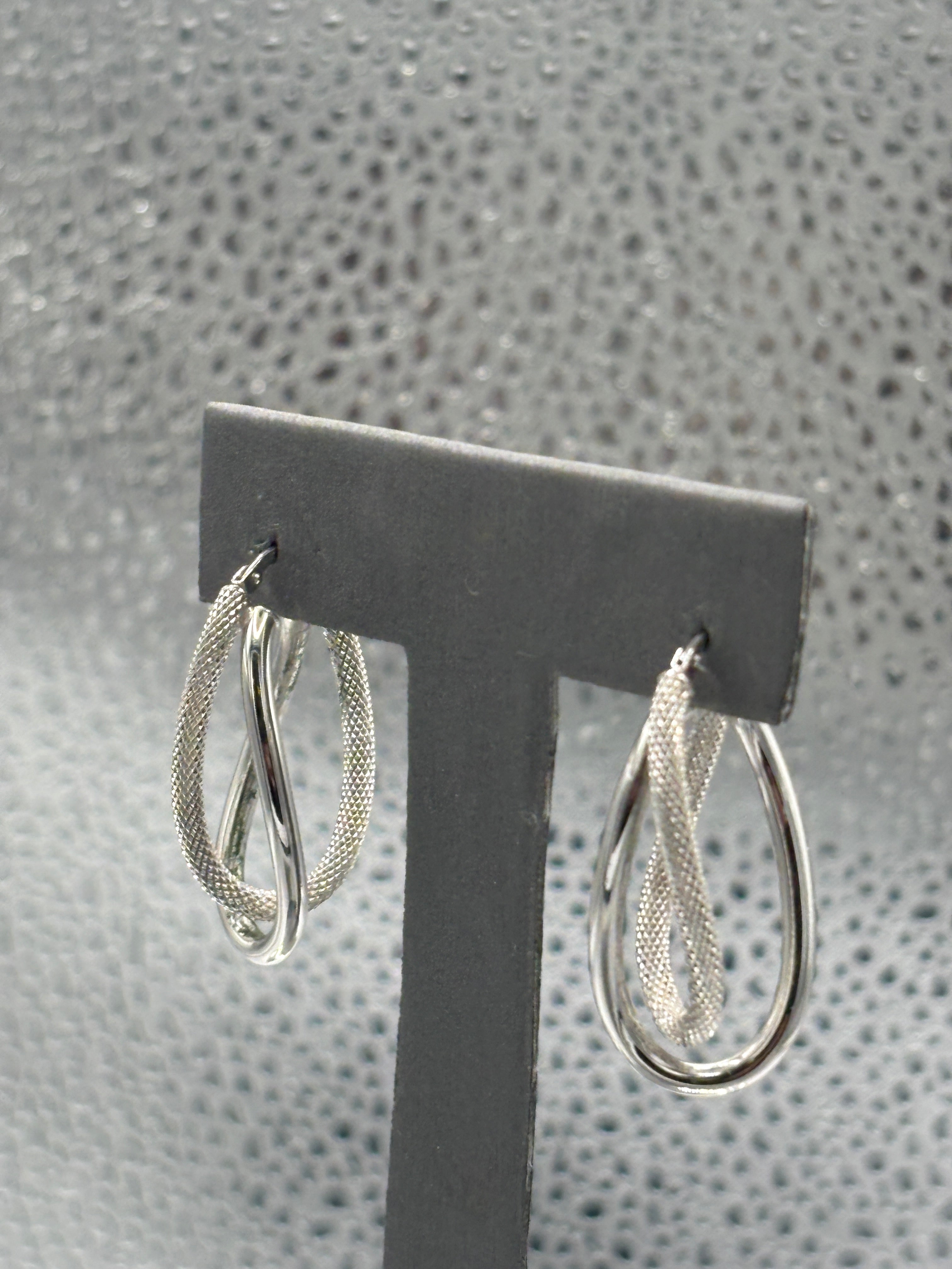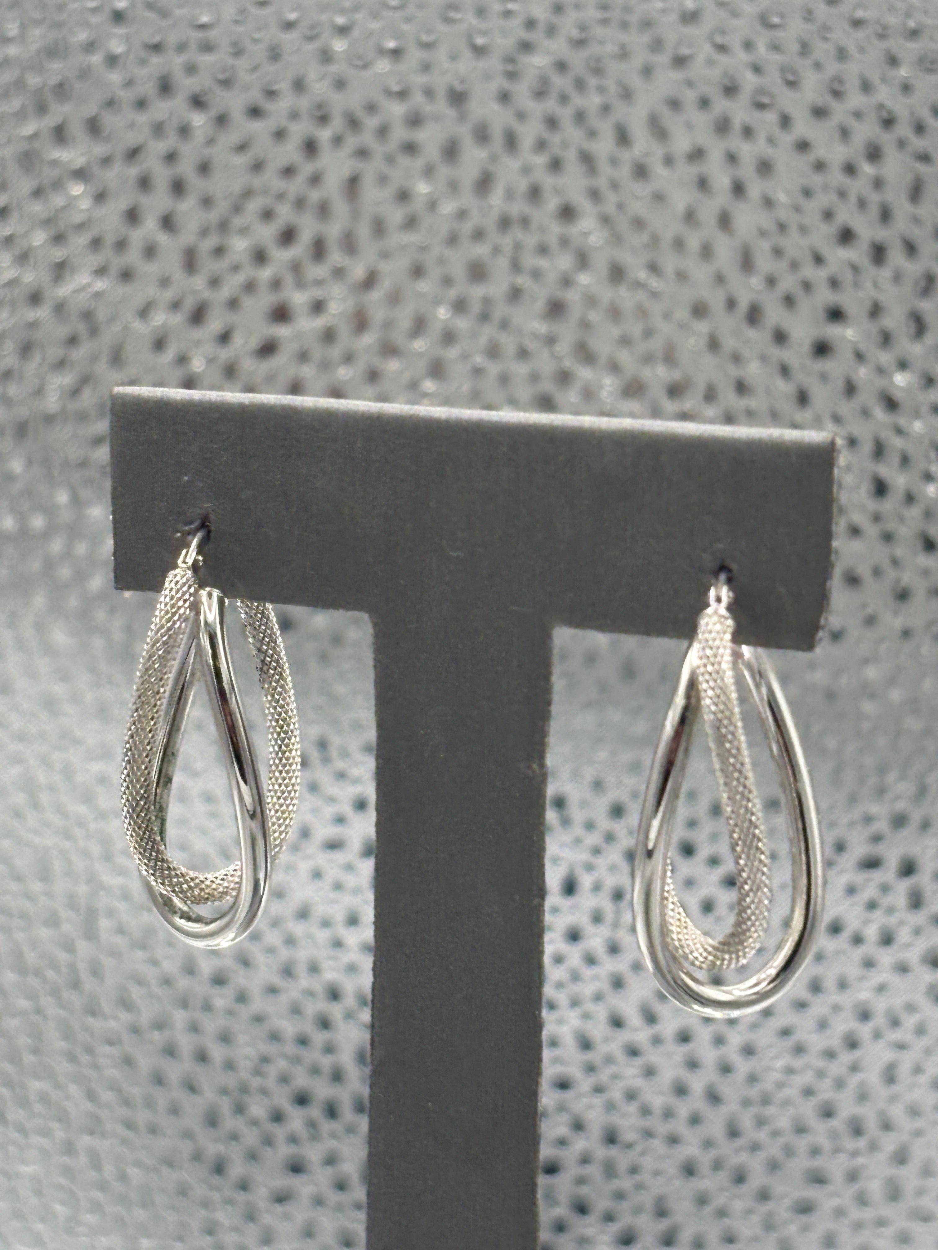 14 Karat White Gold Ladies Italian Interloop textured Hoop Earrings