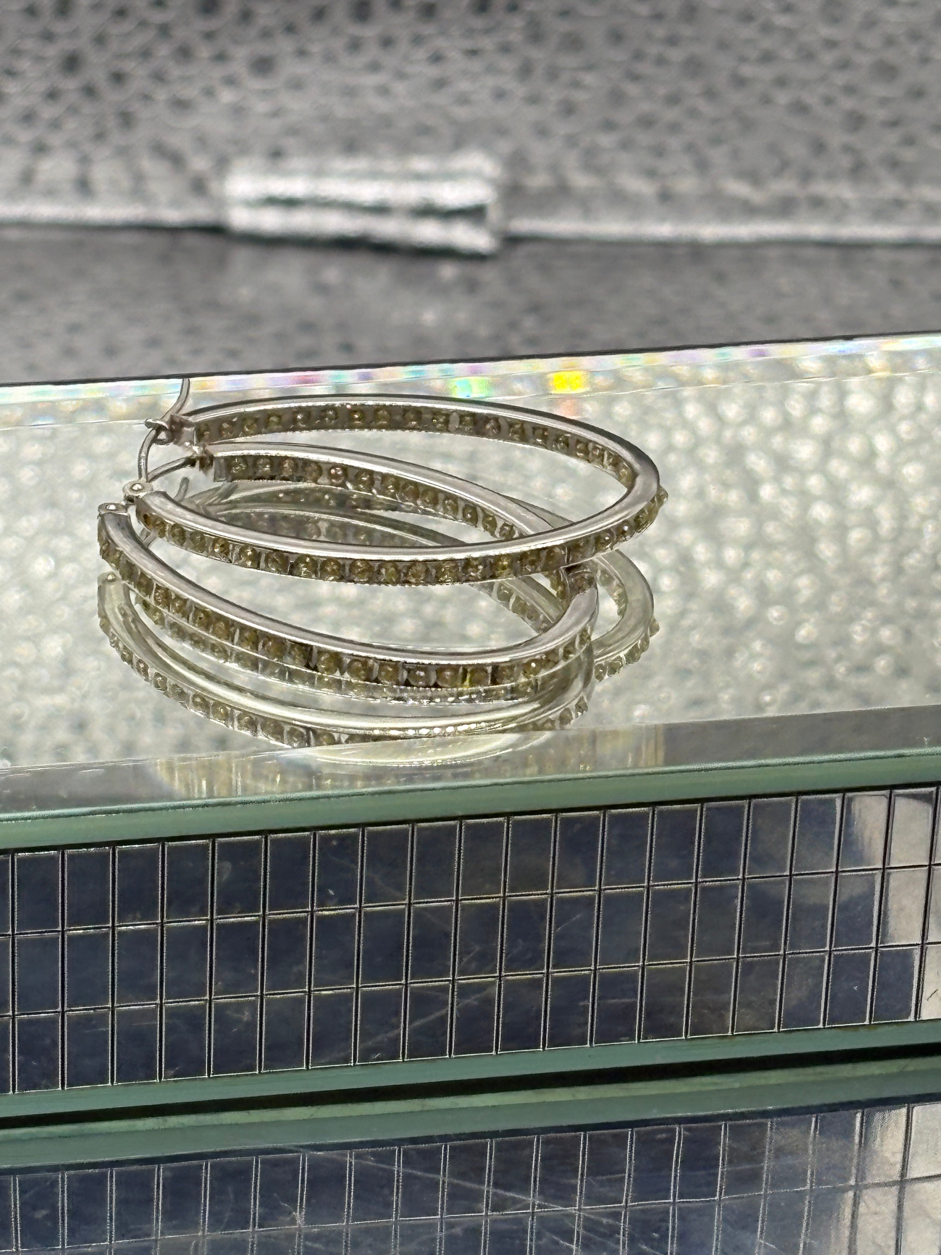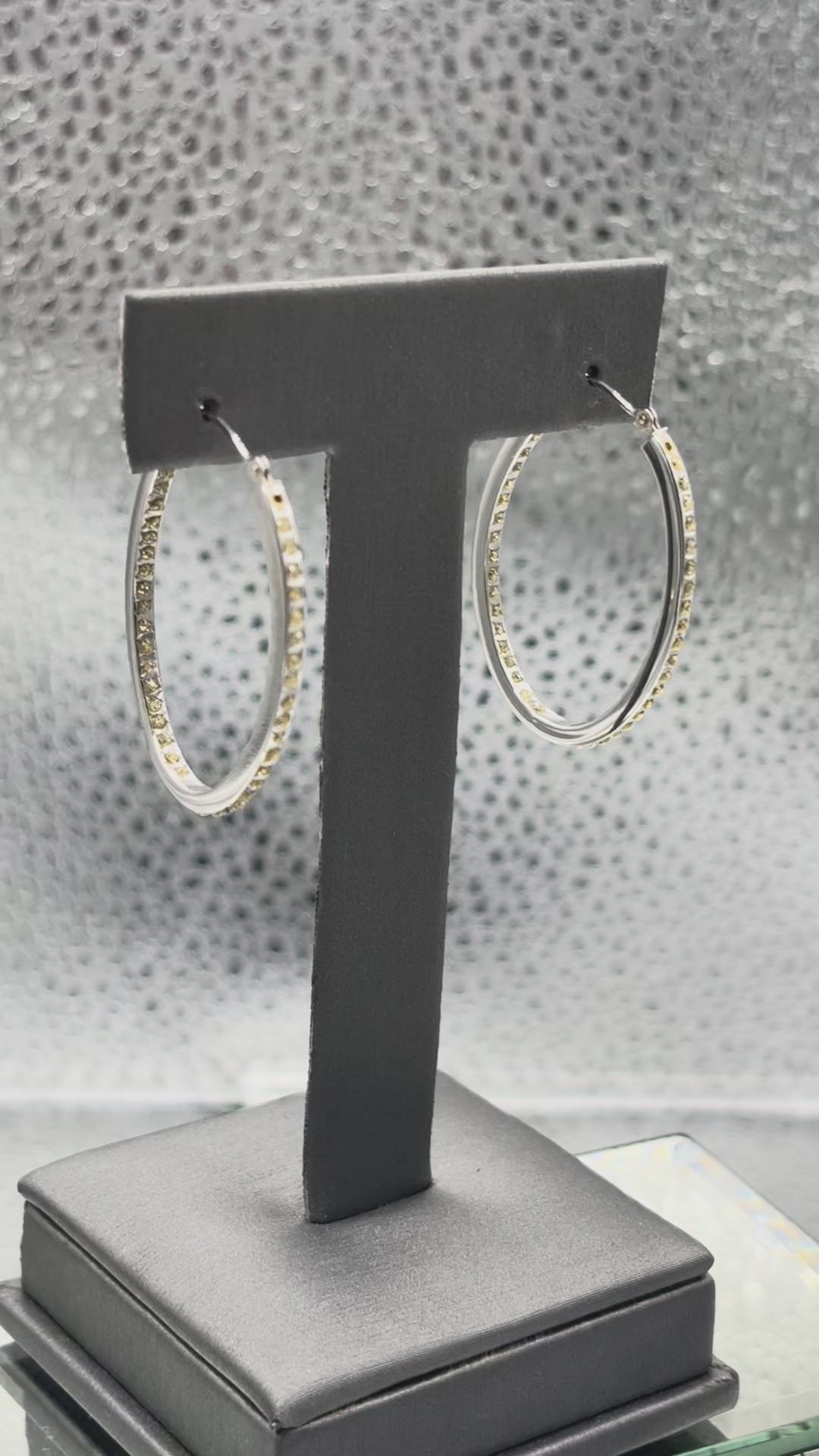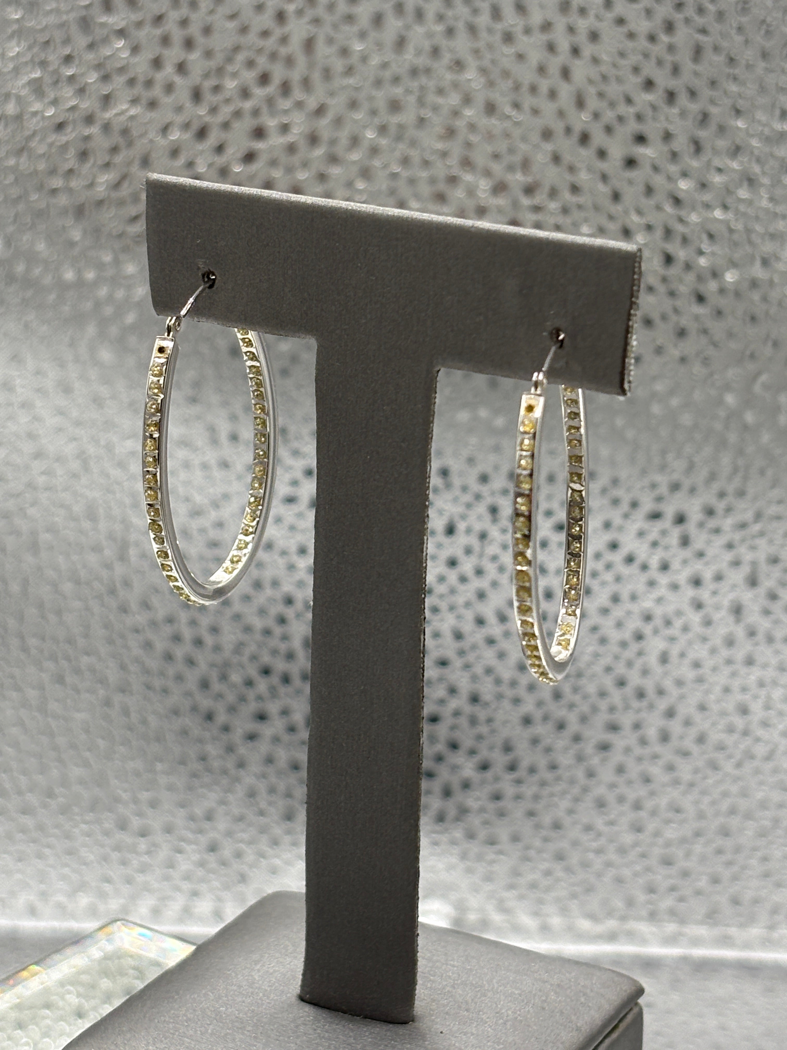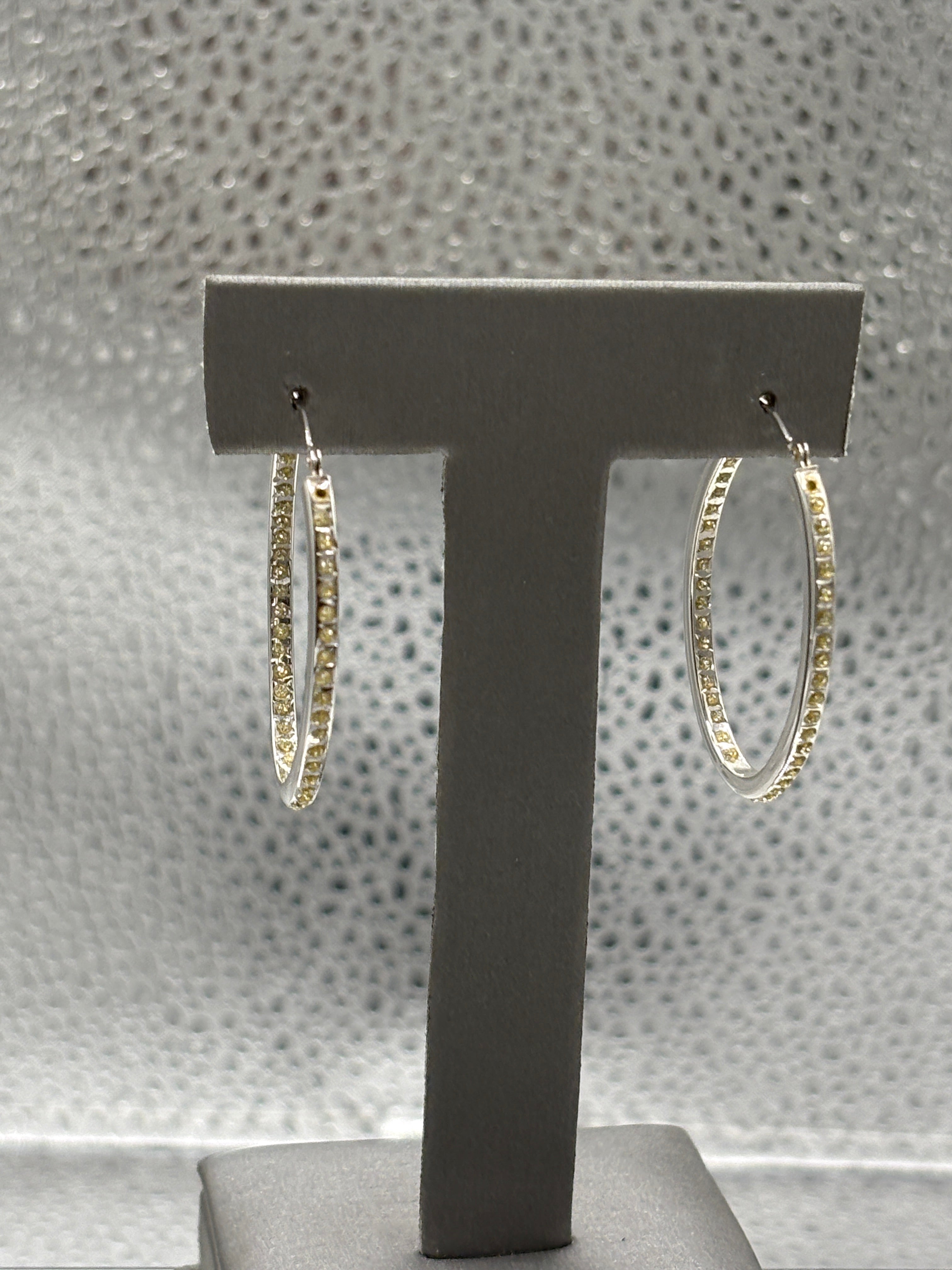 14 Karat White Gold Ladies Oval Inside/Out Diamond Hoop Earrings
