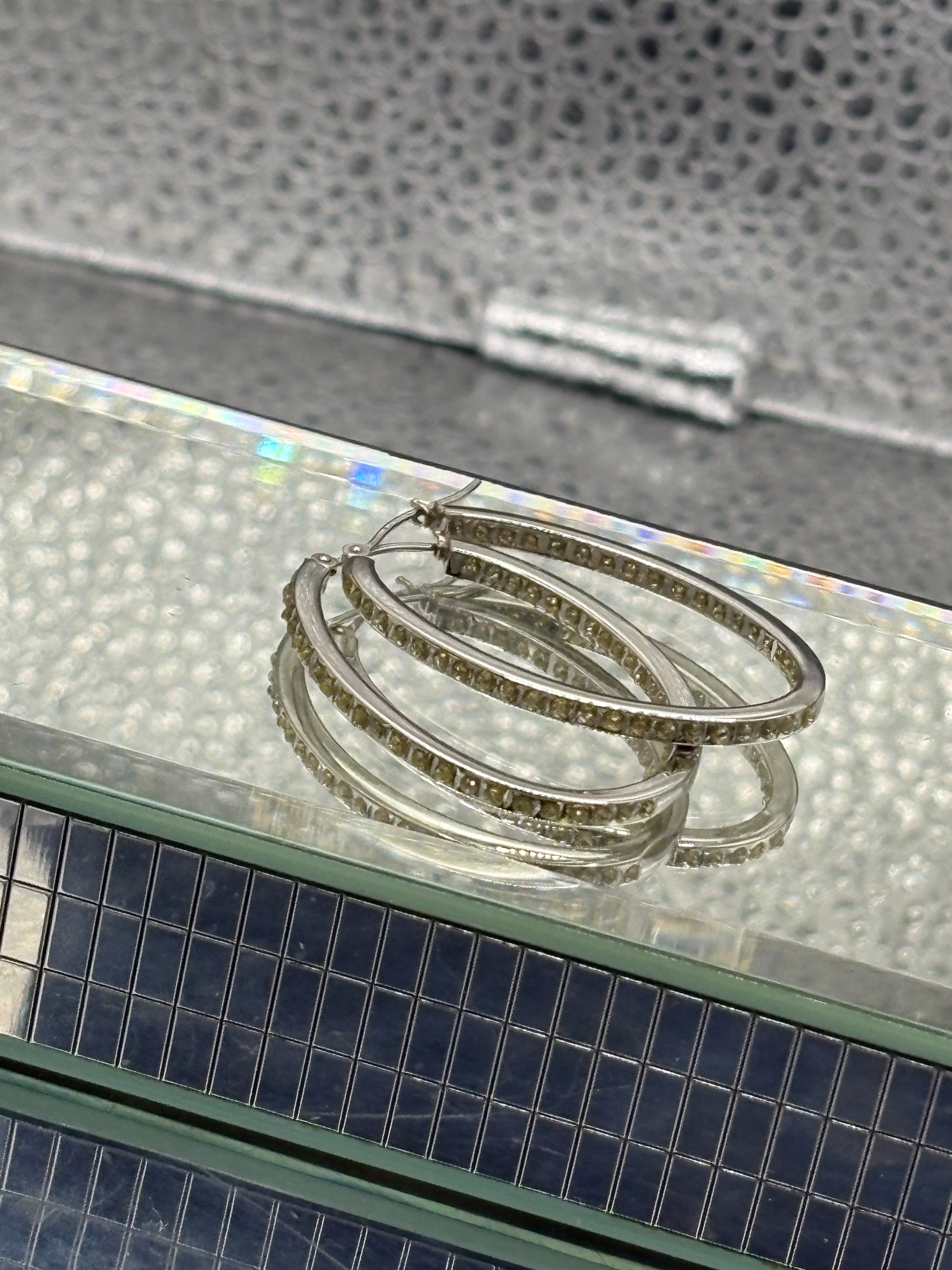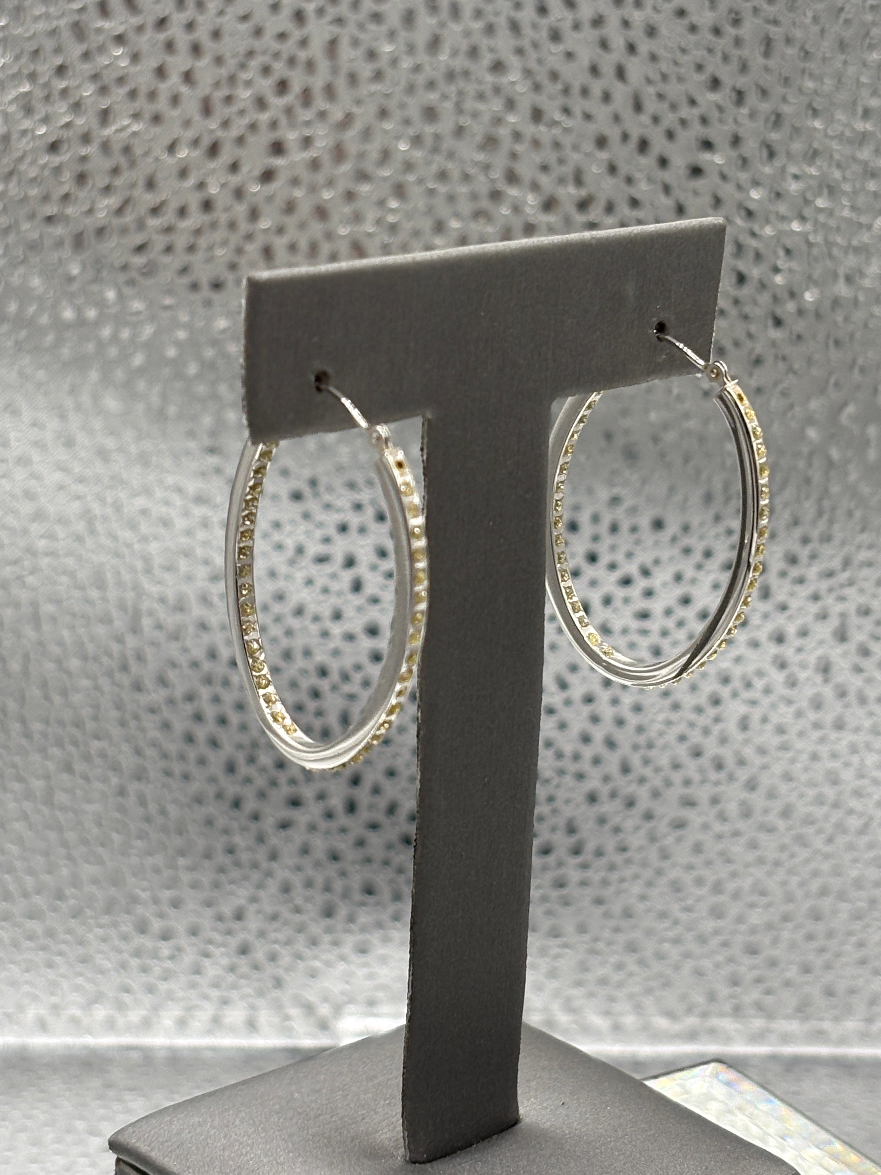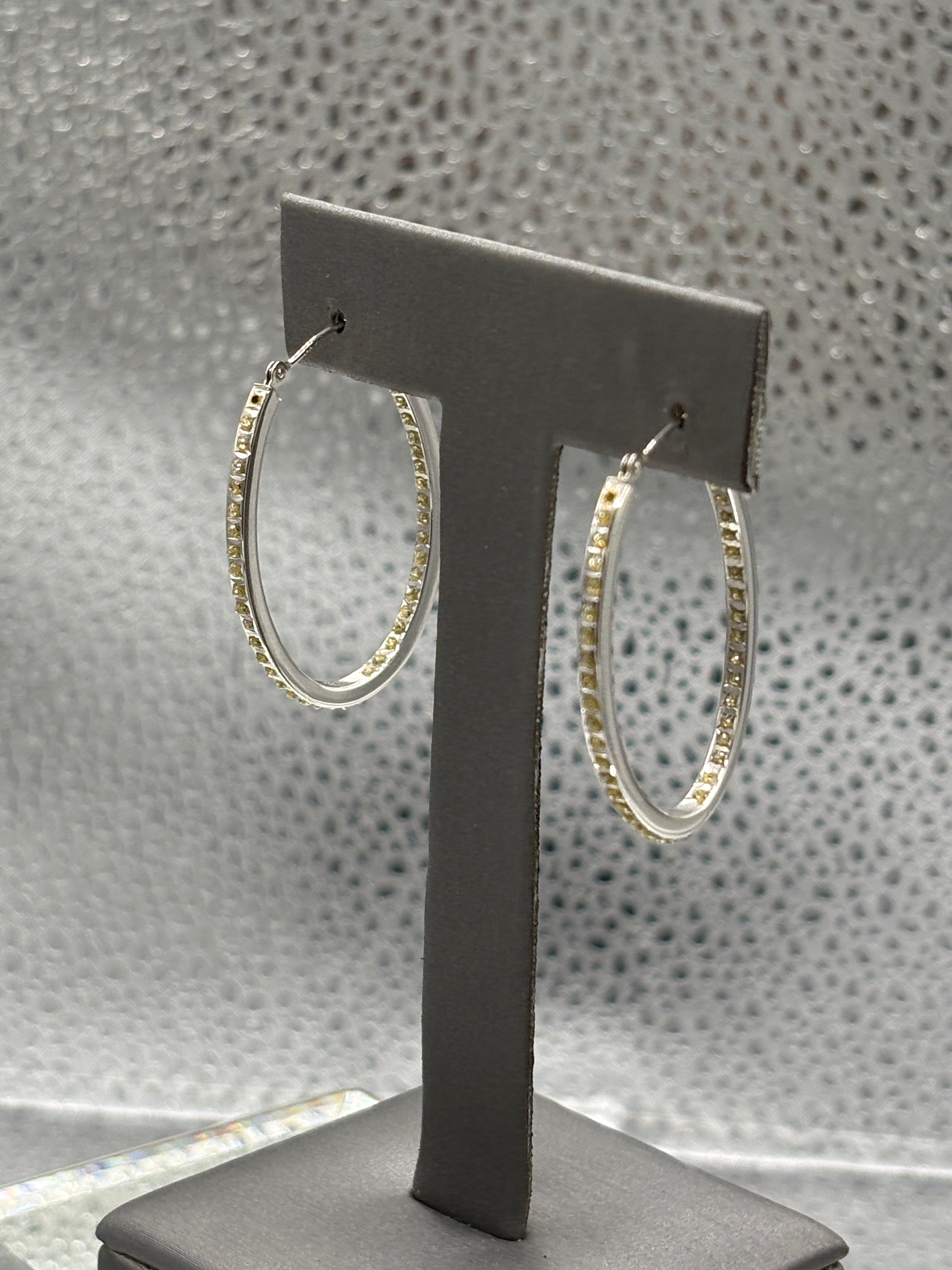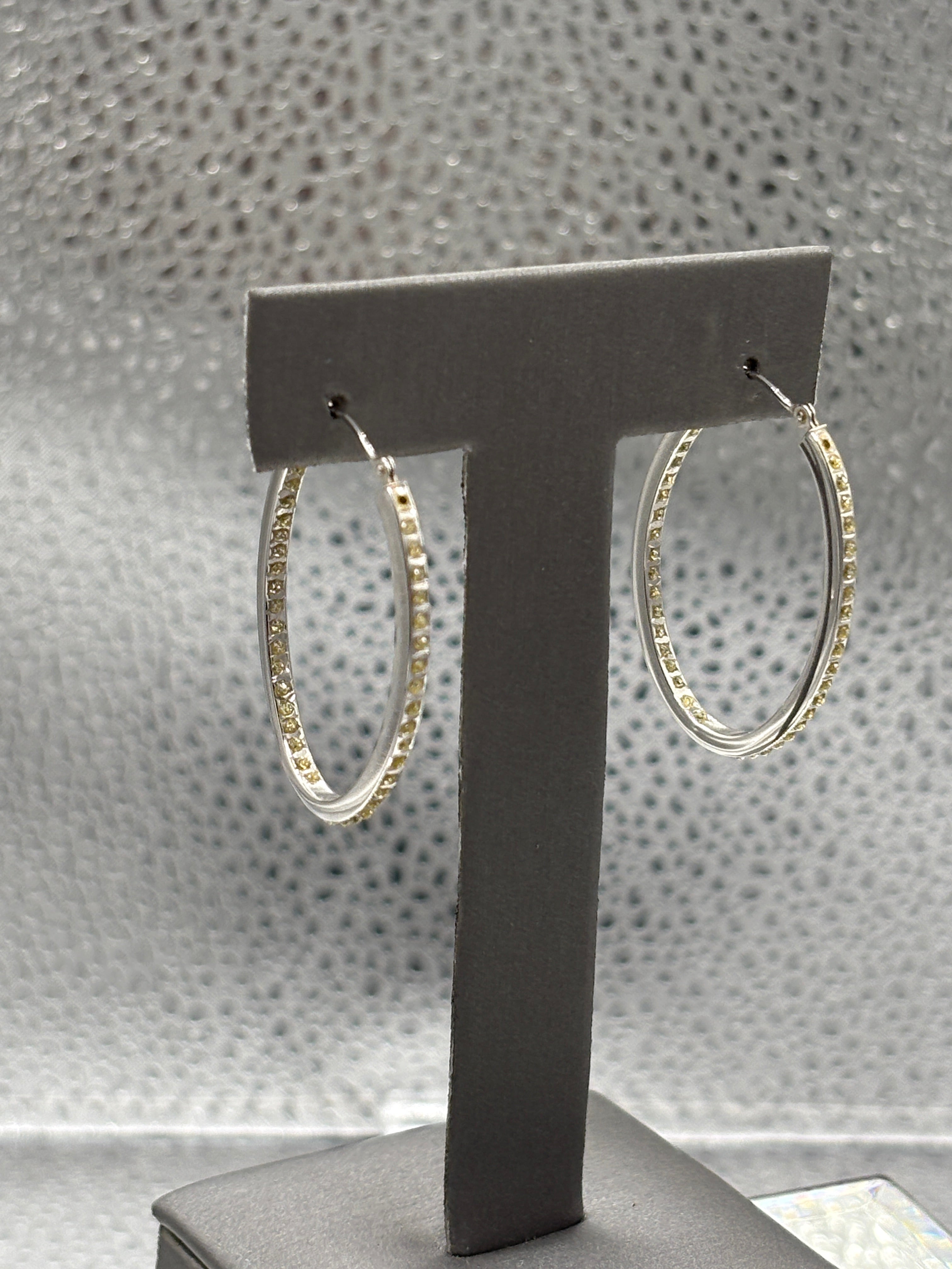 14 Karat White Gold Ladies Oval Inside/Out Diamond Hoop Earrings