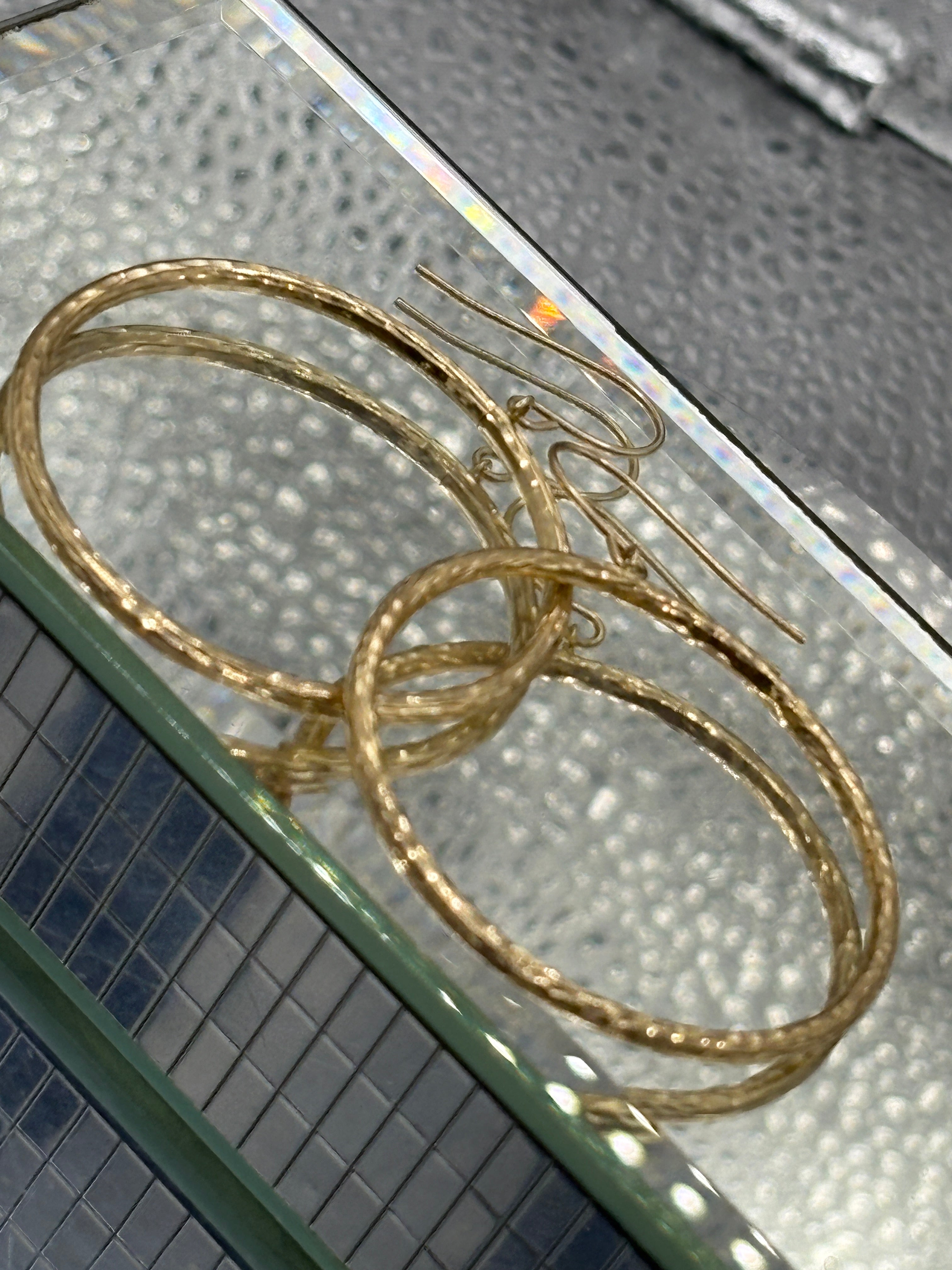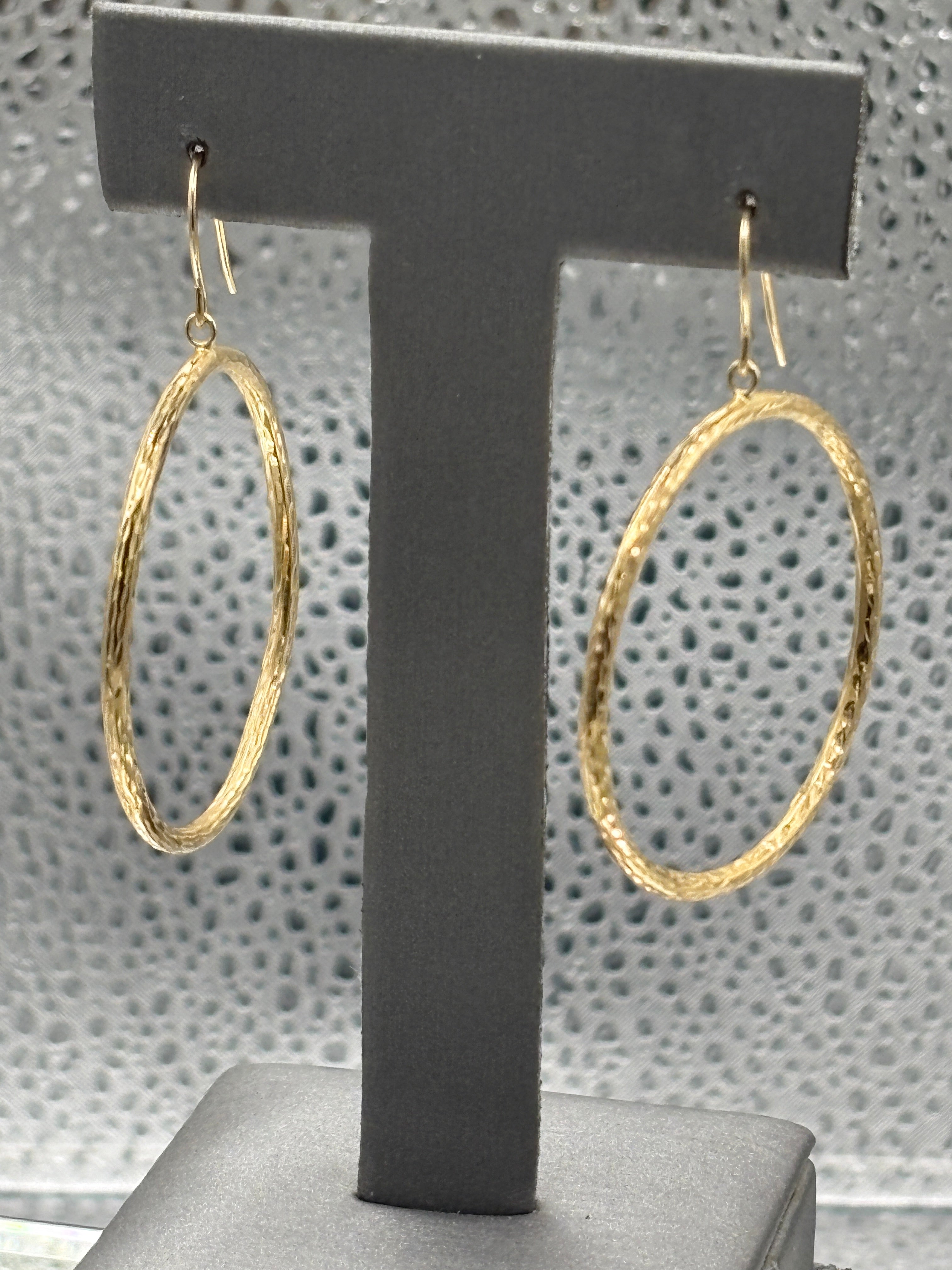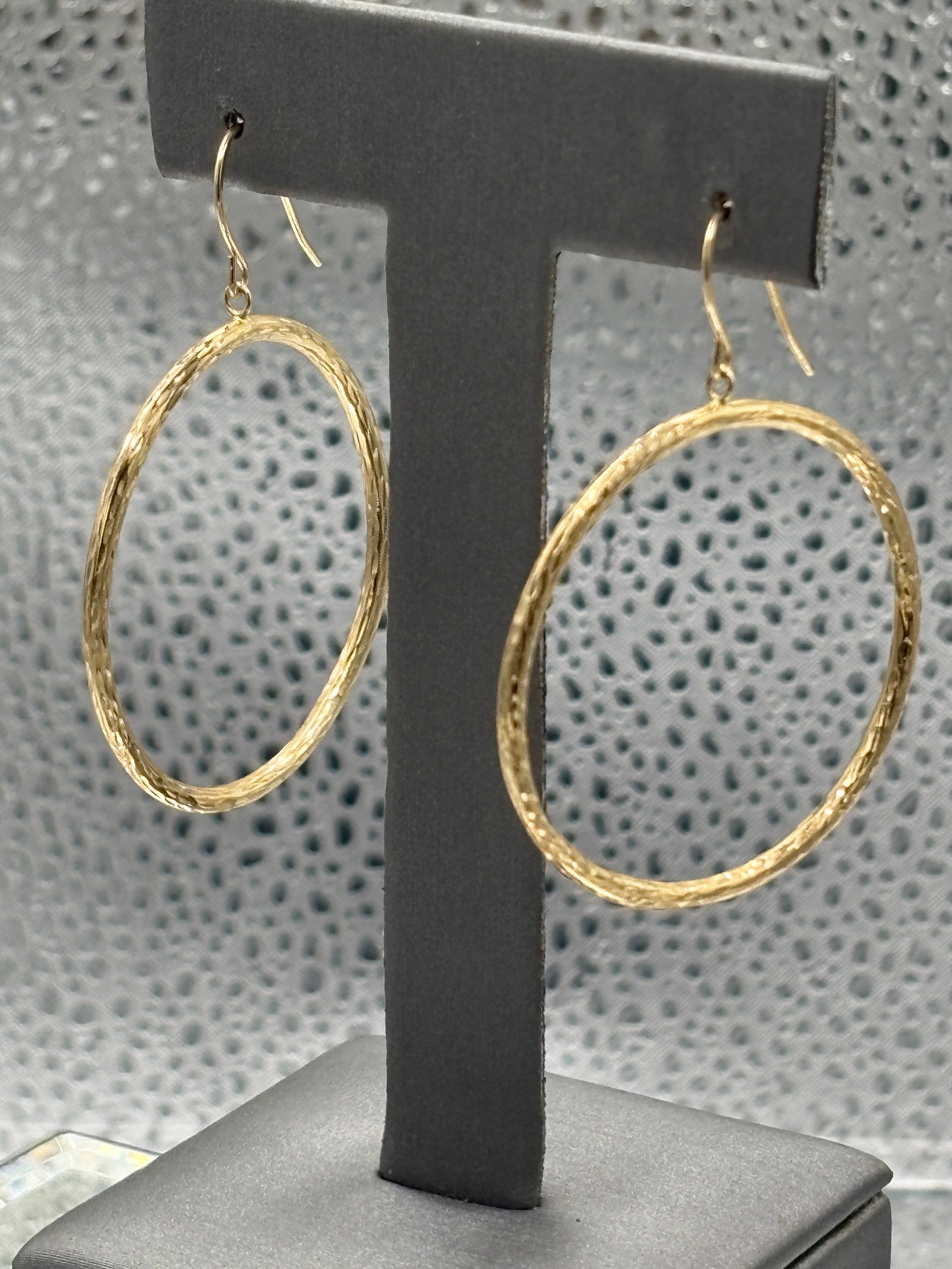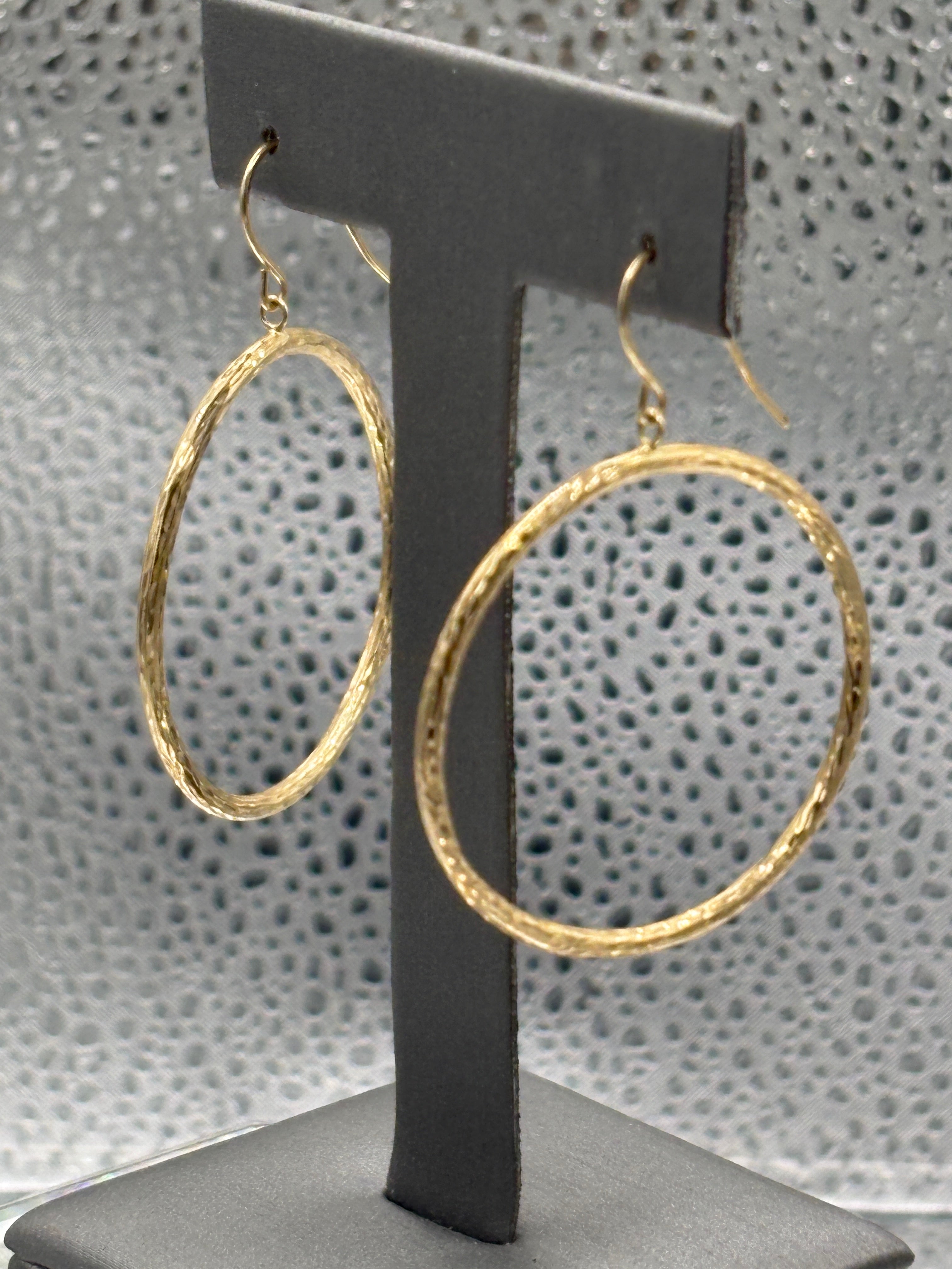 14 Karat Yellow Gold Diamond Cut Textured Hoop Wire Earrings