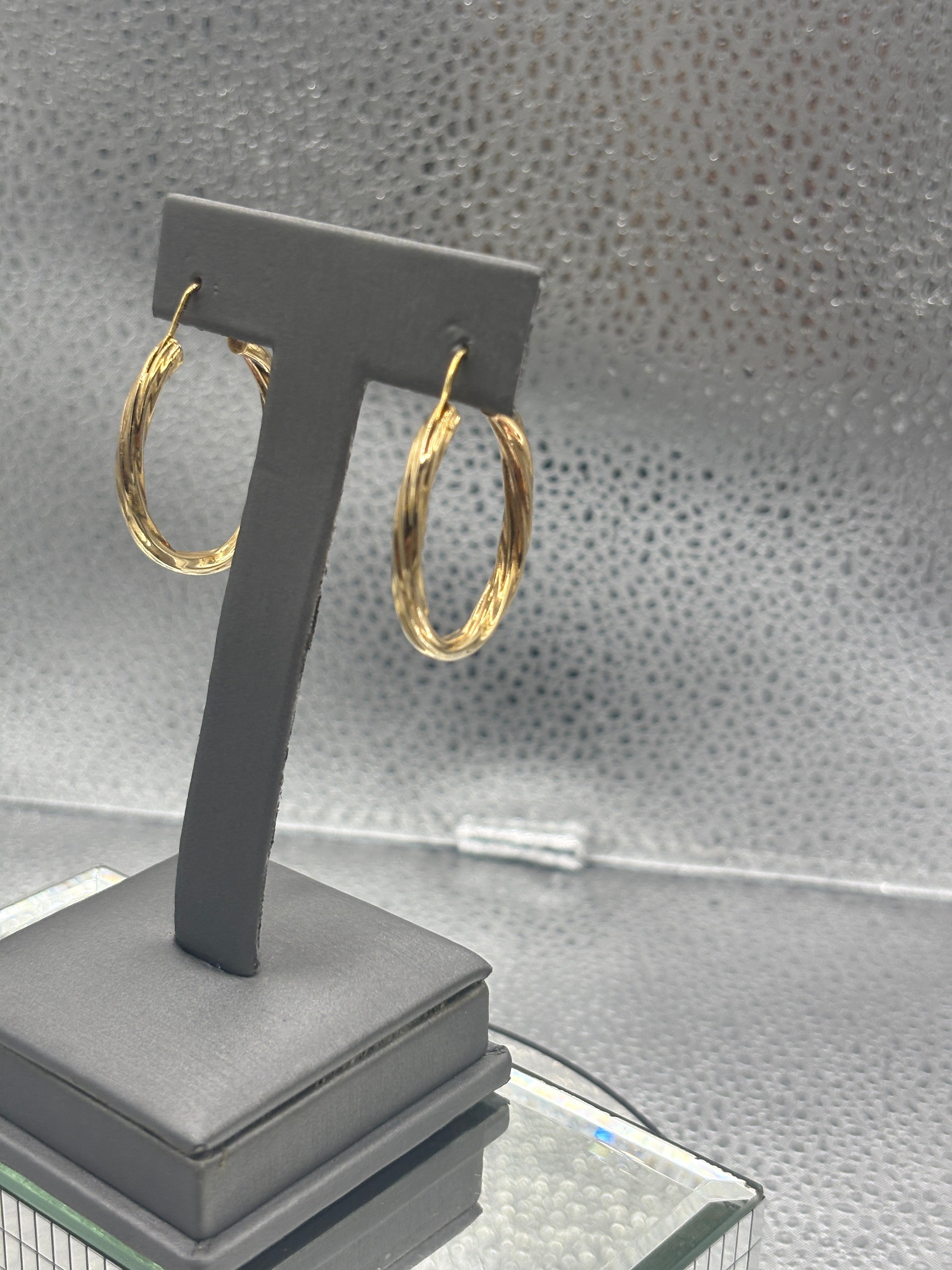 These earrings display a teardrop or oval shape with hinged closures. Made in 18 karat solid yellow gold. Gold twisted hoop earrings are highly valued for their timeless elegance and versatility, appealing to jewelry lovers and fashion conscious women! These earrings look gorgeous on.