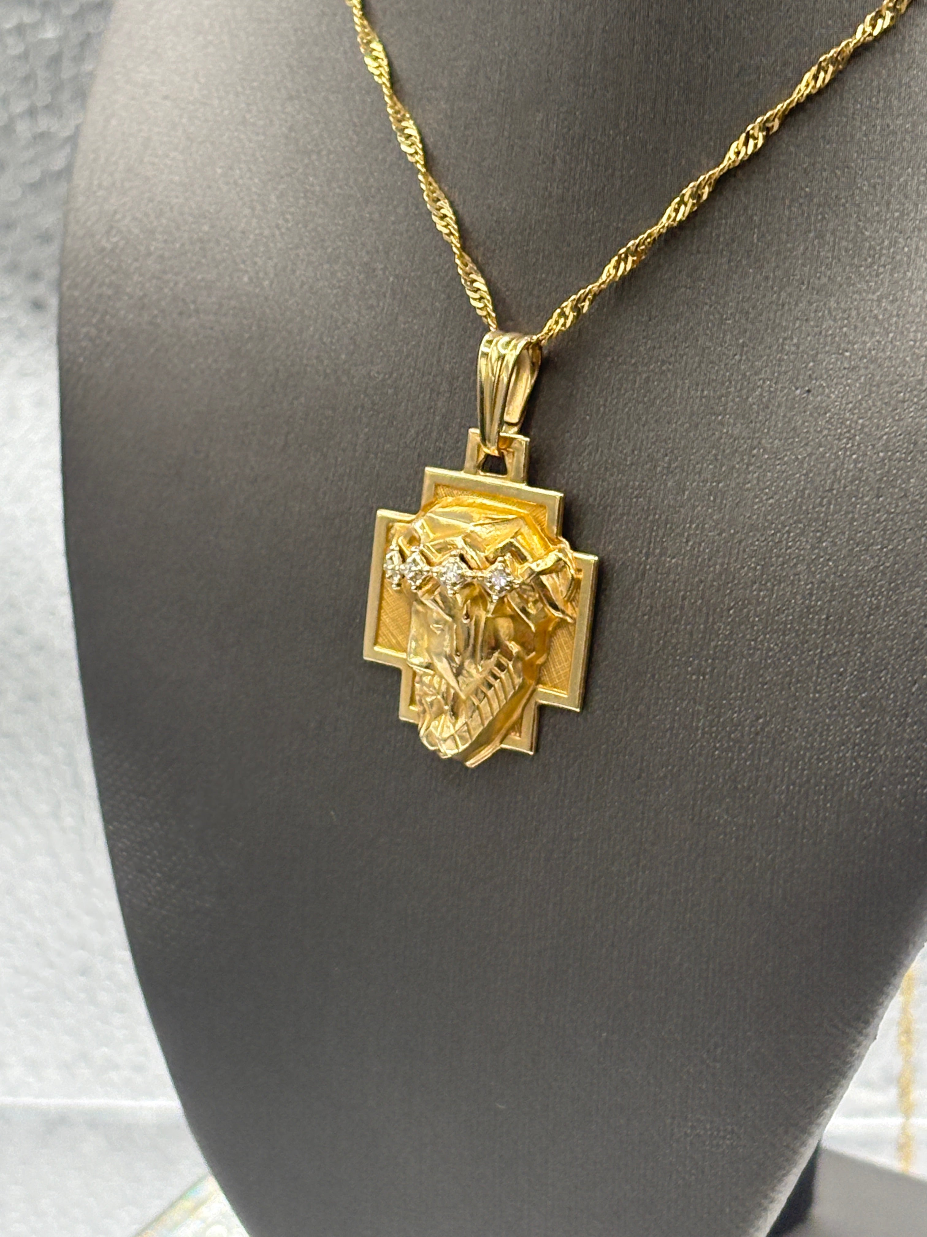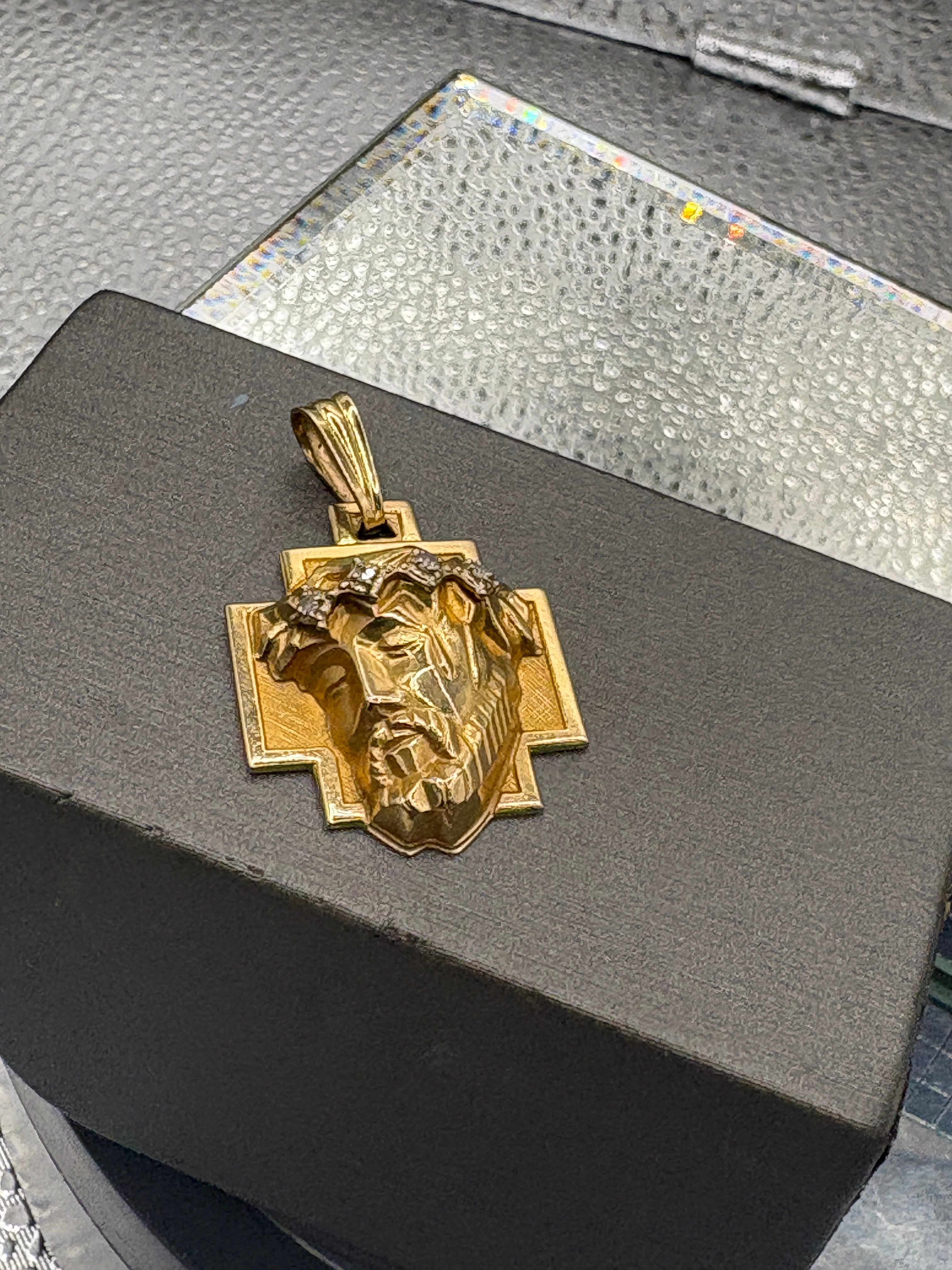 Classic 14 Karat Yellow Gold Jesus Diamond Head Pendant