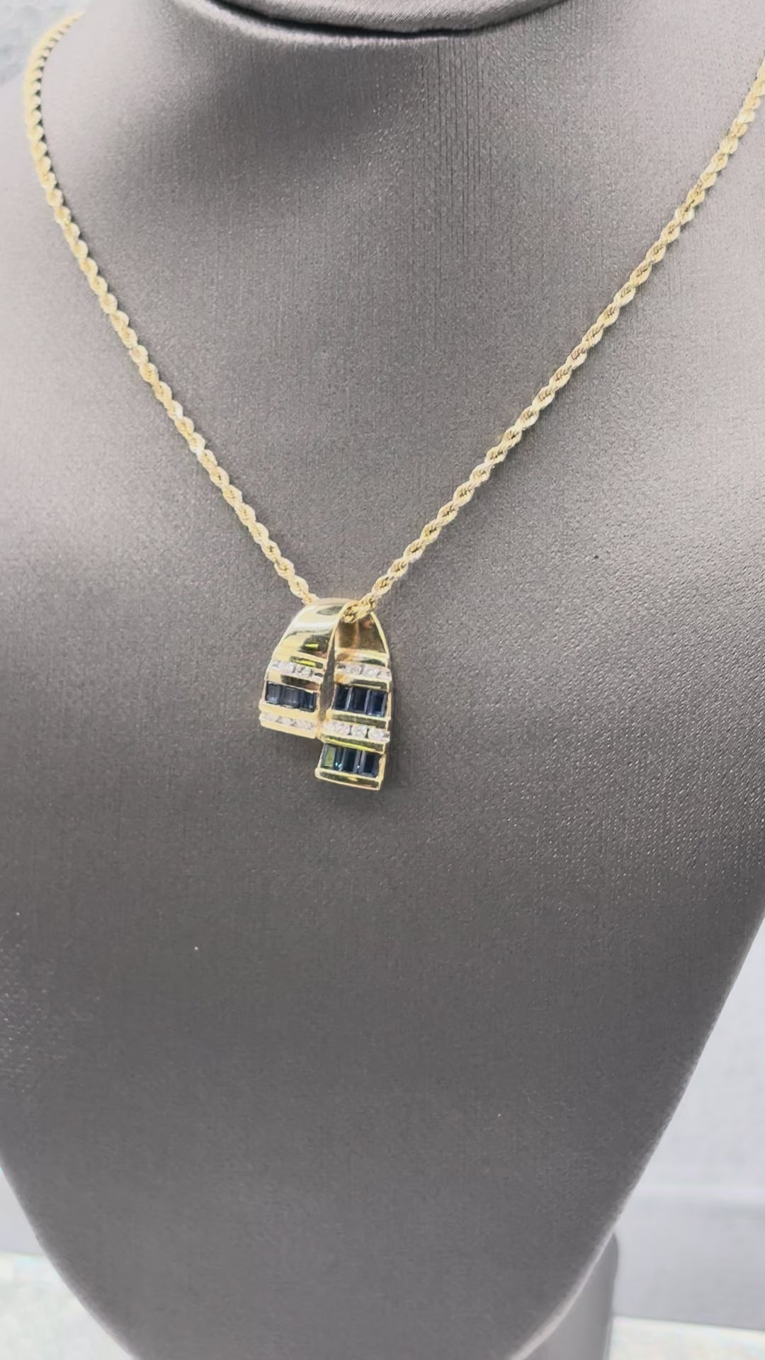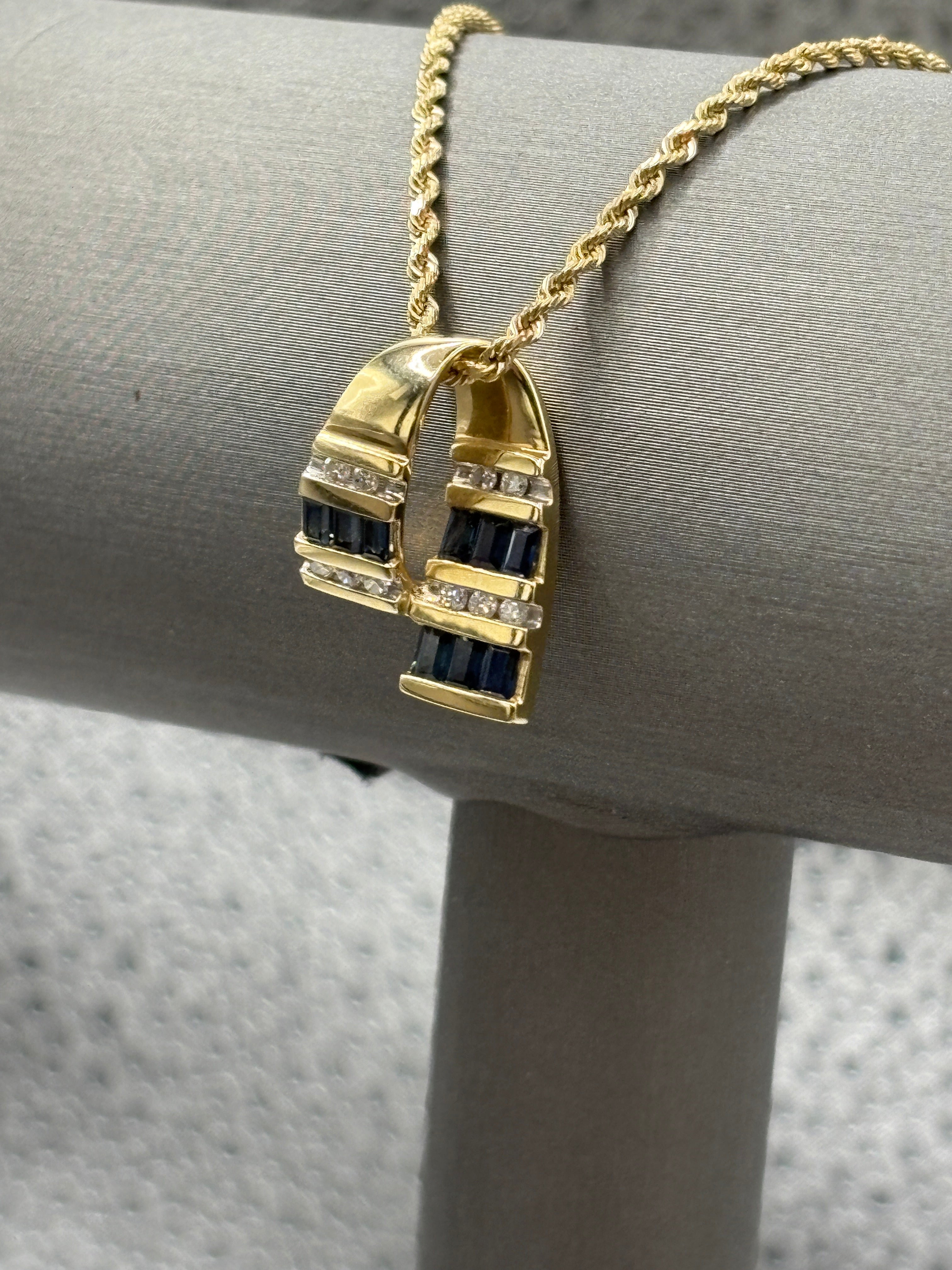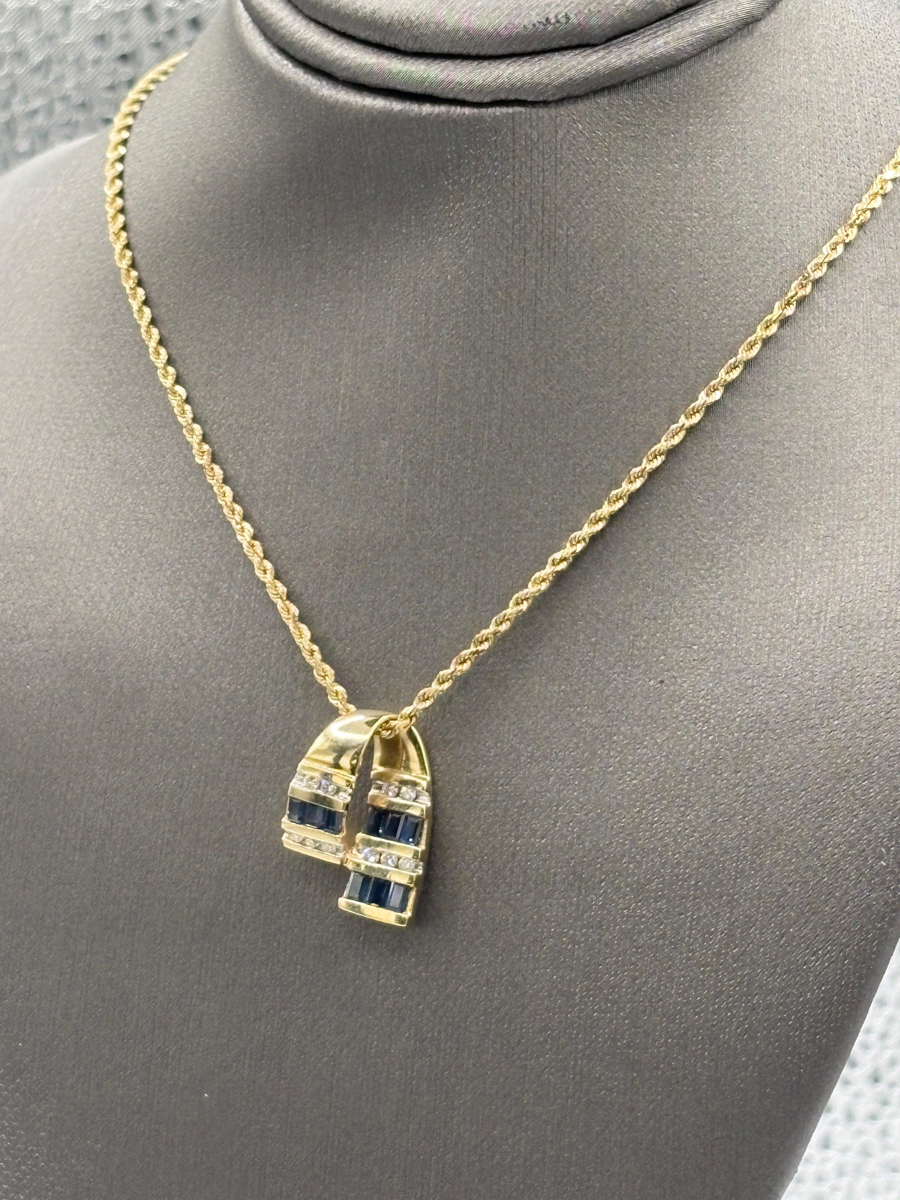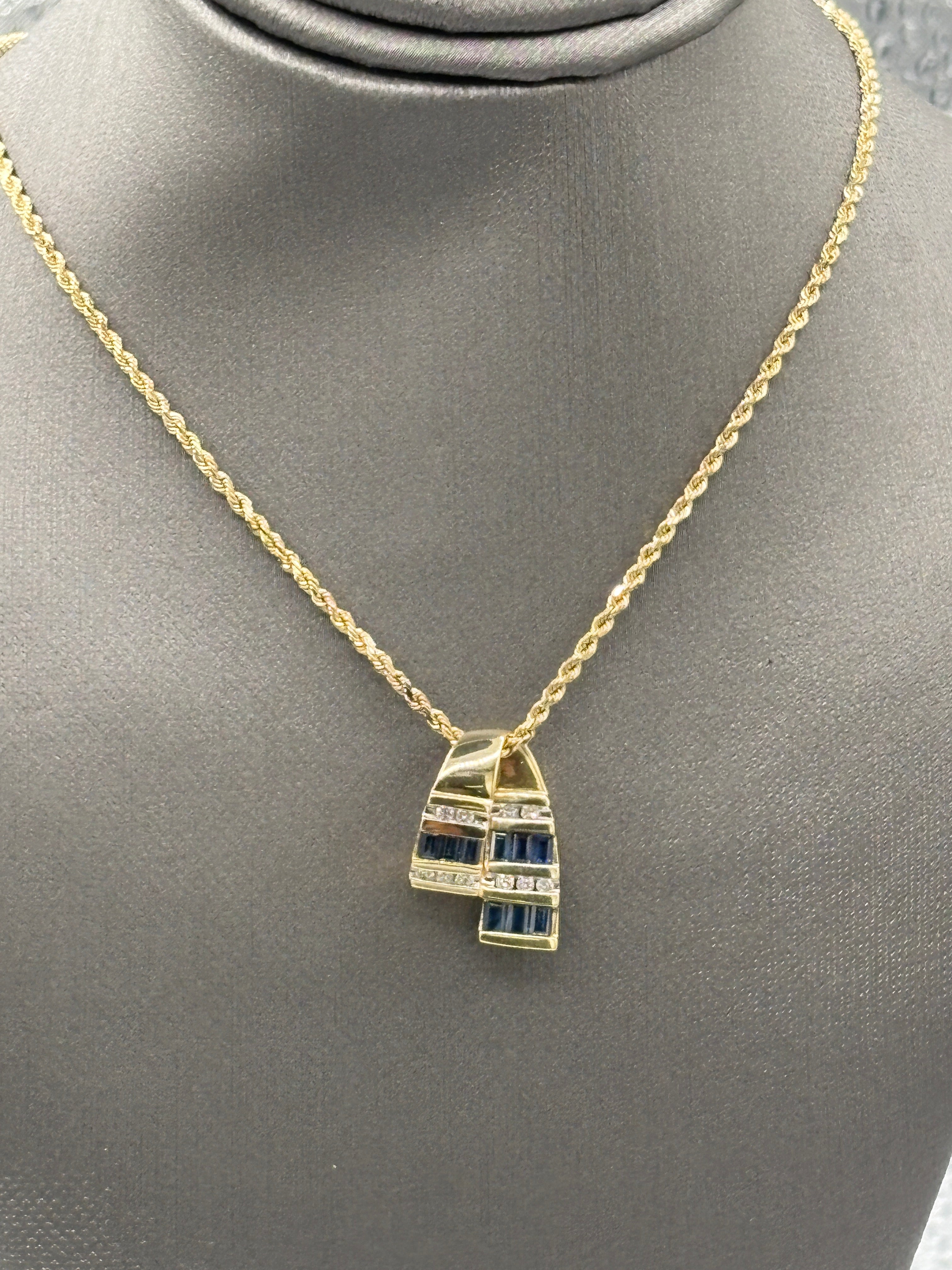 14 Karat Yellow Gold Sapphire & Diamond Pendant Rope Necklace