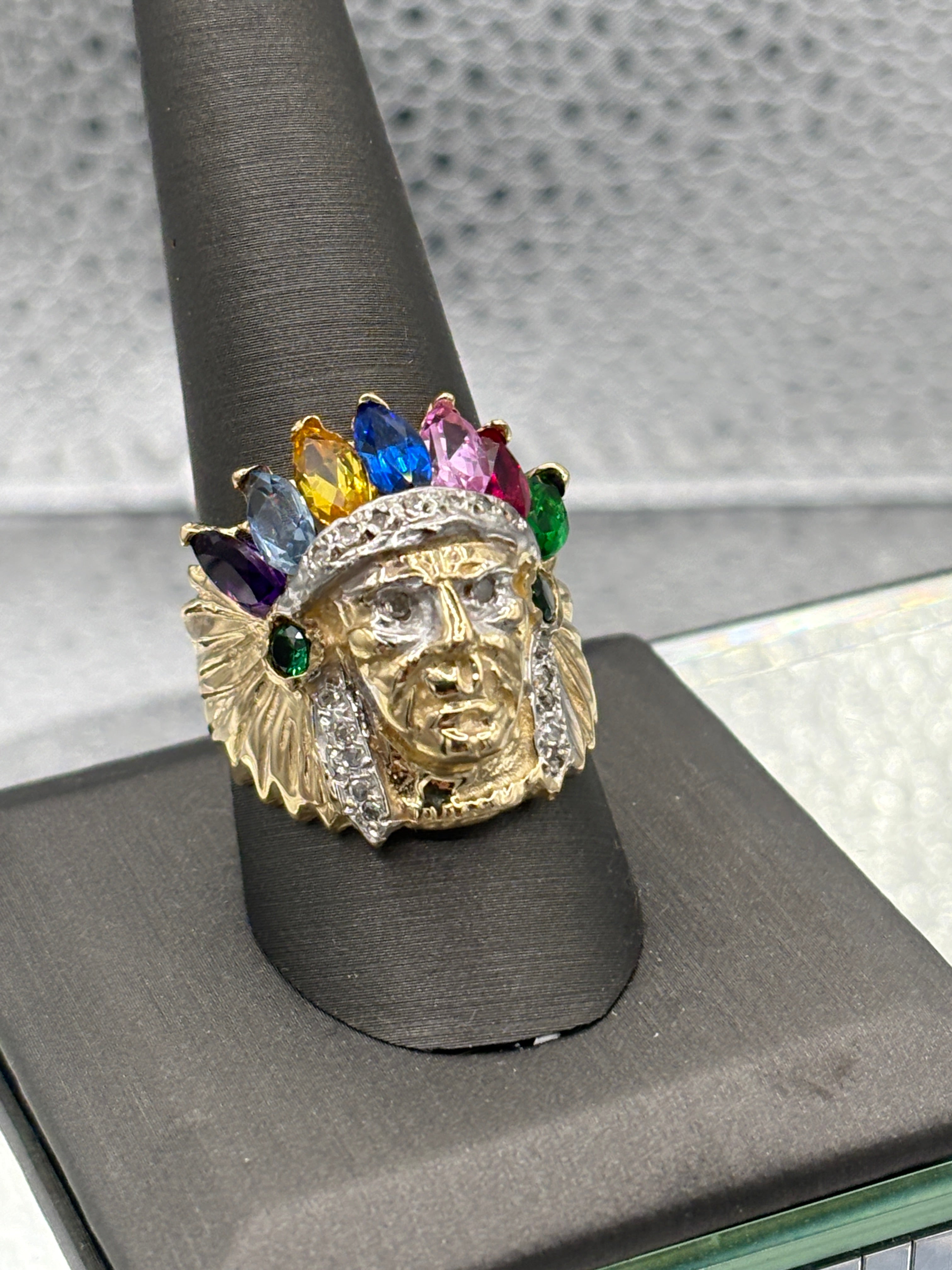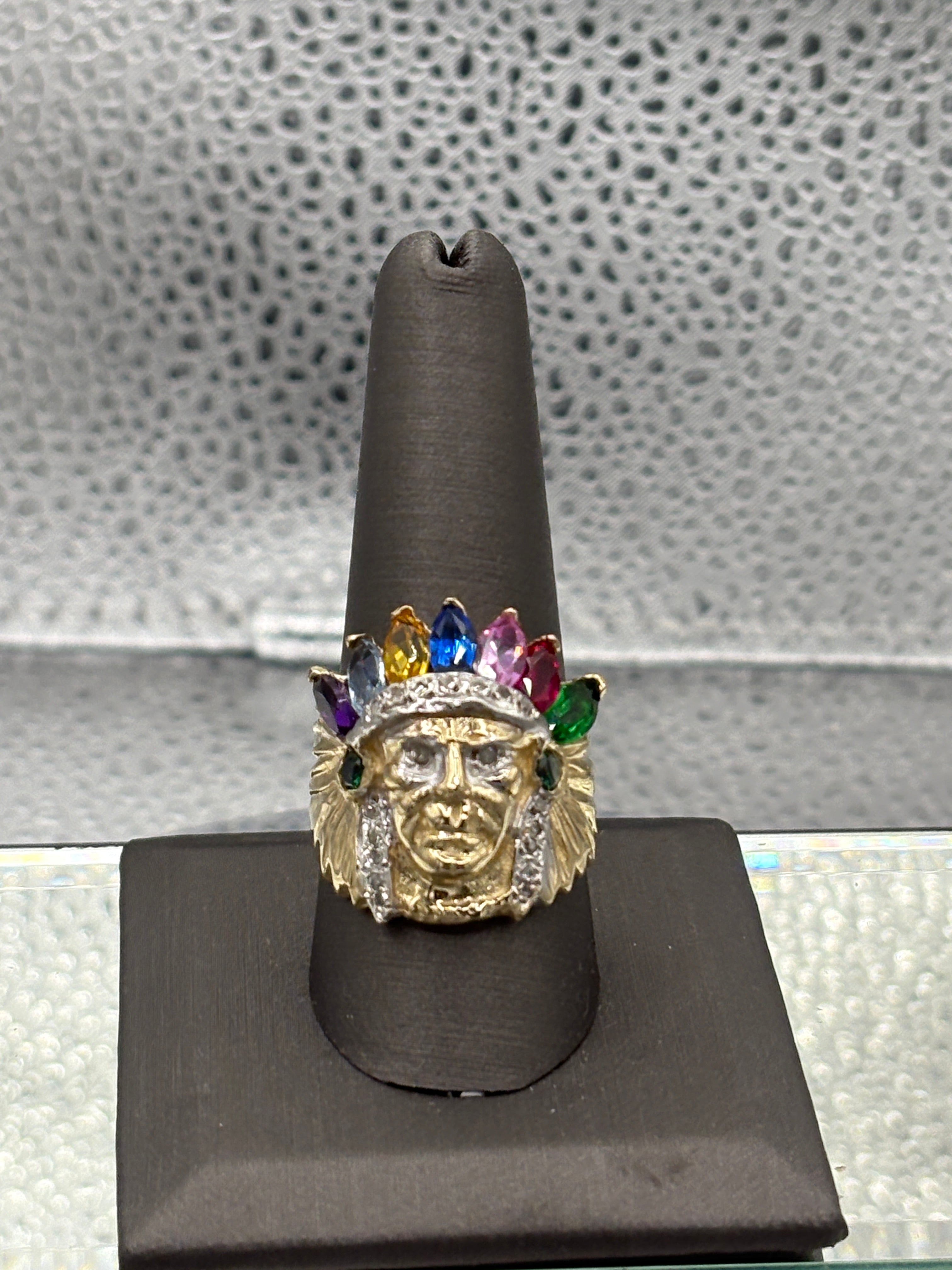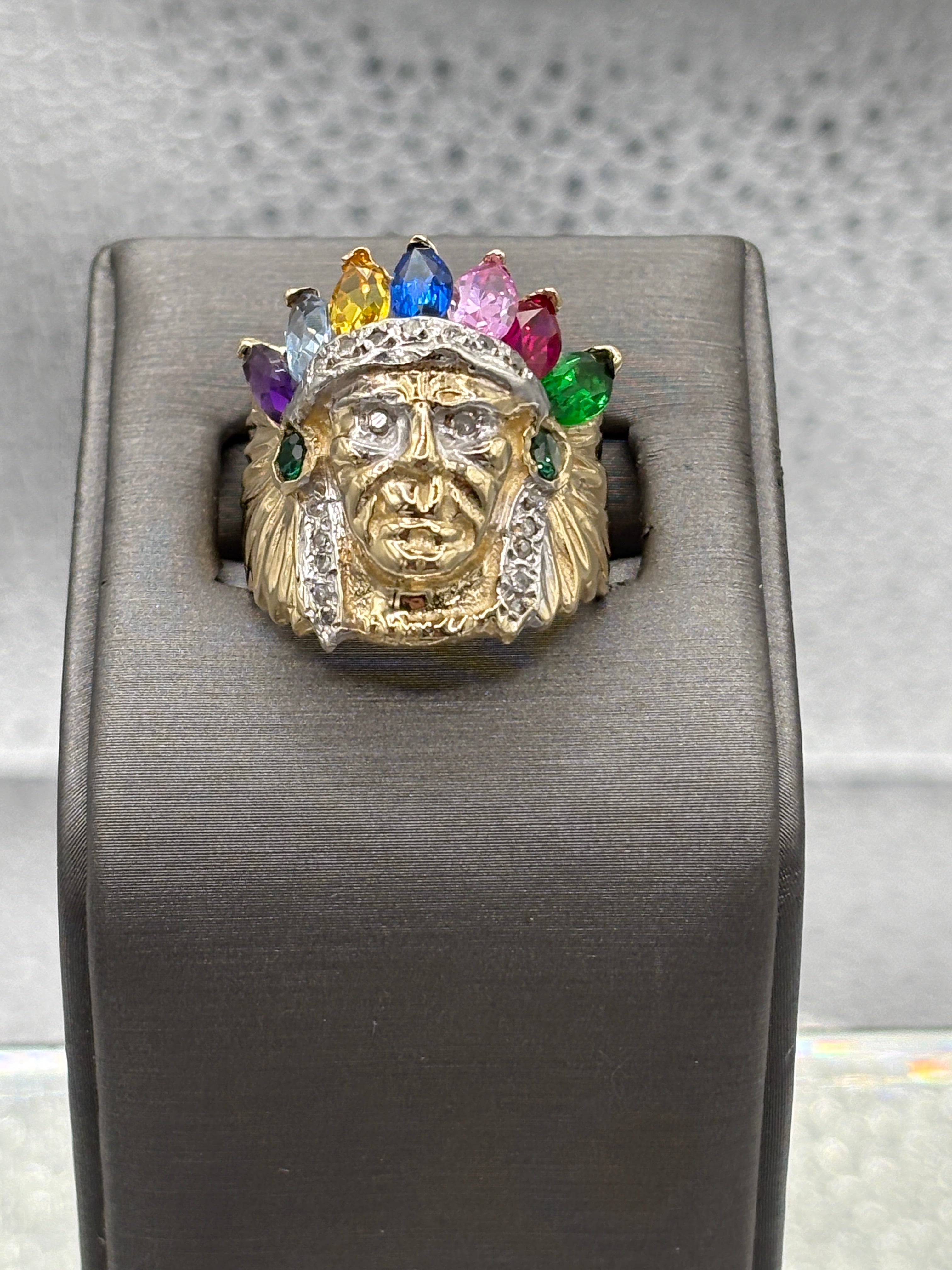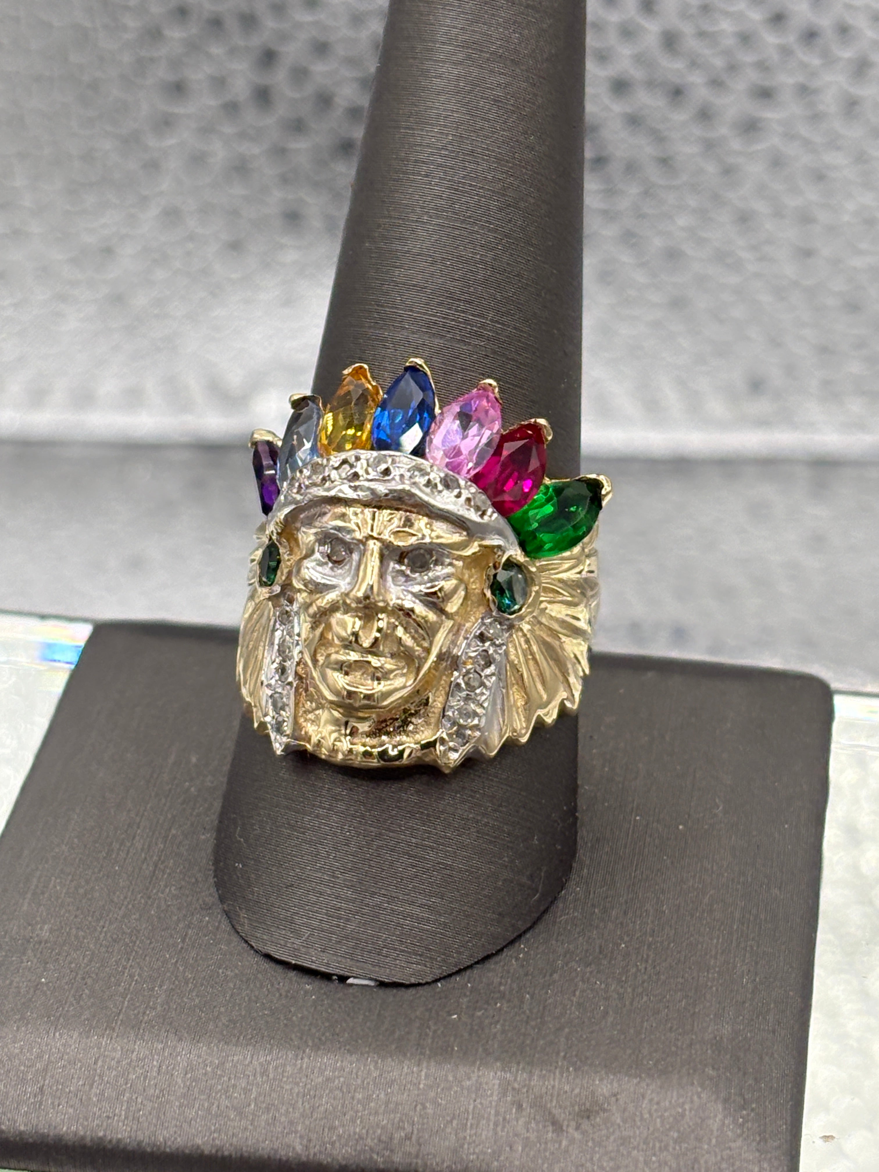 14 Karat Yellow Gold Native American Colored Stone Chief Ring