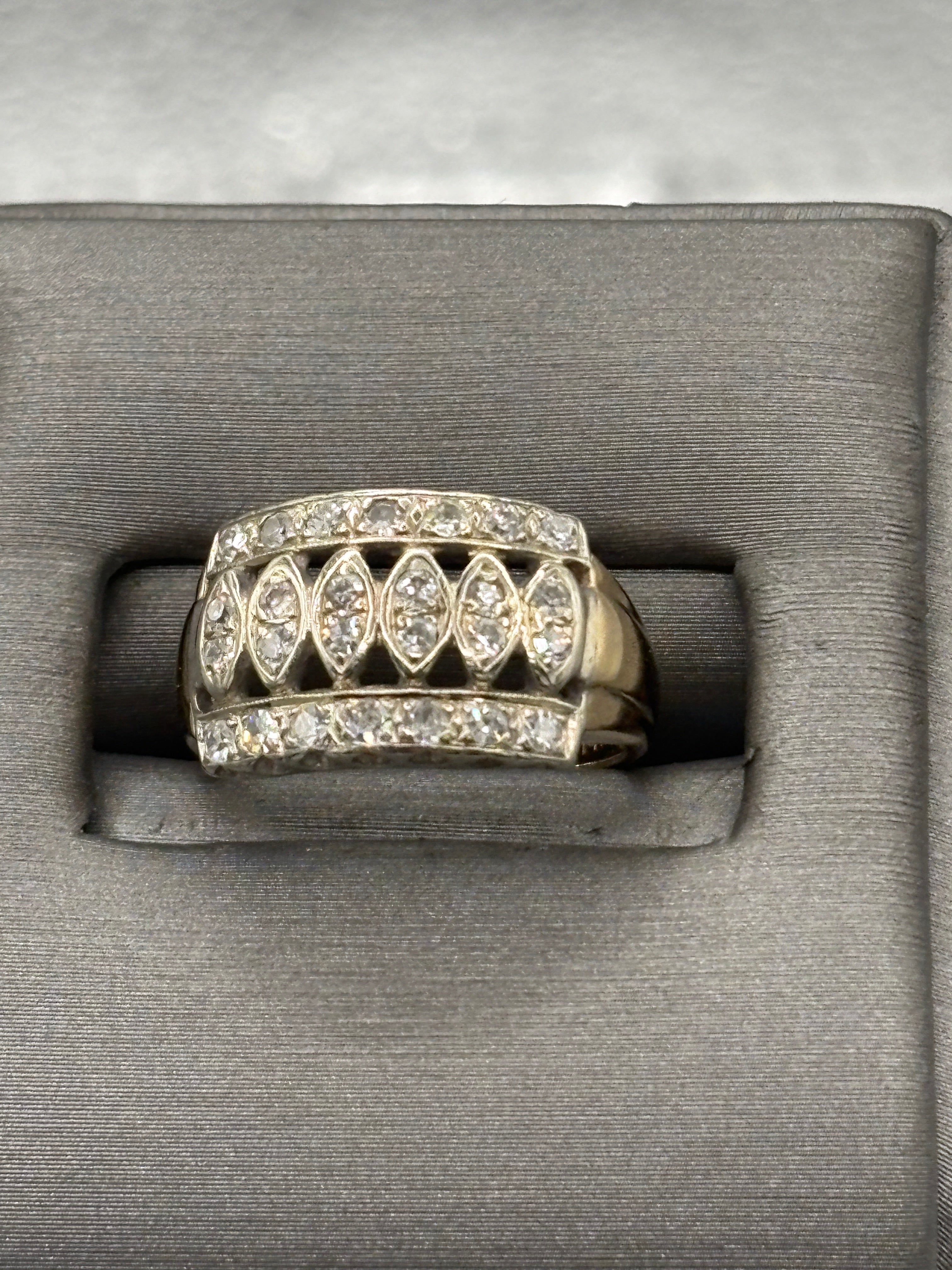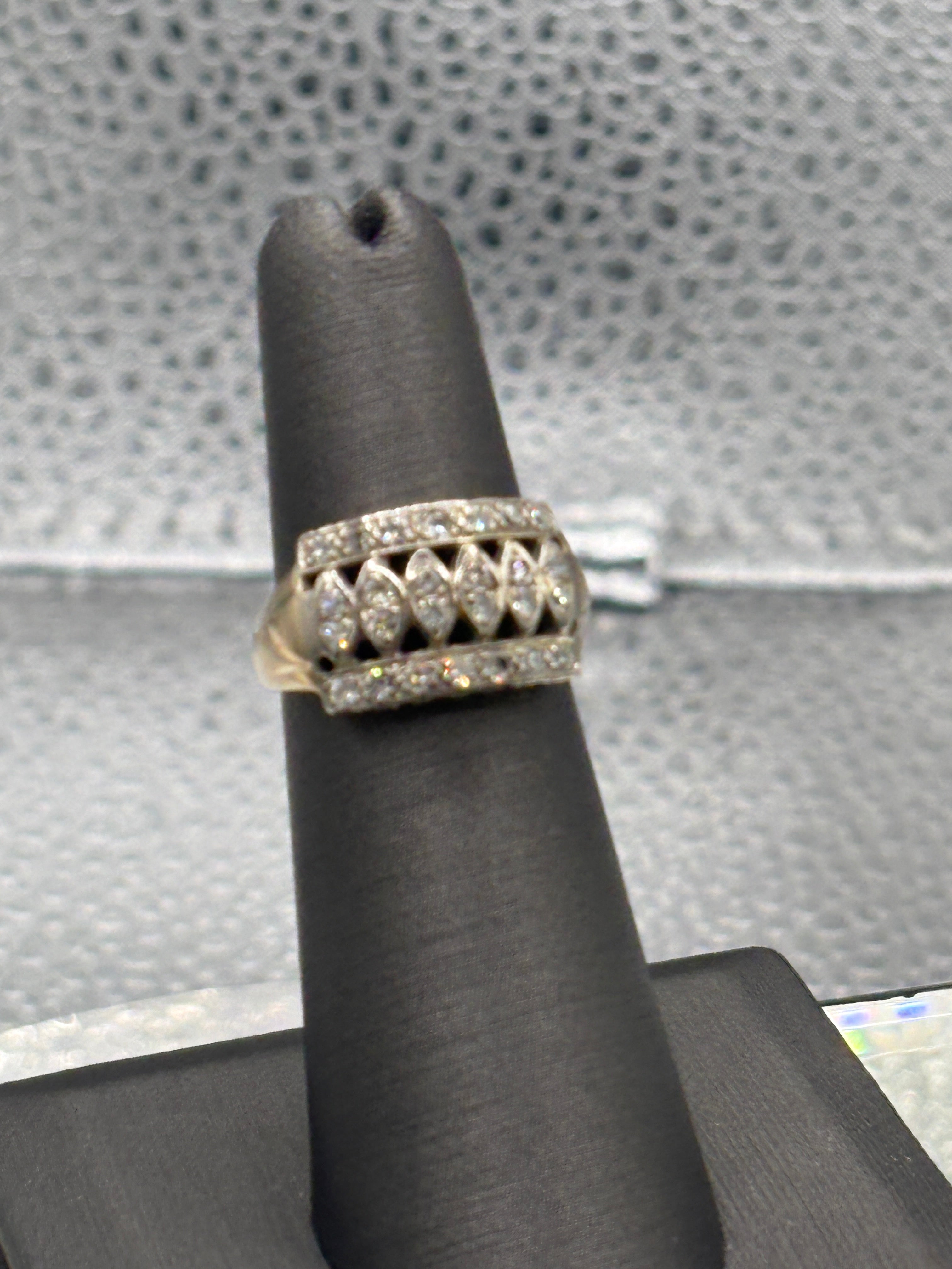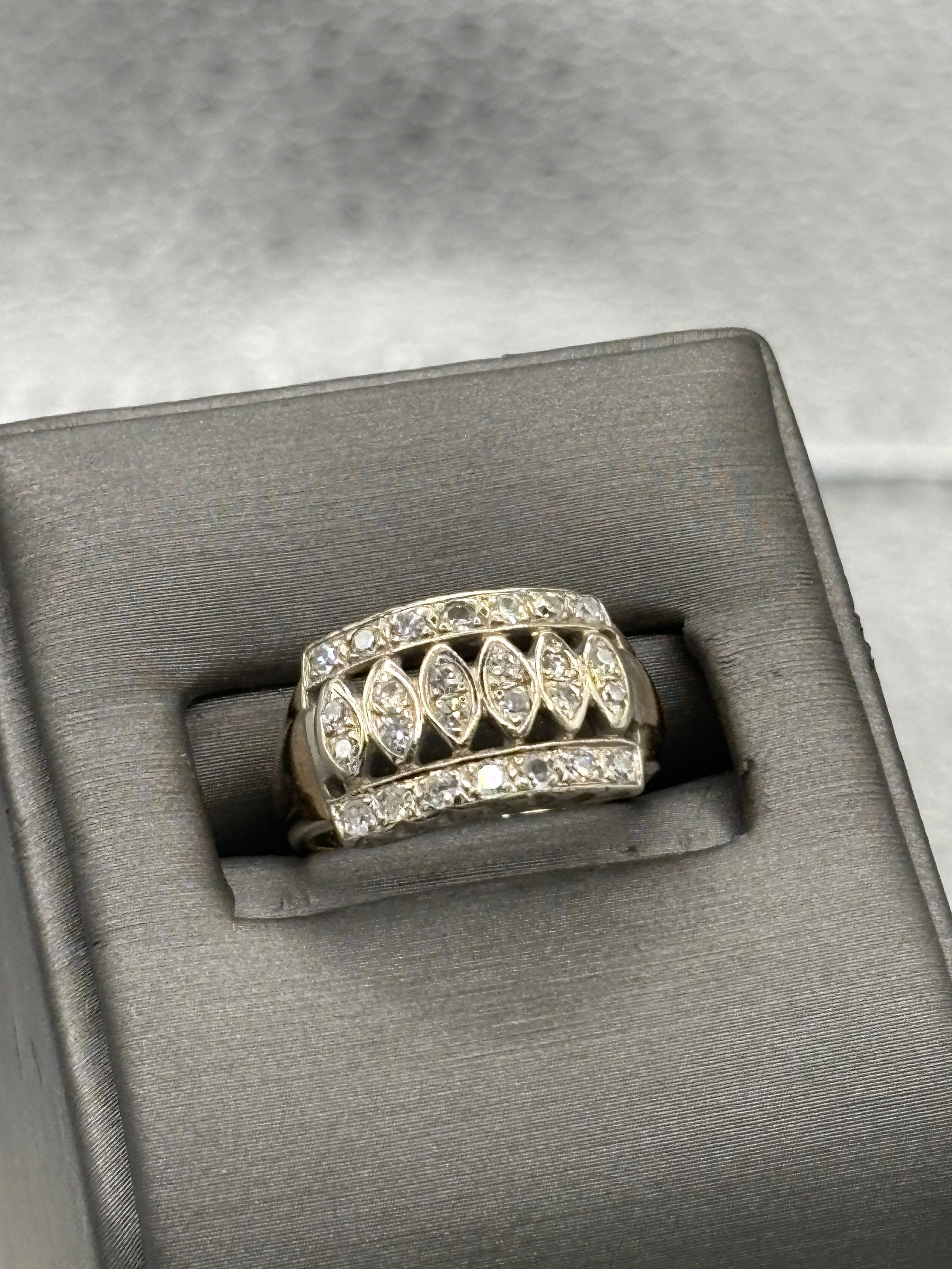 Antique Platinum Ladies Diamond Filagree Swirl Ring