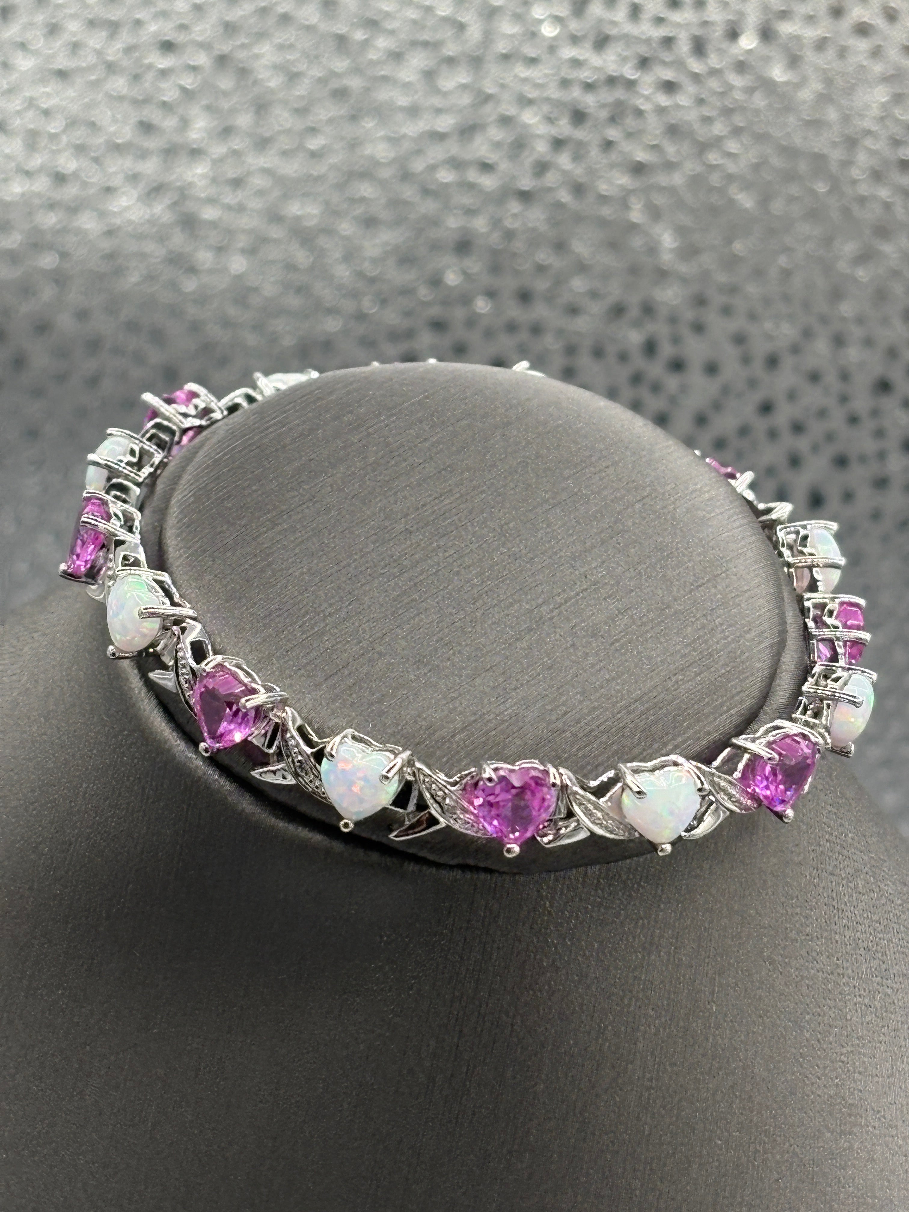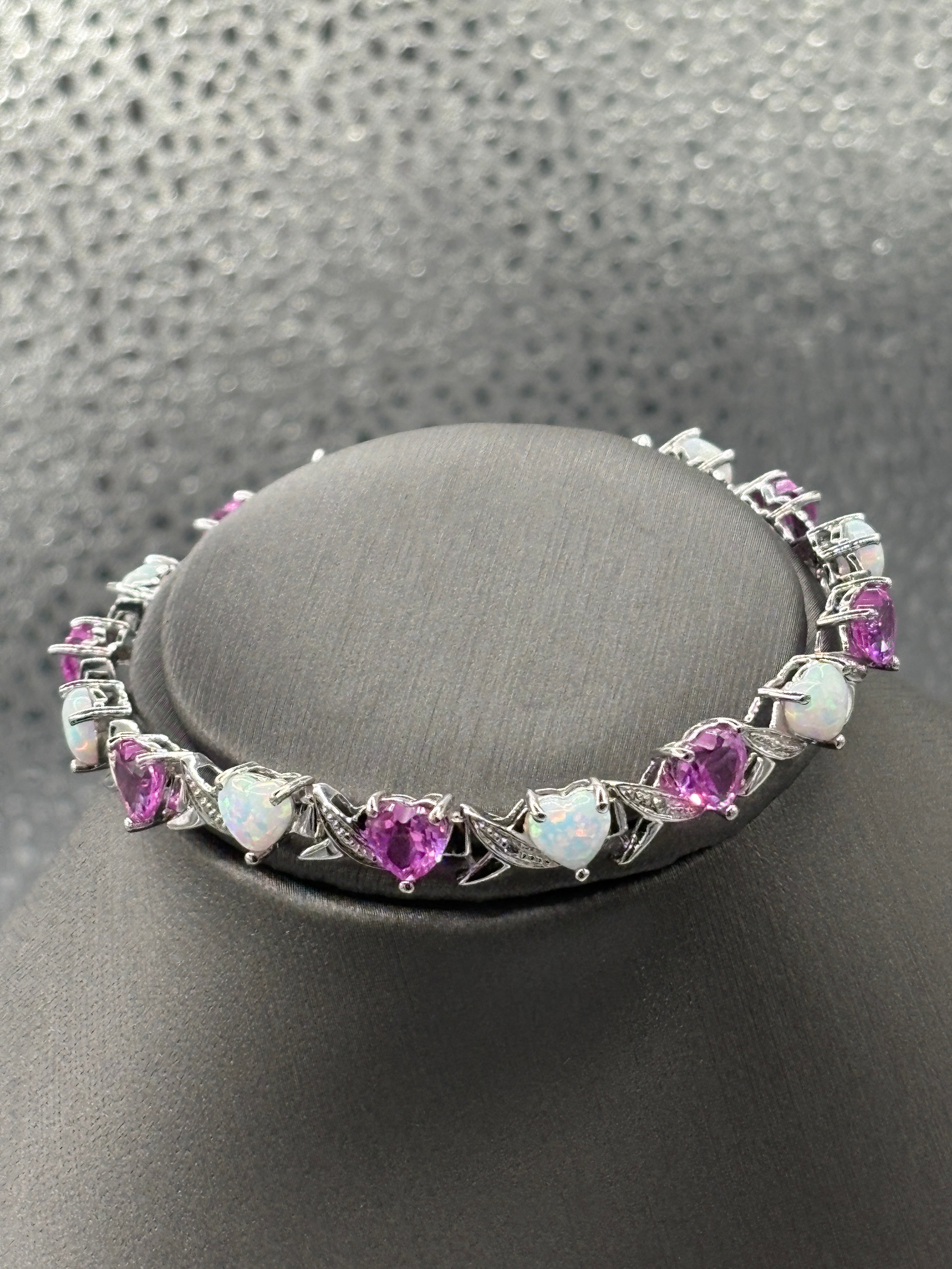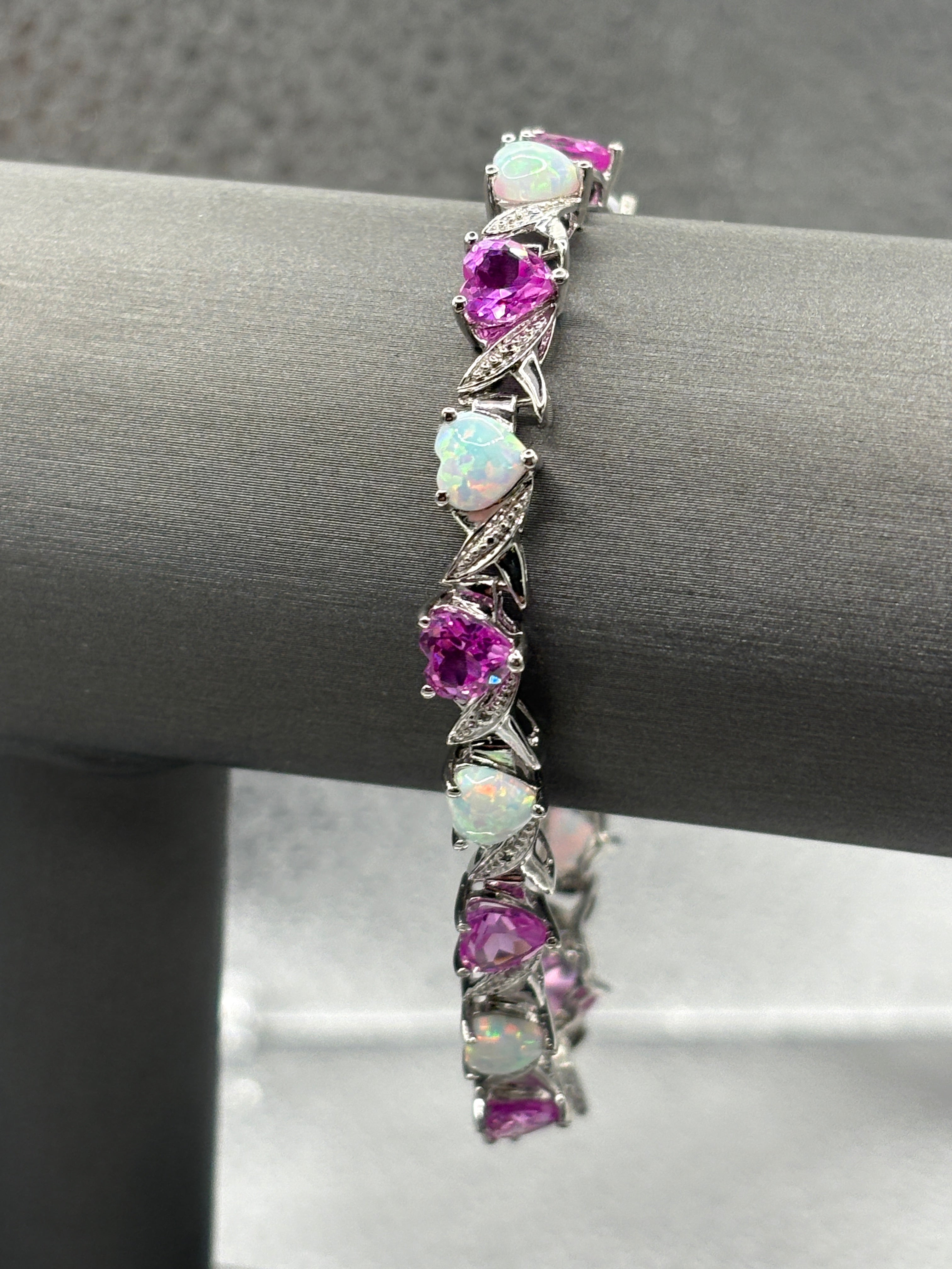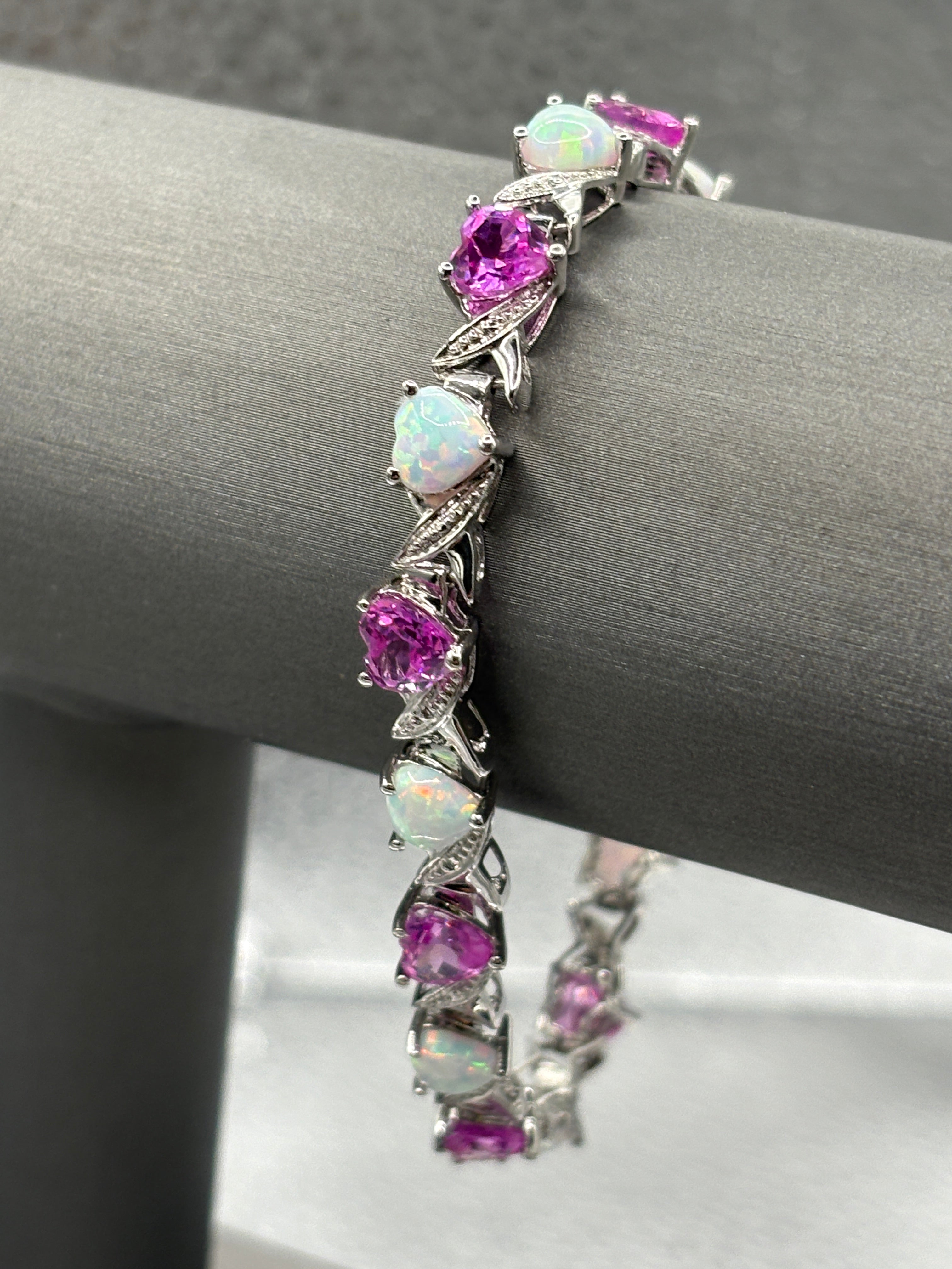 Sterling Silver Ladies Opal & Pink Topaz Bracelet