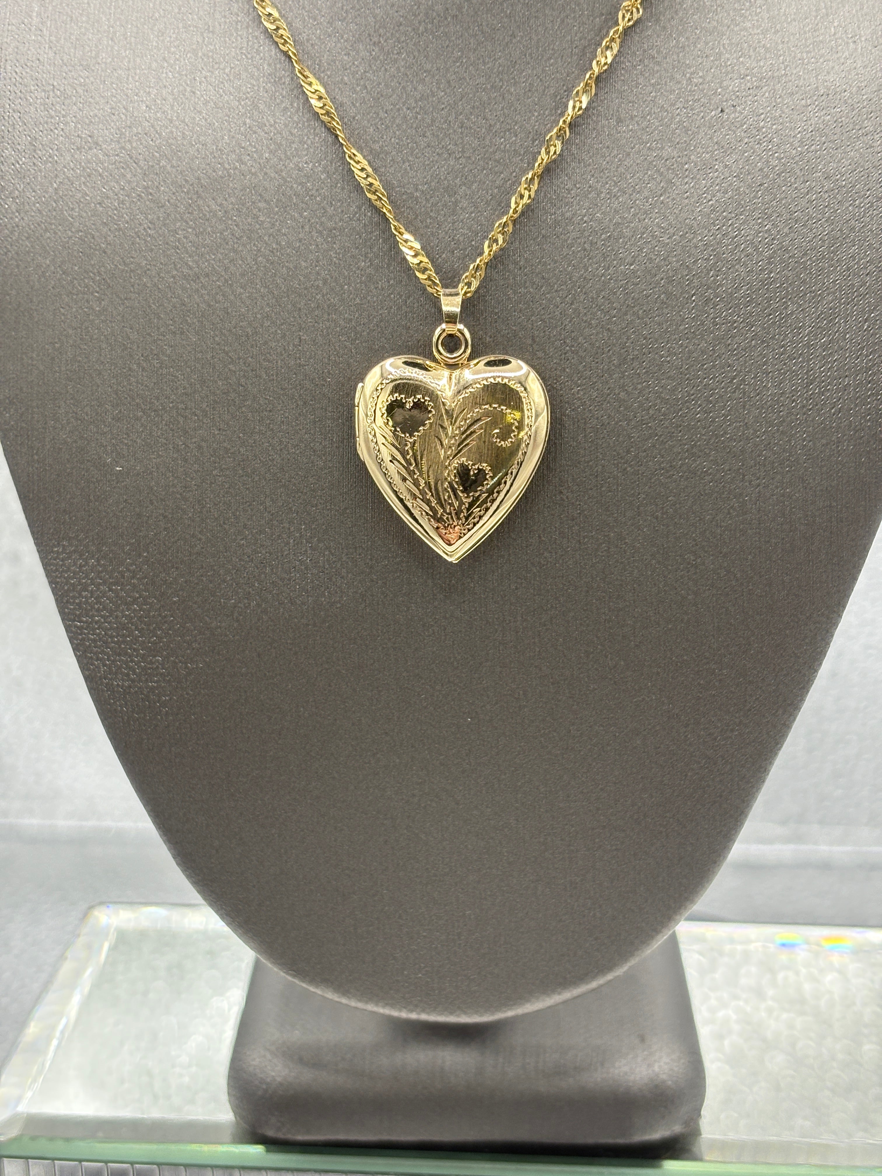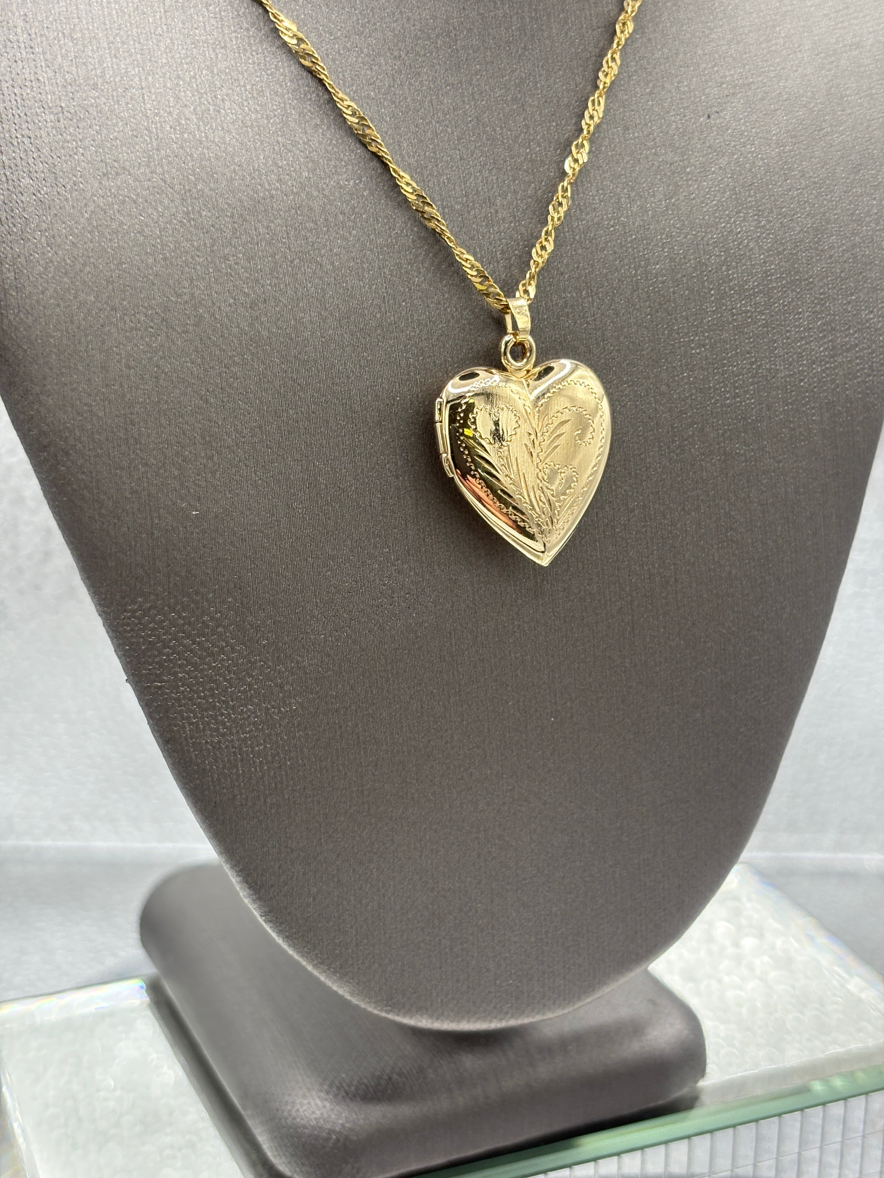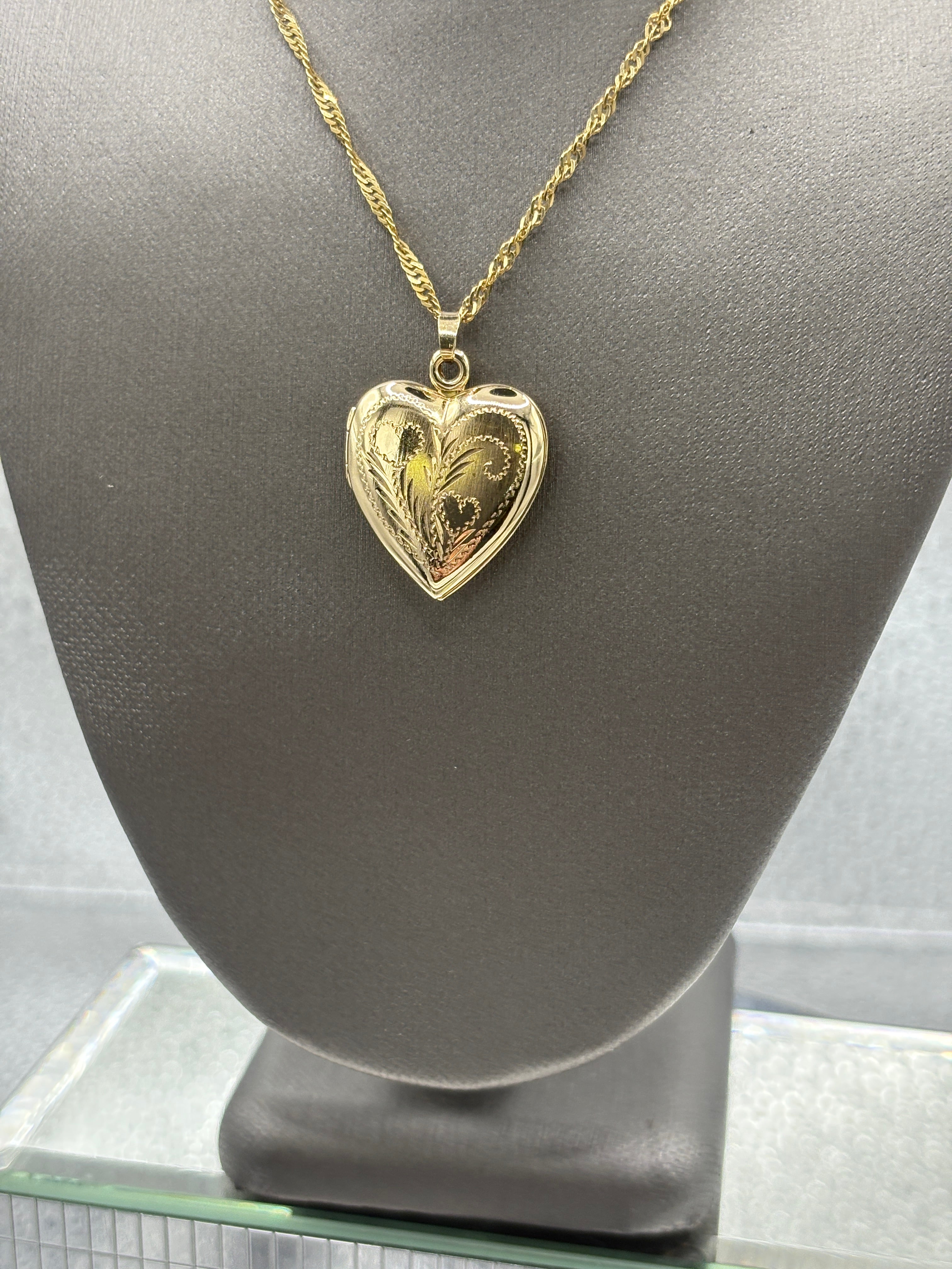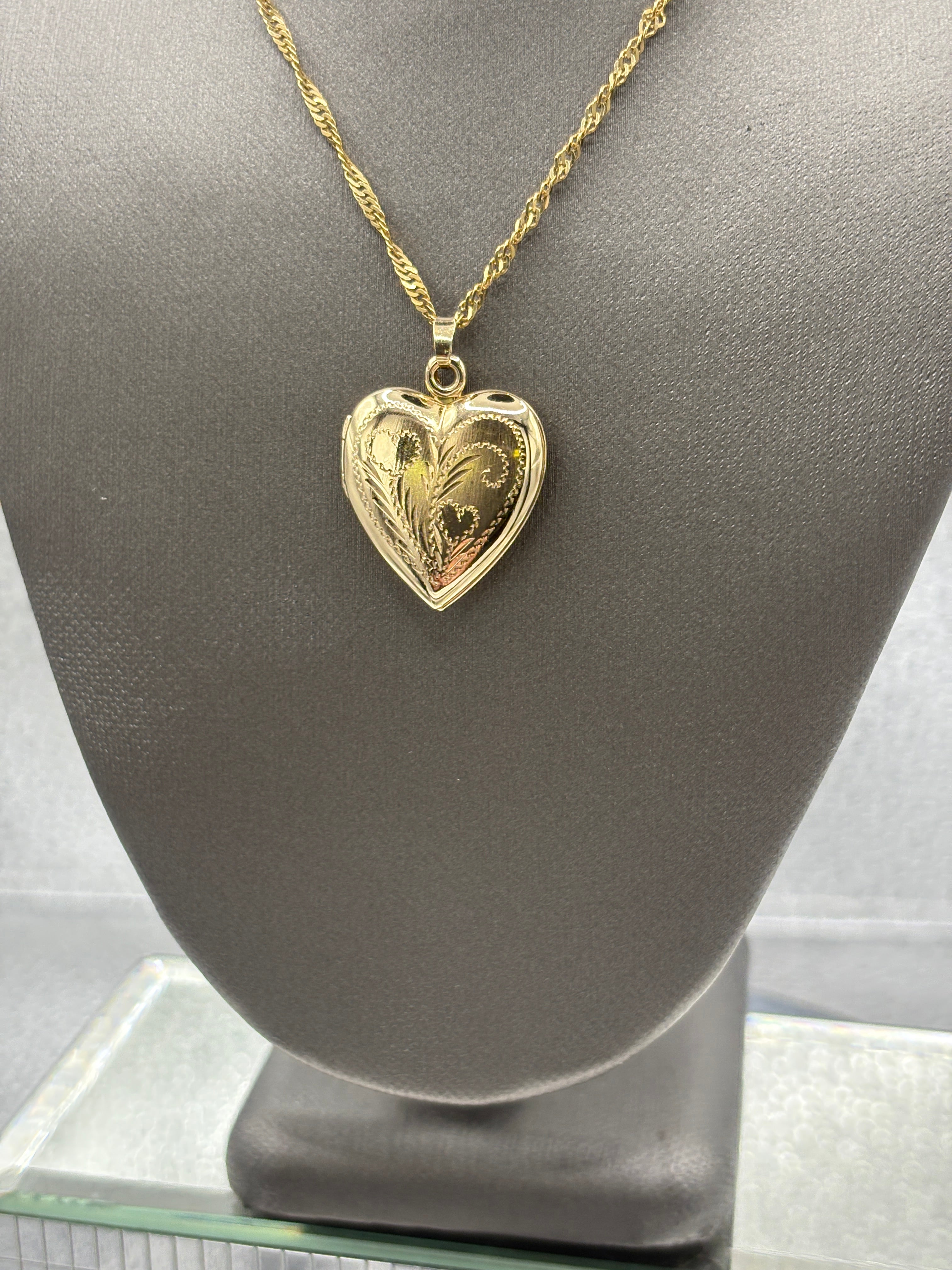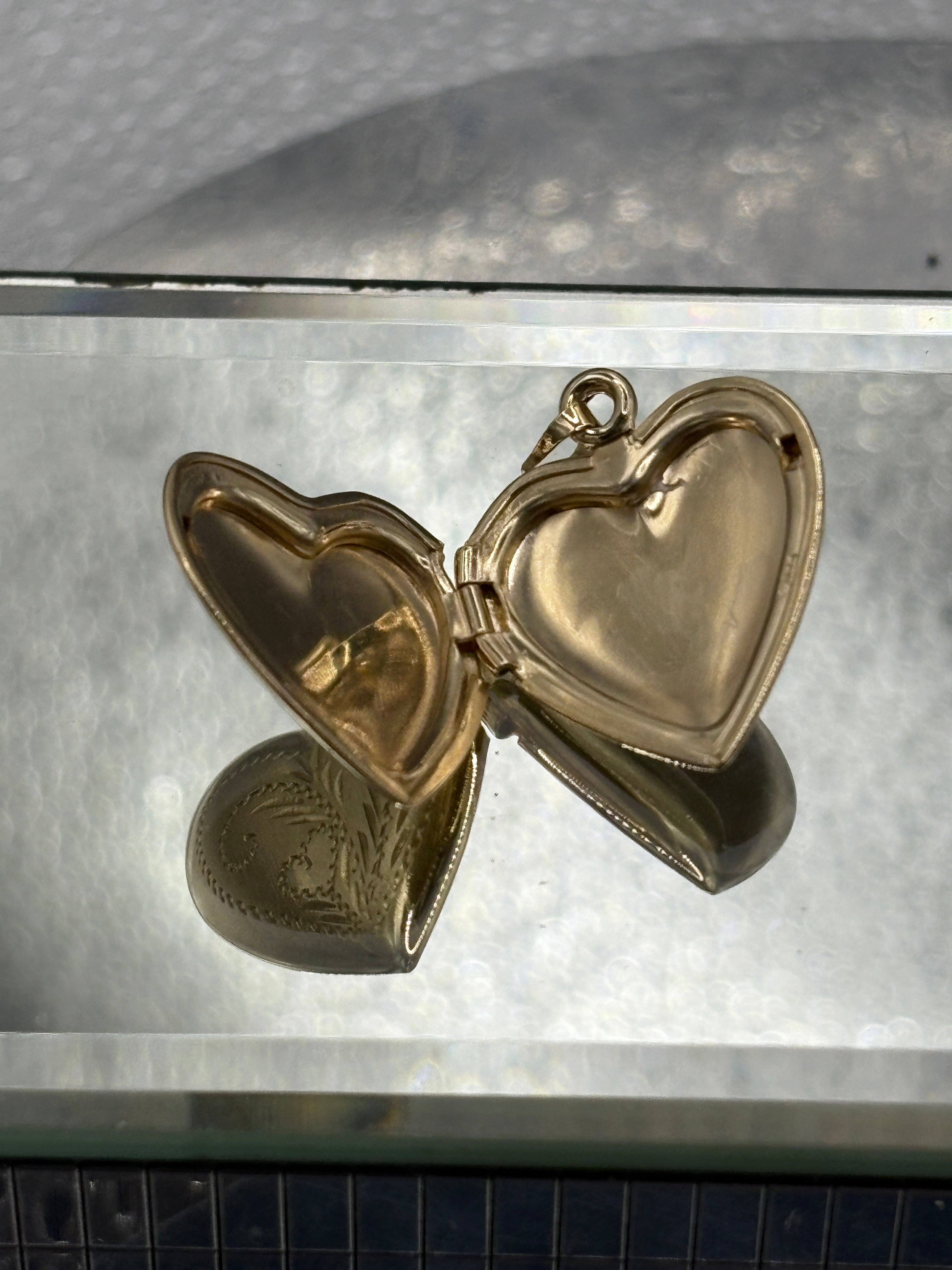 14 Karat Yellow Gold Ladies Engraved Heart Locket Pendant