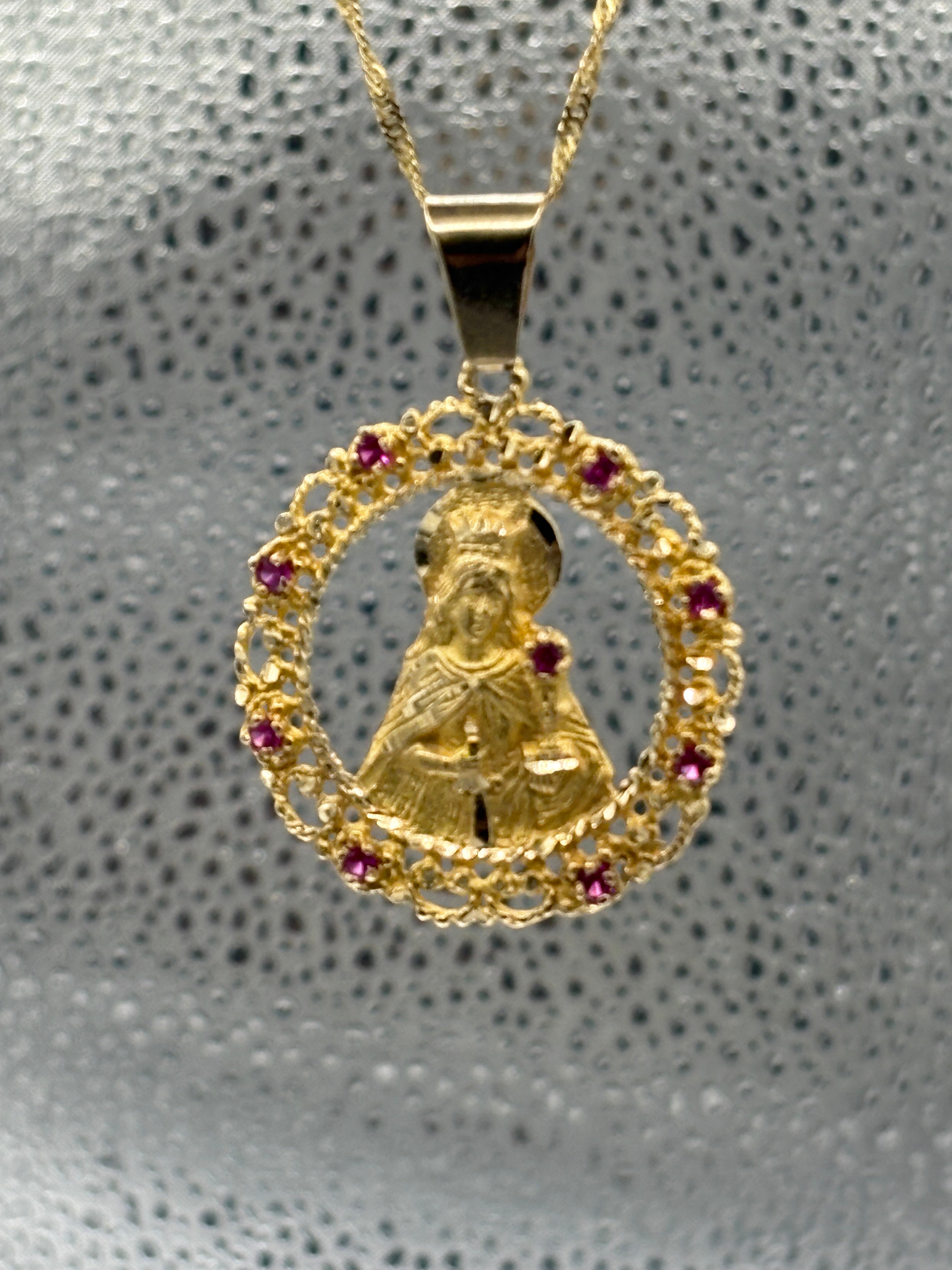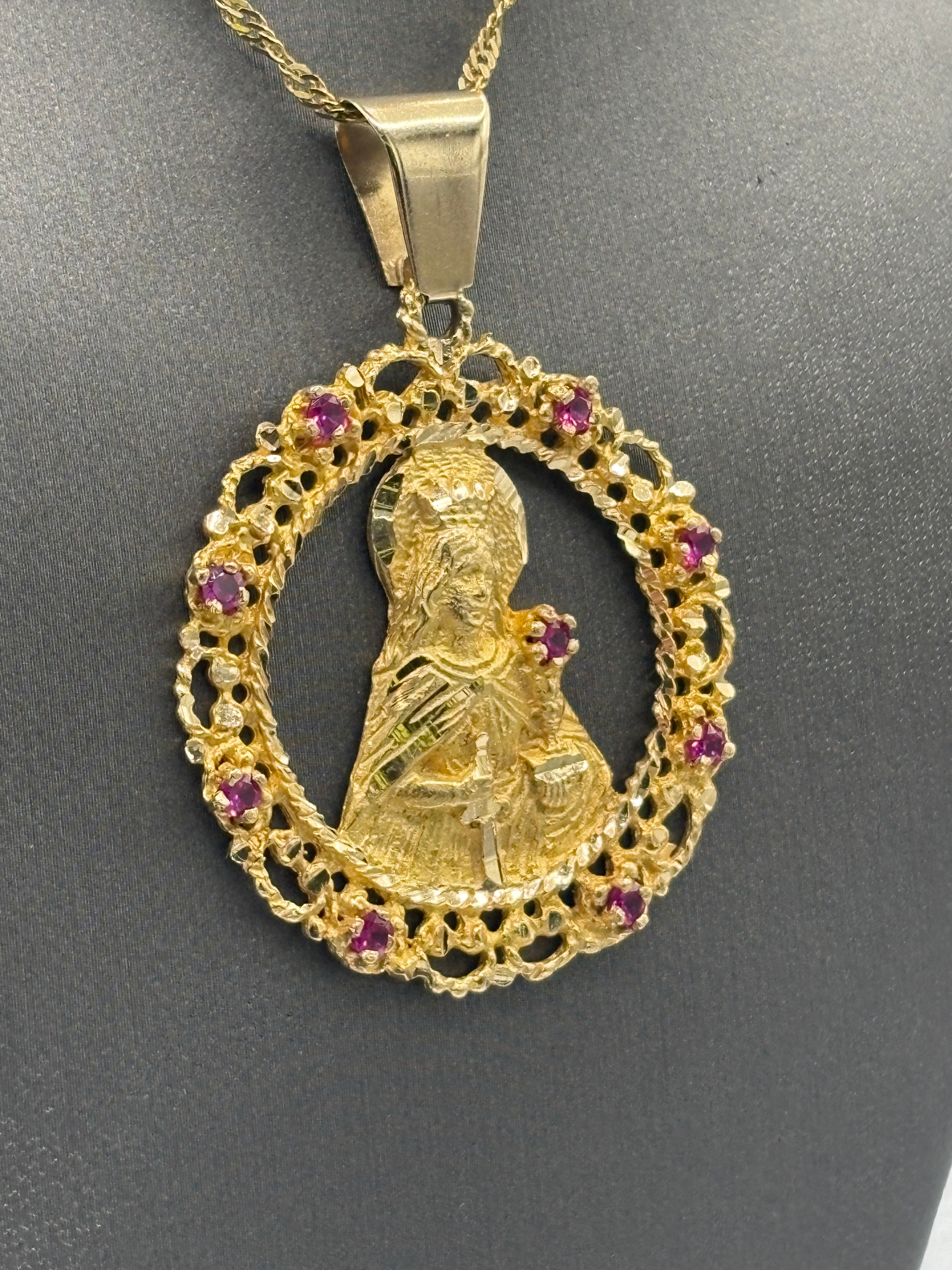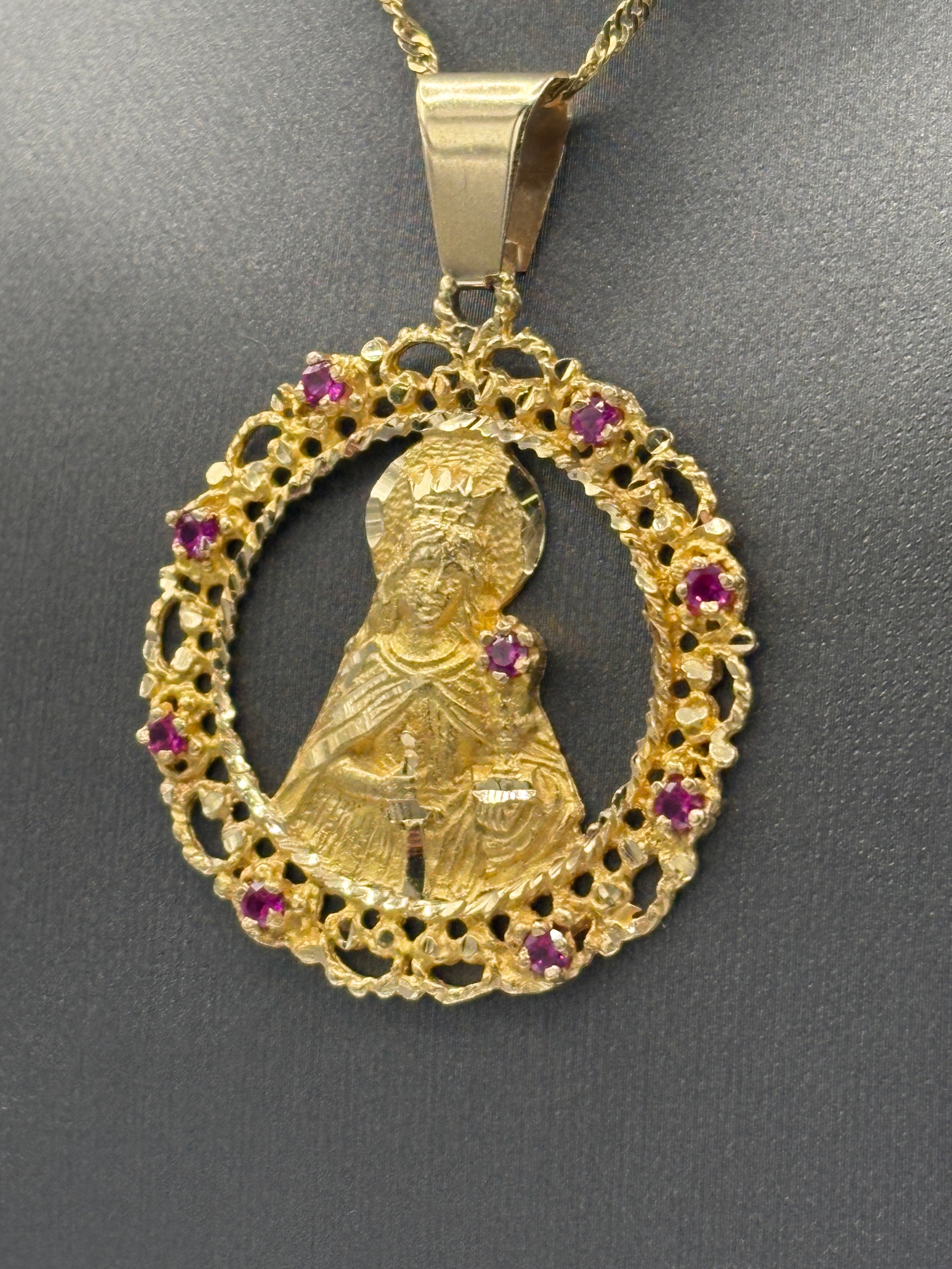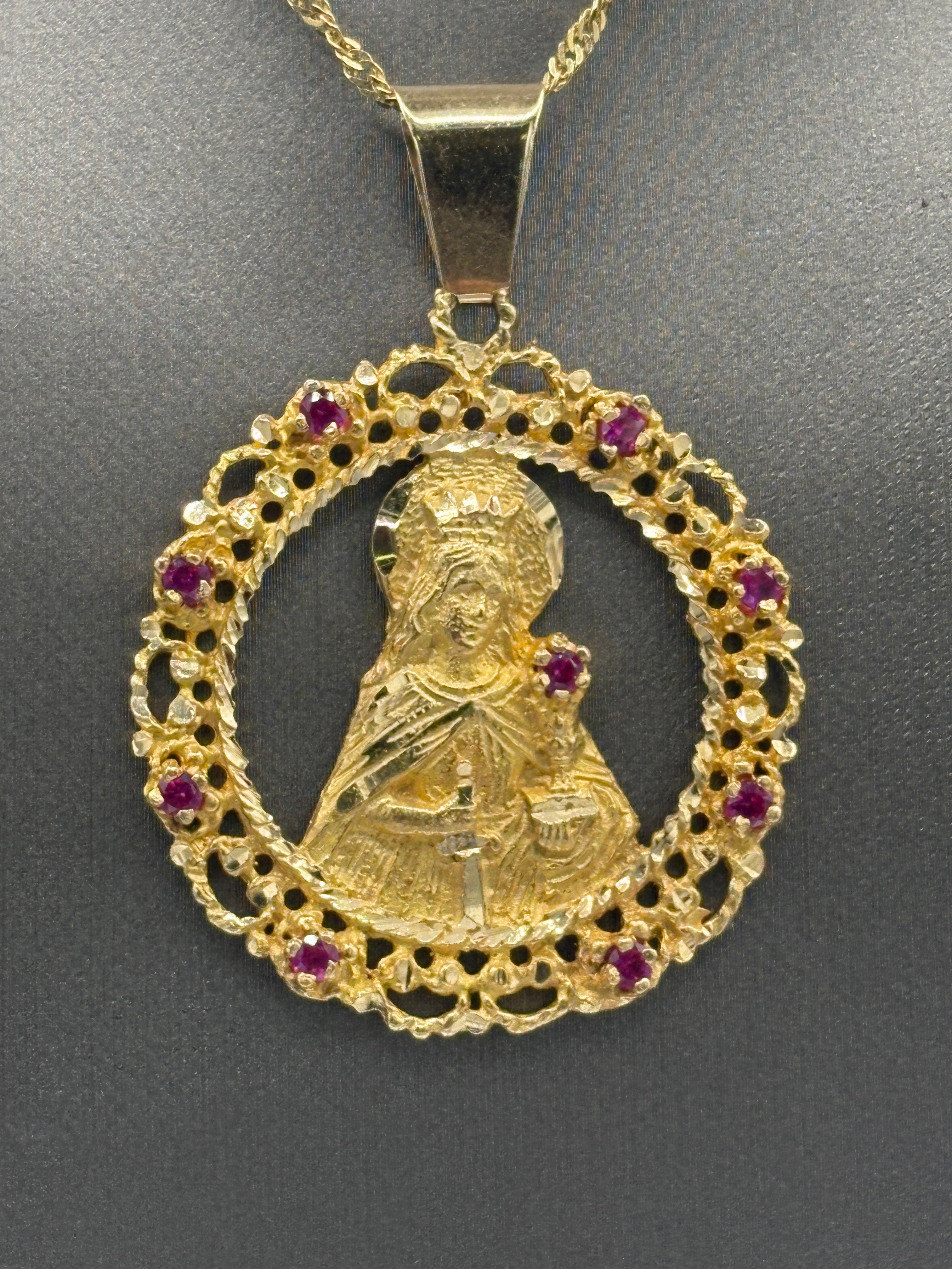 14 Karat Yellow Gold Ladies/Gents Blessed Mother Ruby Pendant