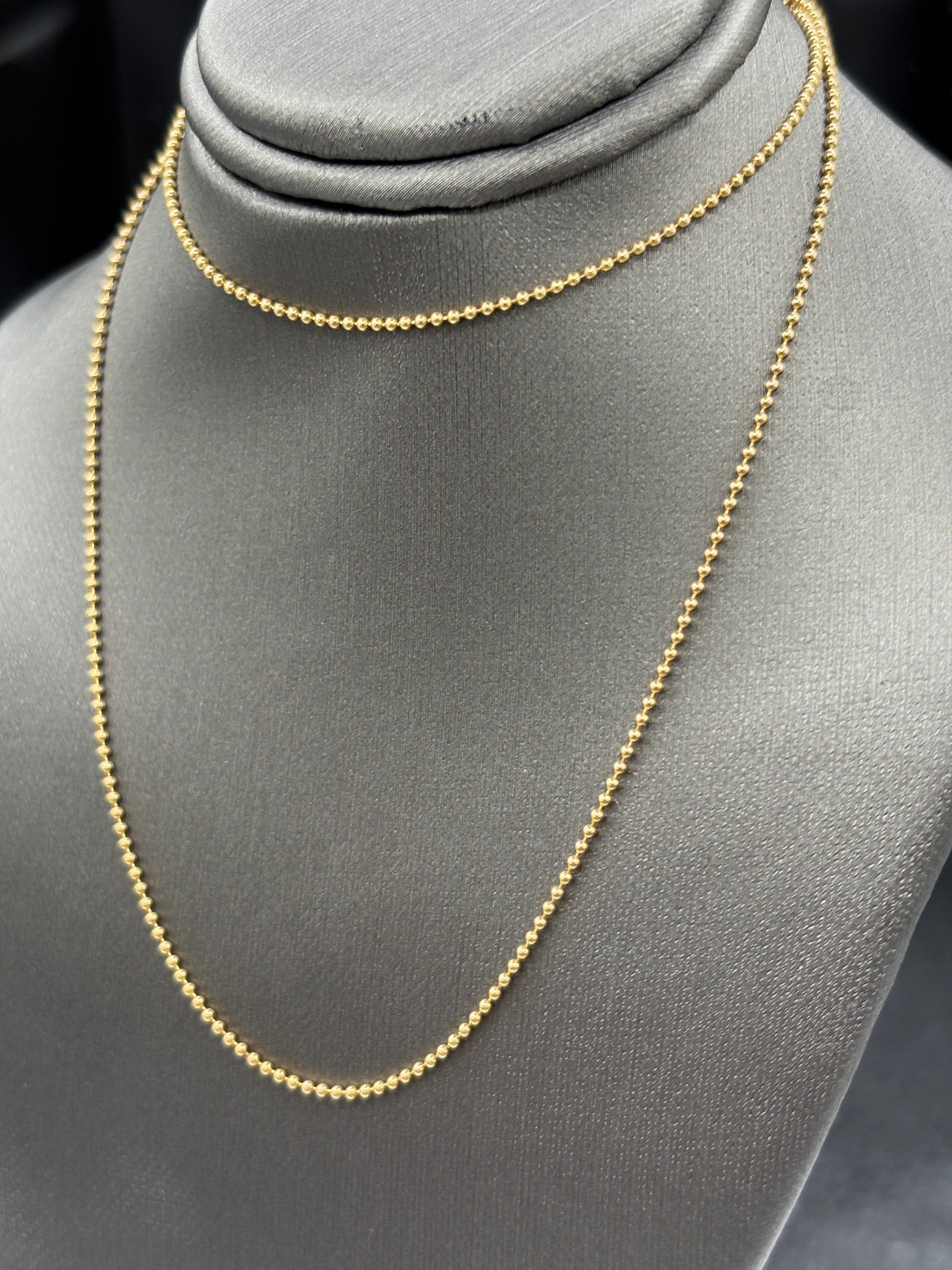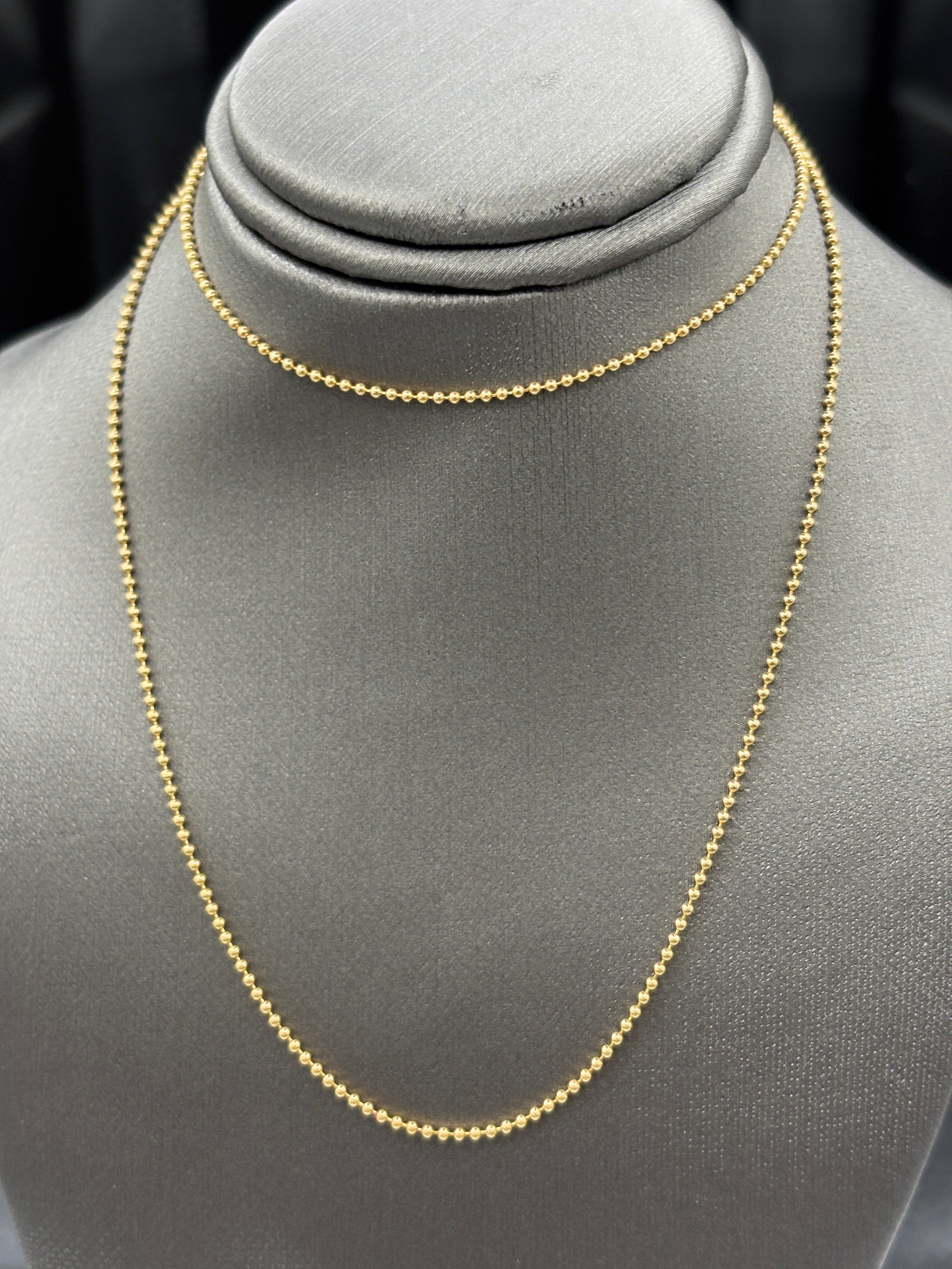 14 Karat Yellow Gold Ladies Solid Ball Chain