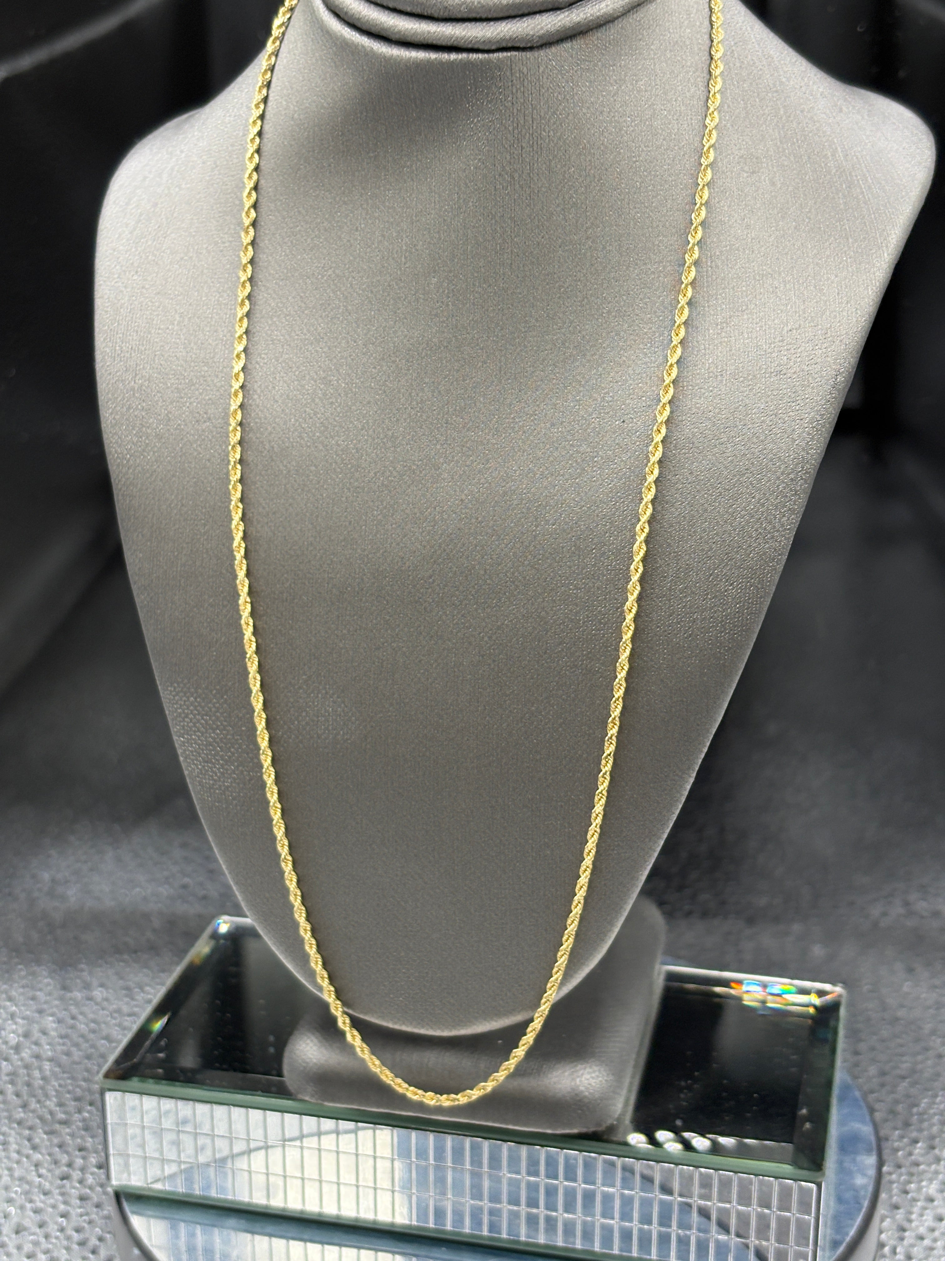 14 Karat Yellow Gold Ladies Solid Diamond-Cut Rope Chain